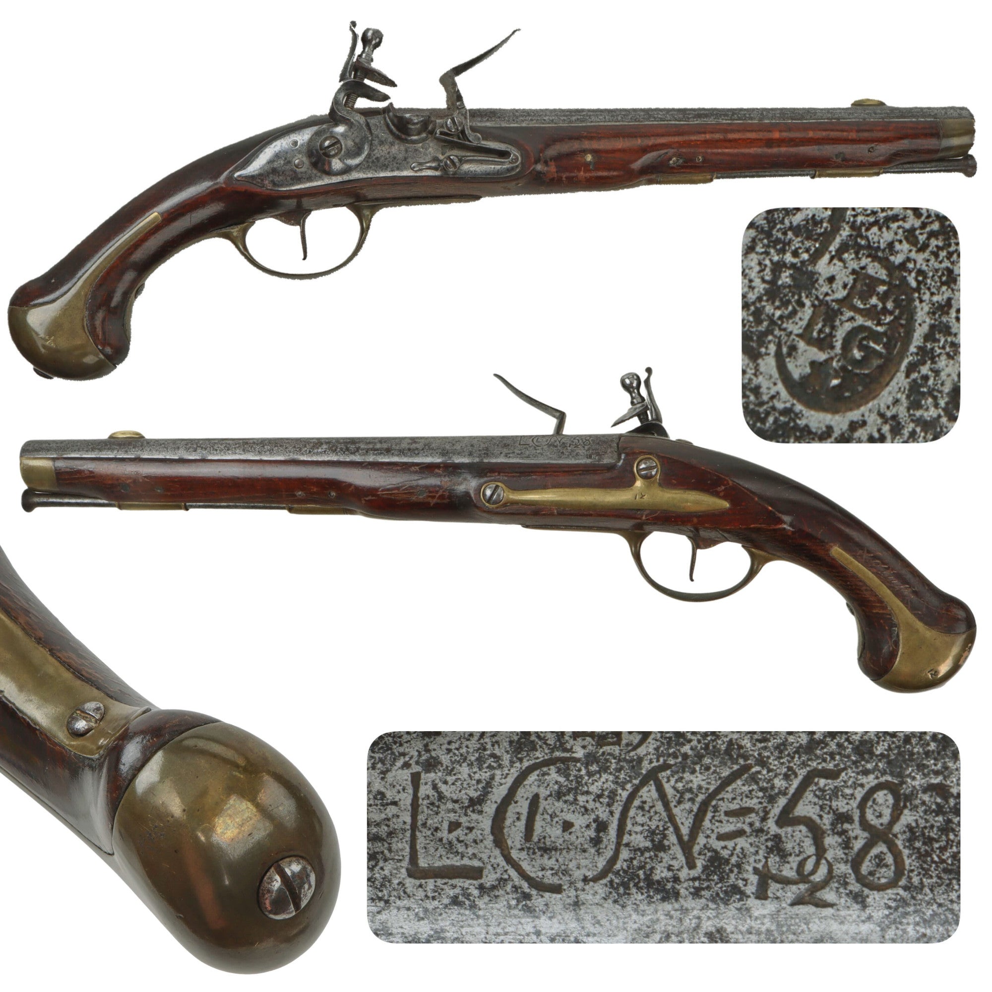 One-of-a-kind: Only One Available. Regimentally marked and still in its original flintlock configuration making this rare military pistol from Danish military service! This is a fine, very scarce example of the large Danish Model 1772 service pistol used by both the Dragoon cavalry and the Danish Navy from its adoption in 1772 through the early 1800s. Surviving examples in original flintlock form are seldom offered. This piece is particularly desirable because it retains original features, military markings, and later proofing that help tell its story.