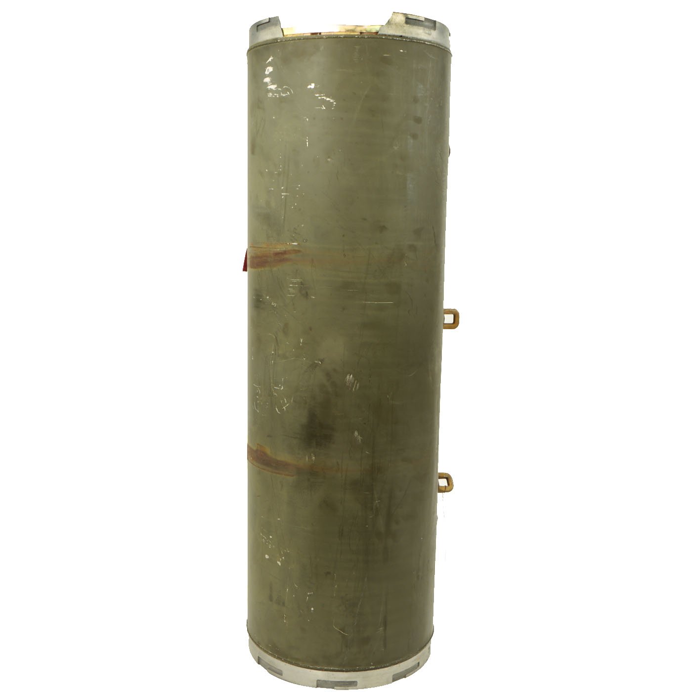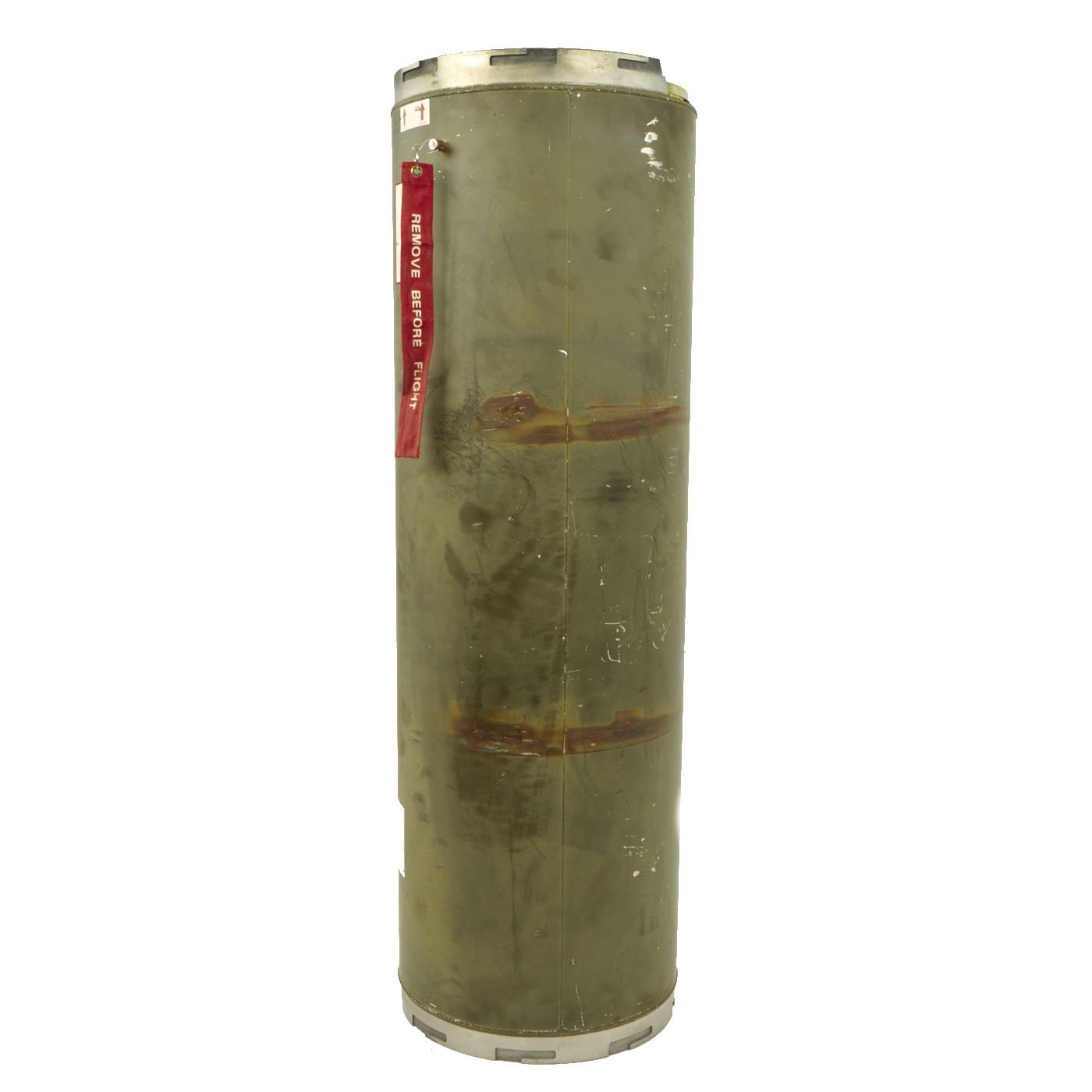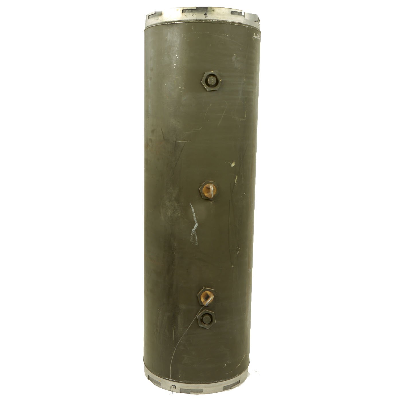 This is a very rare example of a disposable rocket launching tube offered in very good condition. Please note that one aluminum end ring is cracked.