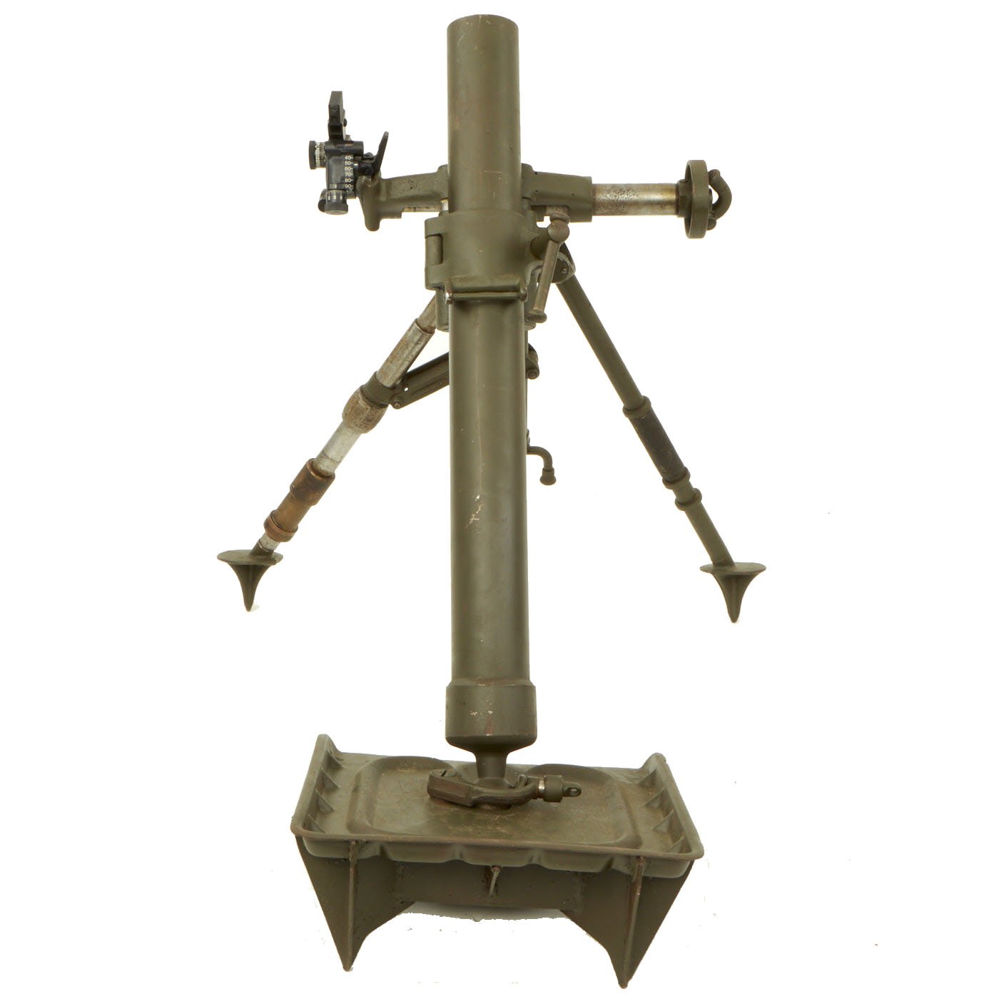 Original Item: Only One Set Available. Deactivated to BATF specifications is totally inert and incapable of firing a round. This is a genuine United States manufactured WWII M2 mortar tube with bipod and base plate offered in excellent condition.