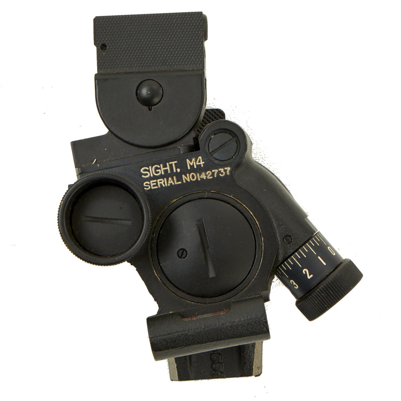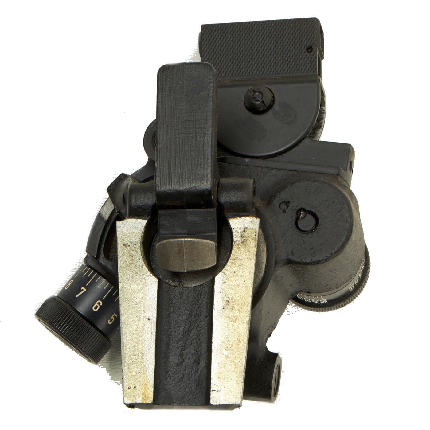 Included with the set is an original WWII issue M4 Collimator Sight as depicted in FM 23-90. This sight was also used on the US 81mm mortar. By laying the sight on aiming stakes, the mortar squad could fire indirect missions. The open sight allowed the squad to fire direct lay missions. The sight is in very good condition with an intact bubble level, and also comes with the original leather carry case.