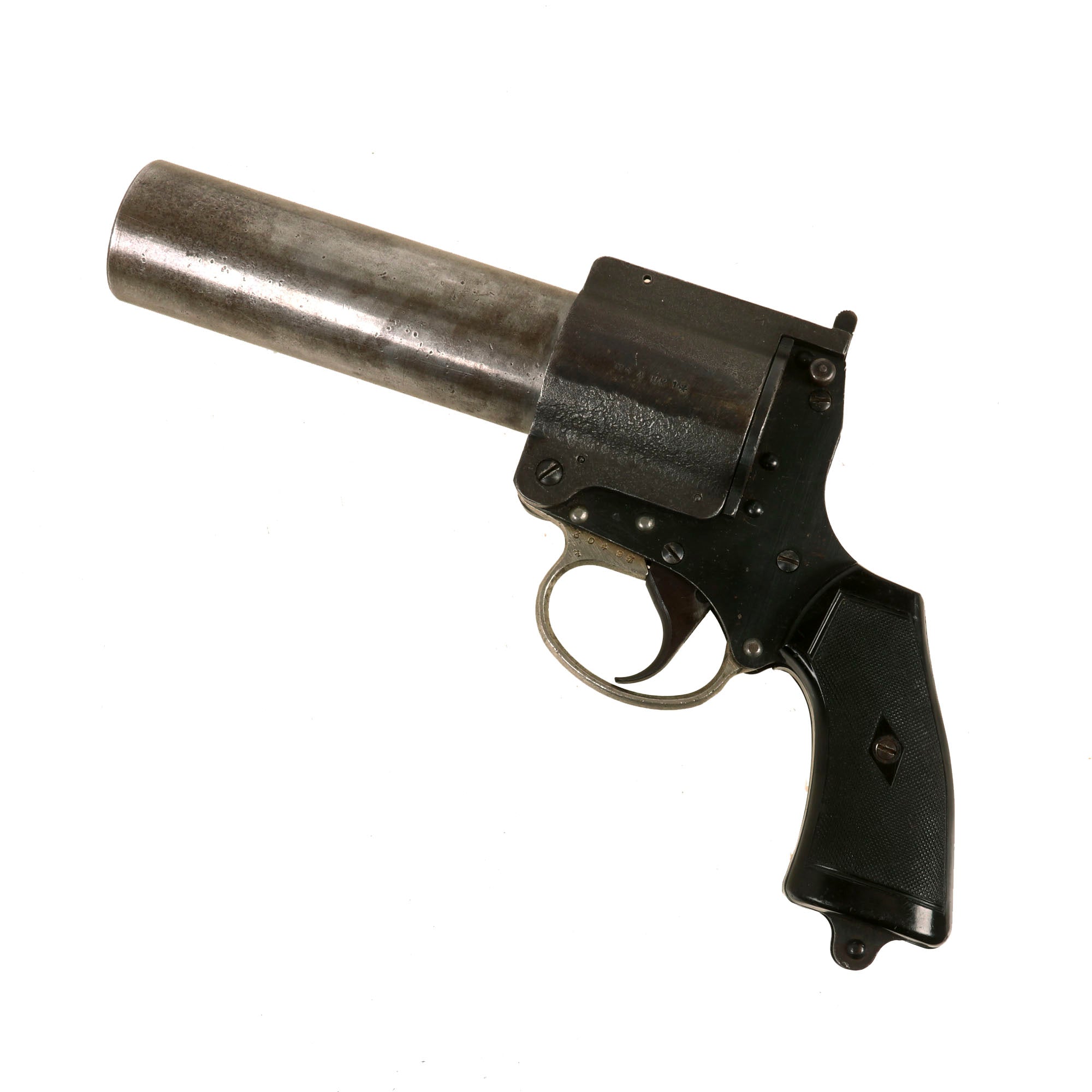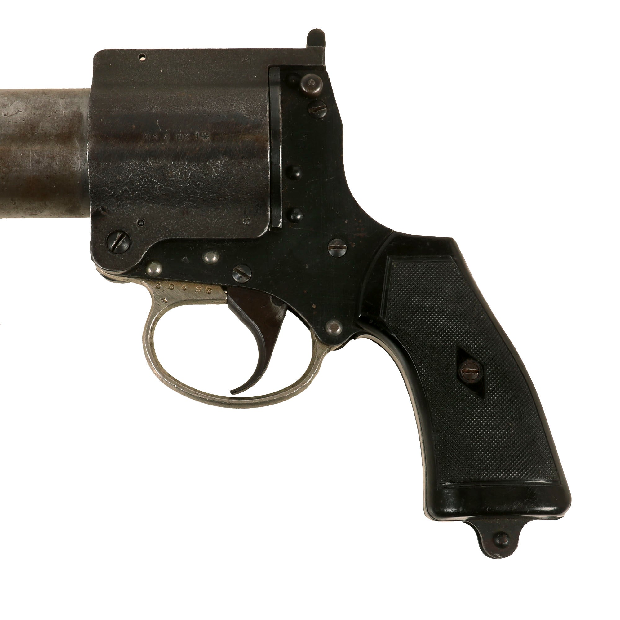 Original Item: Only One Available. This is a nice example of a WWII Webley & Scott No.4 MkI* pattern long-barrel Flare pistol, manufactured by the Webley & Scott firm itself. These were the long variant of the RAF aircraft versions used during WWII.