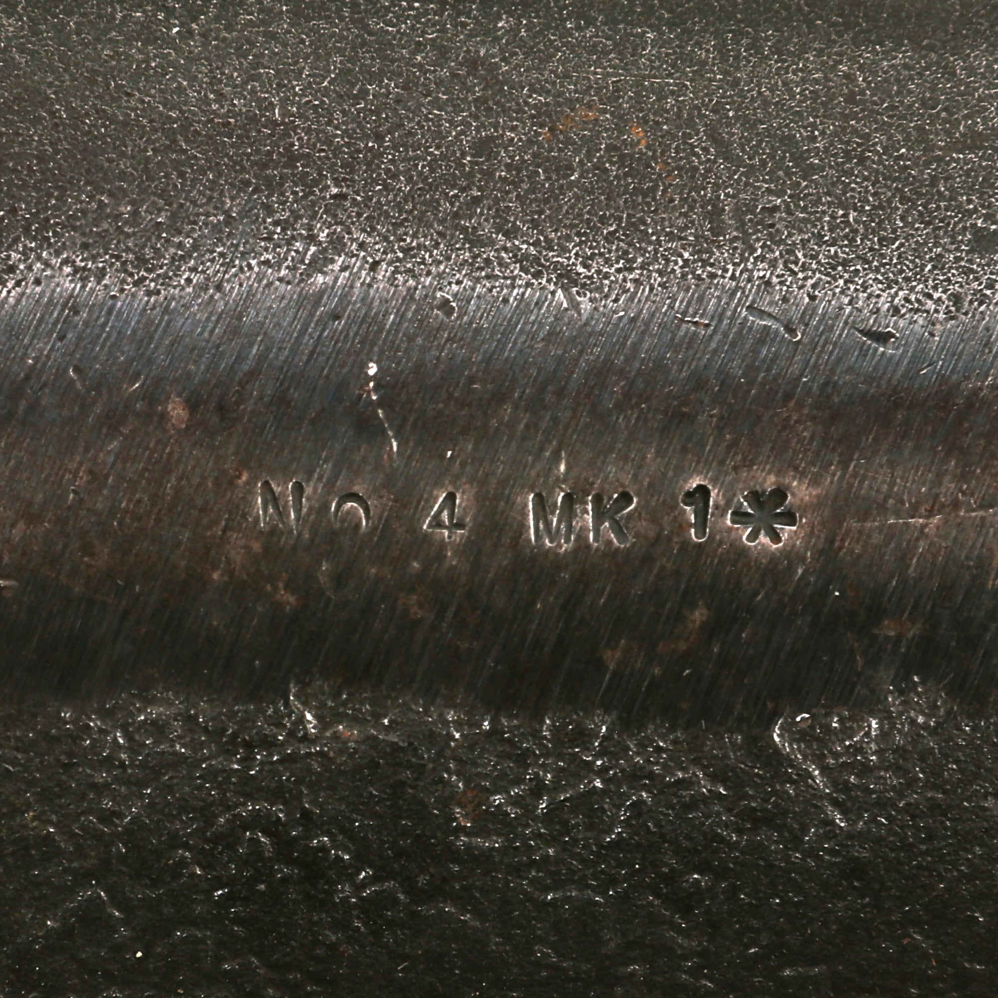 The pistol itself is of heavy steel construction, and a mixture of machined and cast parts. The barrel itself is cast and then machined on the front and inside, but not the sides, which gives it a rougher look. The left side of the pistol is marked No.4 MK1* over serial number 30498 on the brass trigger guard.. The barrel and frame have numerous British proof marks, as well as the 1 1/2" size emblem.