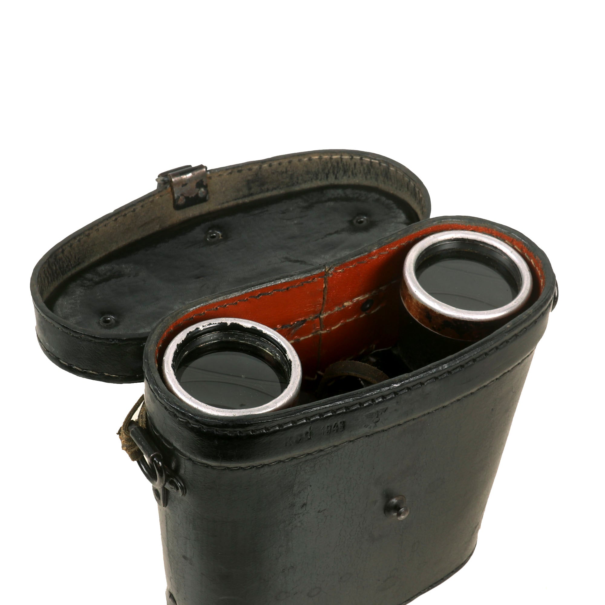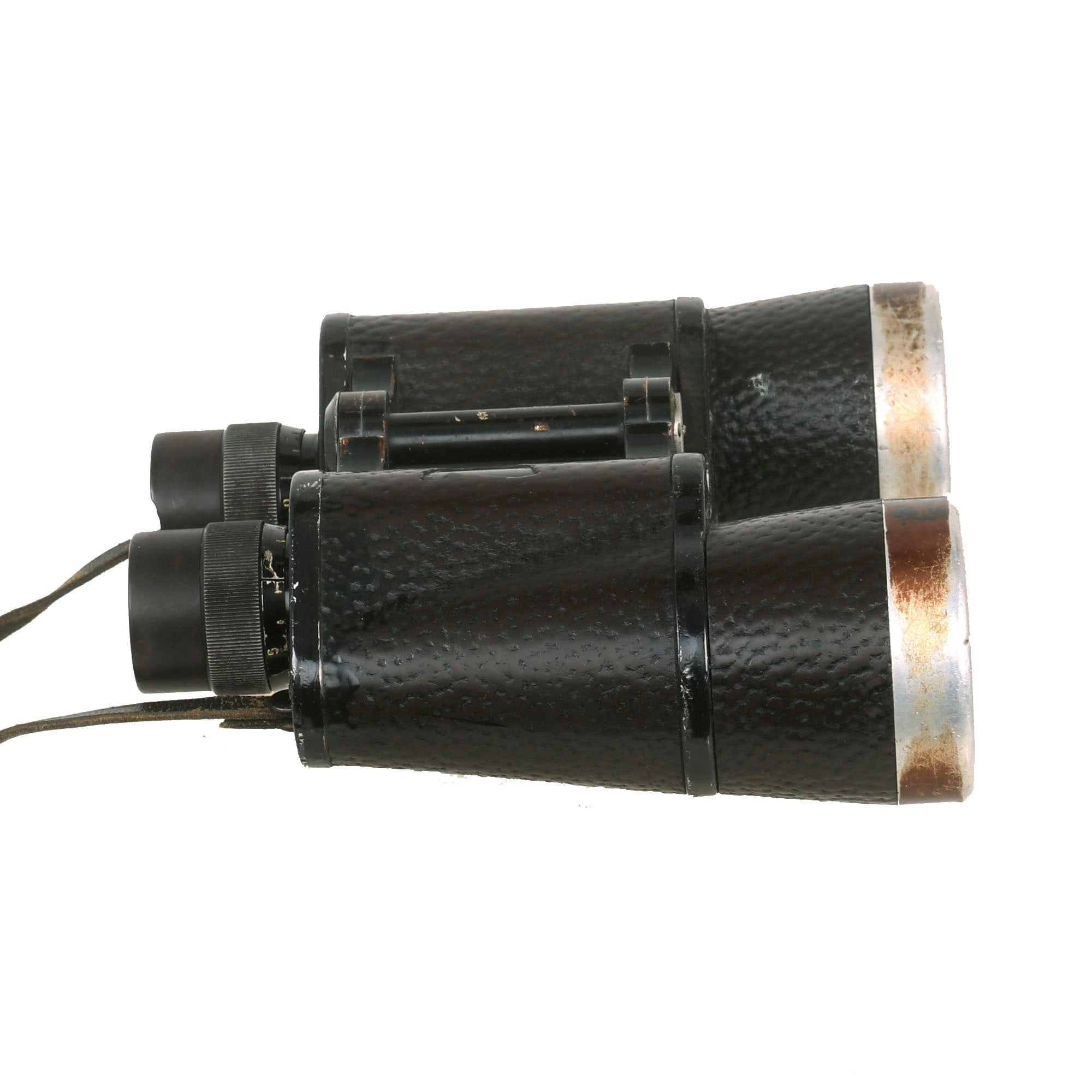 • Original Item: Only One Available. This is a very nice set of German WWII binoculars known by the German Kriegsmarine as Doppelfernrohr 7×50 (Double Telescope 7×50), complete with an original case. They are very similar to the Dienstglas 7x50 (service glass 7x50) usually seen, and as far as we can tell they are more or less identical. We have seen Kriegsmarine marked examples using both designations, and we have not been able to find out what the real difference is.