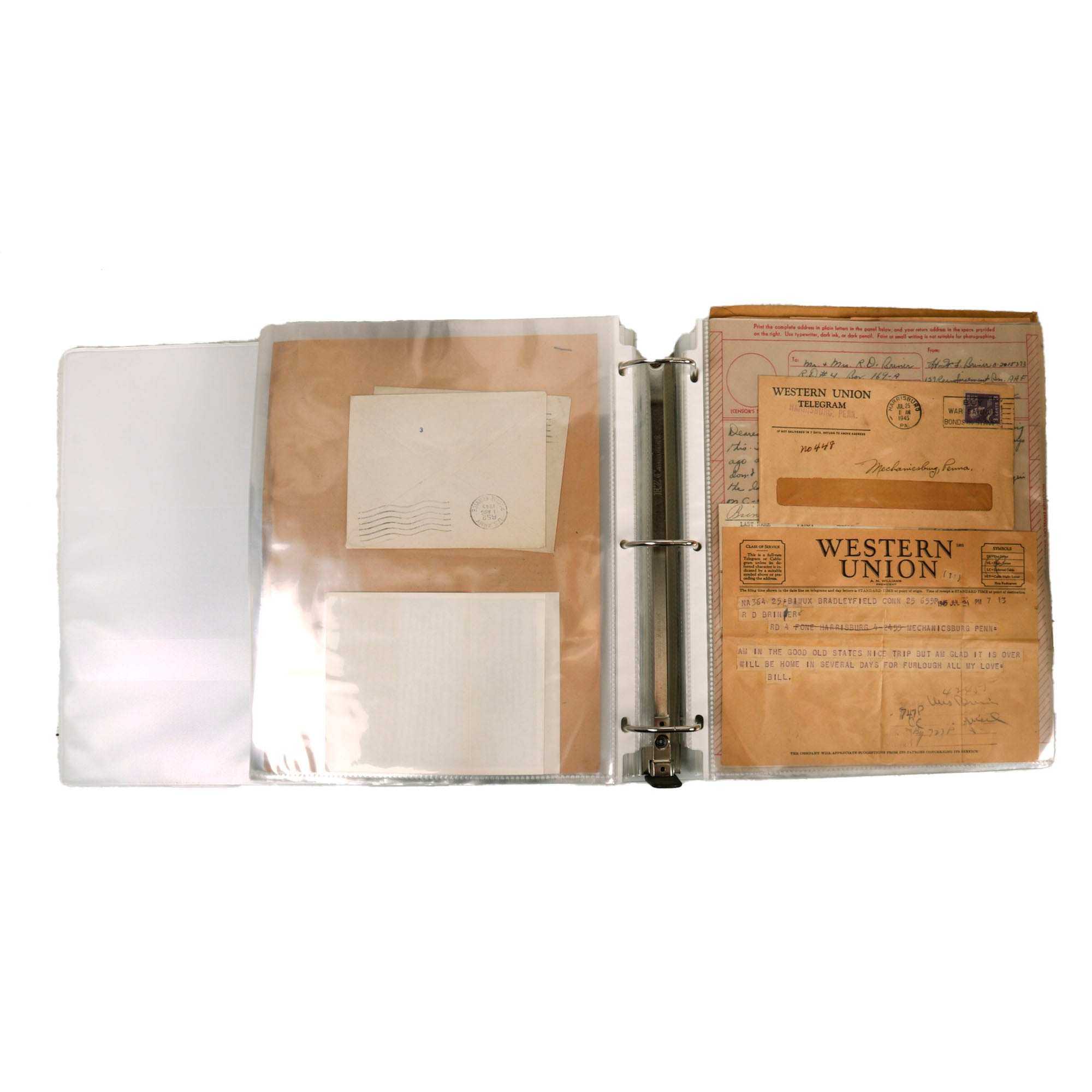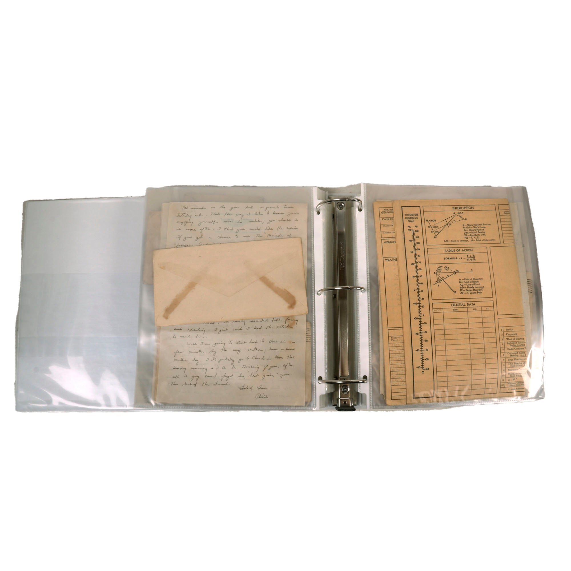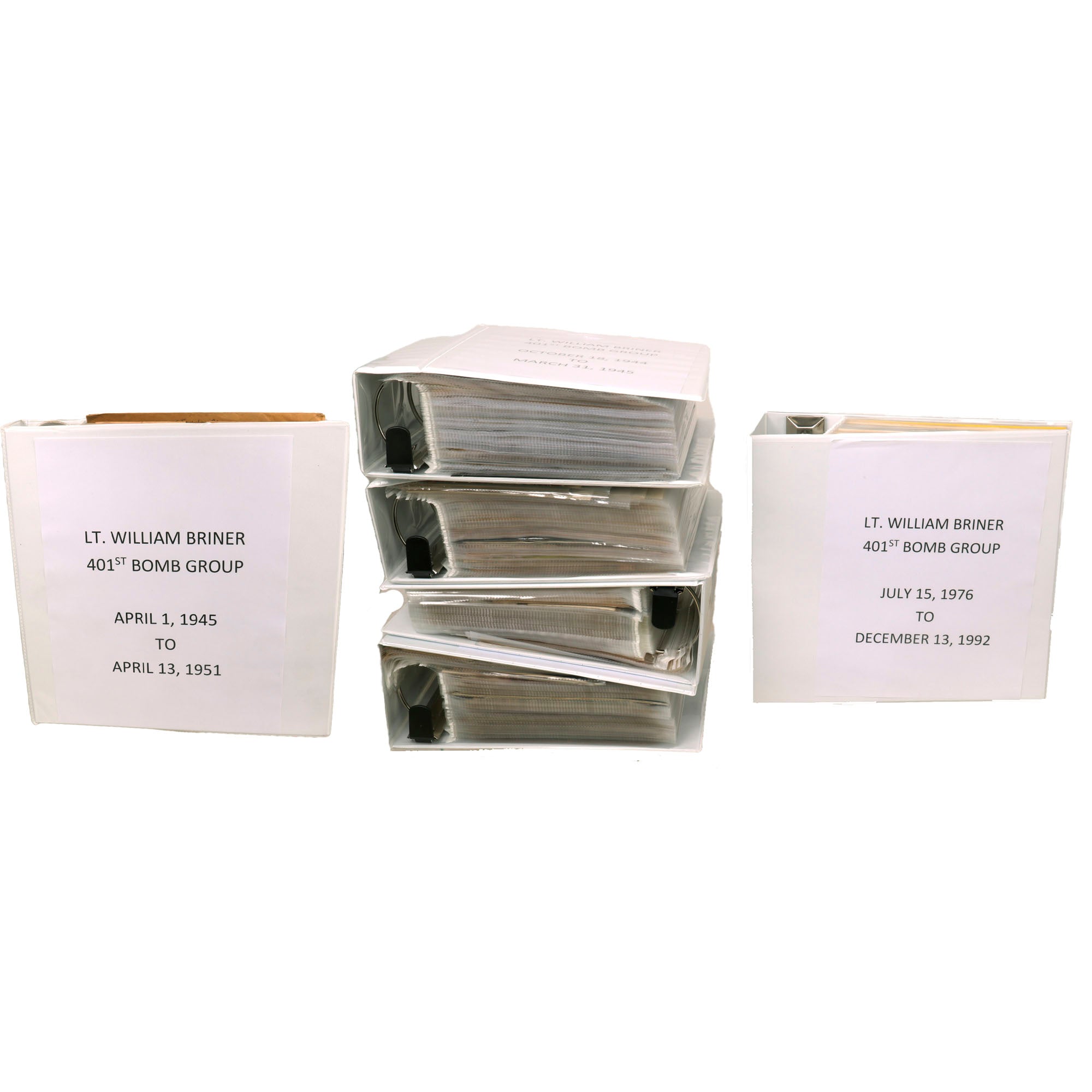 - Six Enormous Binders each with dates of Briner’s service which contain thousands of letters, original photographs, souvenir ephemera, and much much more. The binder of his overseas service is broken down into day-by-day mission updates with the letters he wrote and newspaper clippings found on that day organized accordingly. This would have taken someone hundreds of hours to put together and organize. The binders are dated March - July 1943, July 28th 1943 - February 3rd, 1944, February 8th - October 16th, 1944, and October 18th, 1944 - March 31st, 1945. The post-war binders are dated April 1st, 1945 - April 13th, 1951 and July 15th, 1976 - December 19th, 1992. These binders contain most of Briner’s entire life. You will never find a more comprehensive archive of the day-to-day life of a WWII Navigator.
