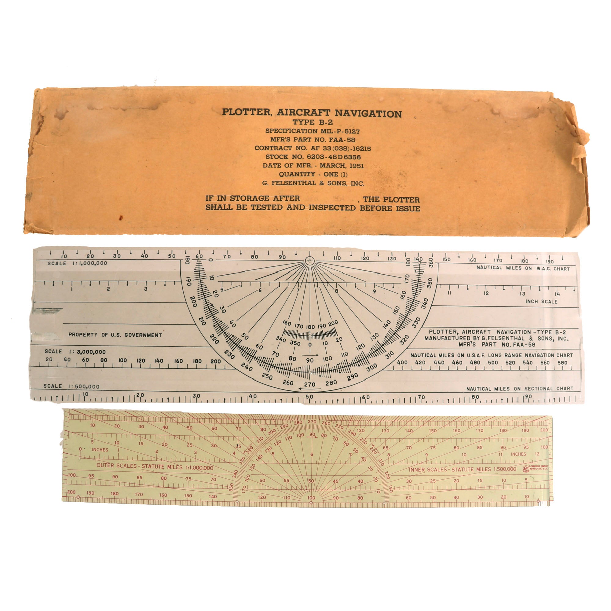 - Briner’s Aircraft Navigation plotter in its original sleeve, something he would have used extensively as a navigator.