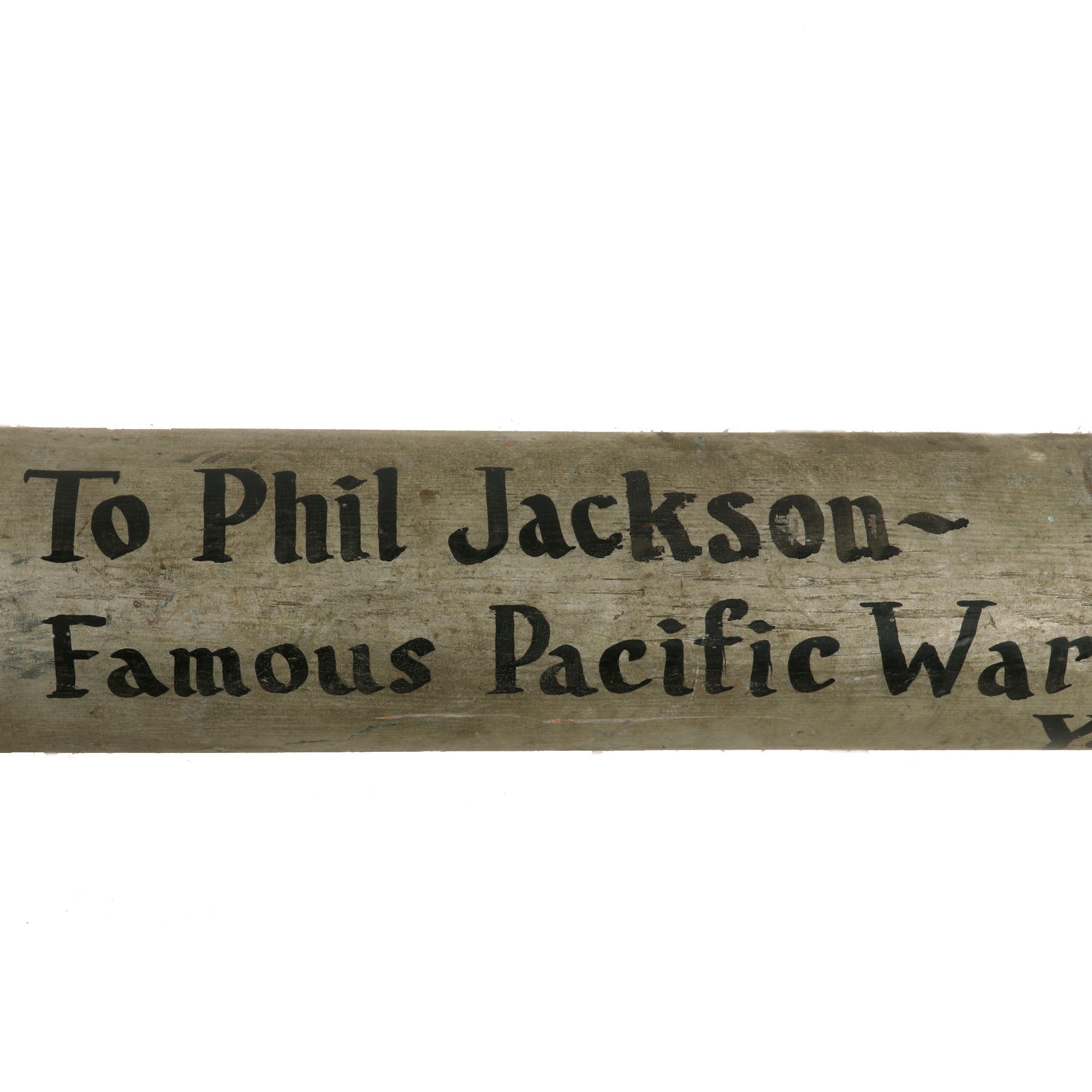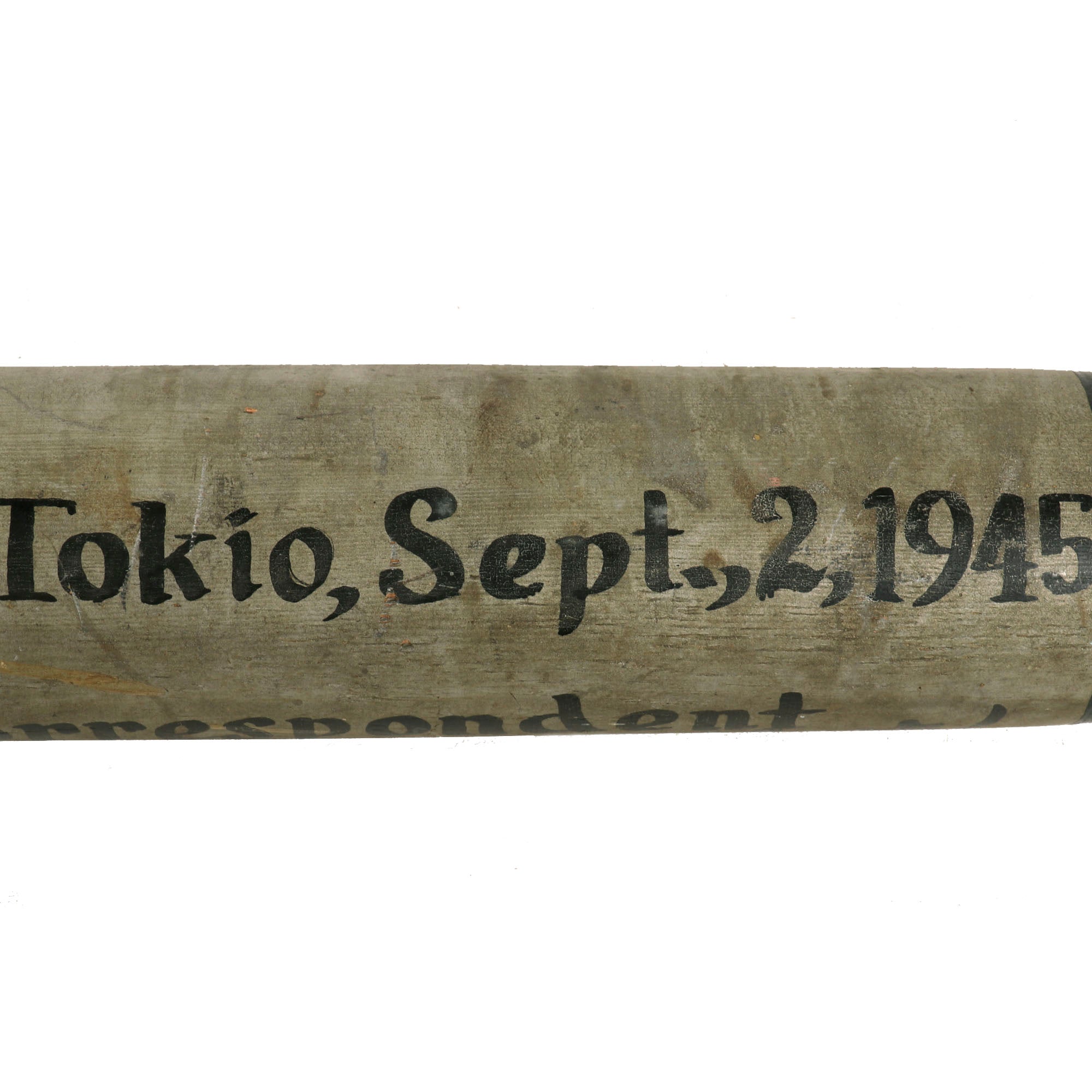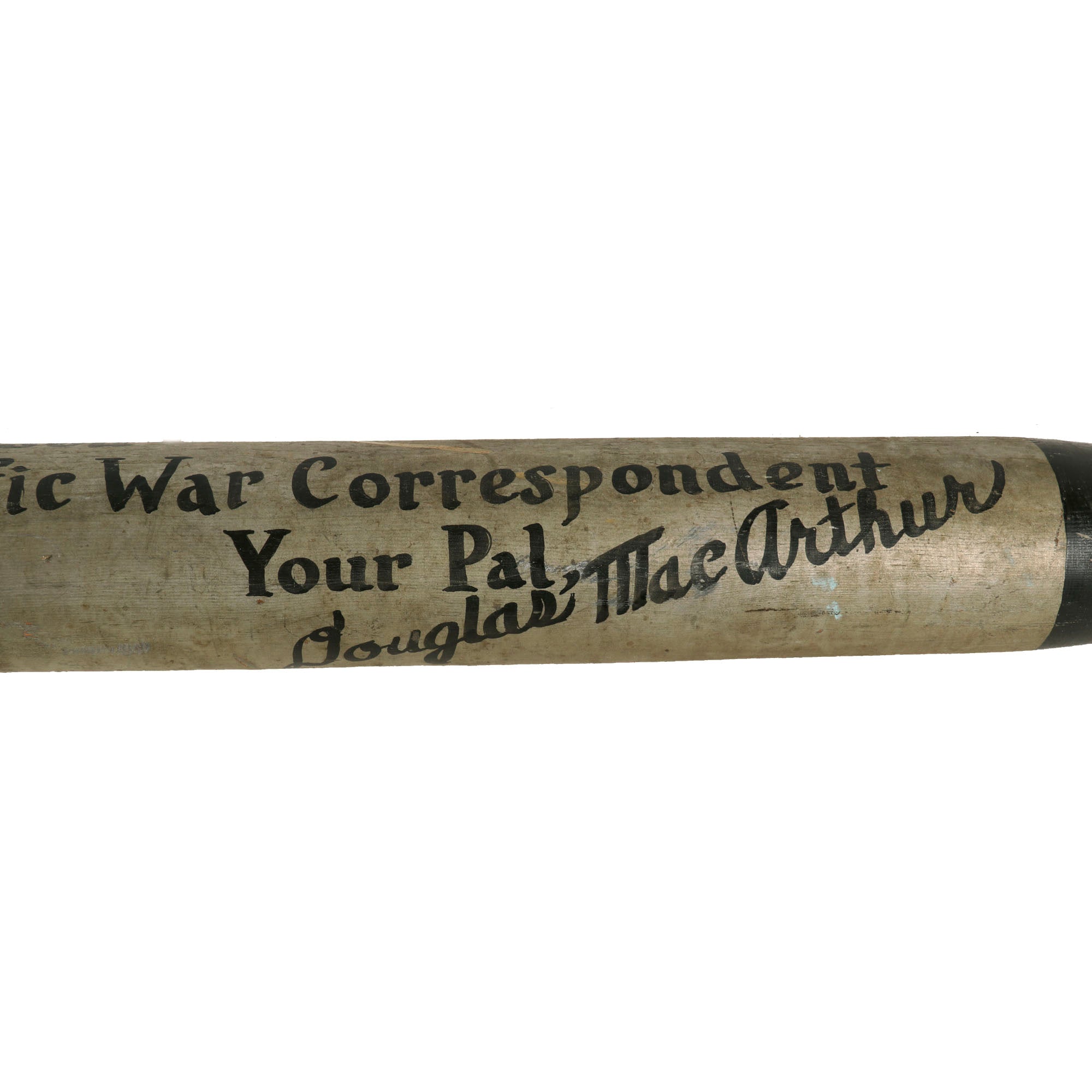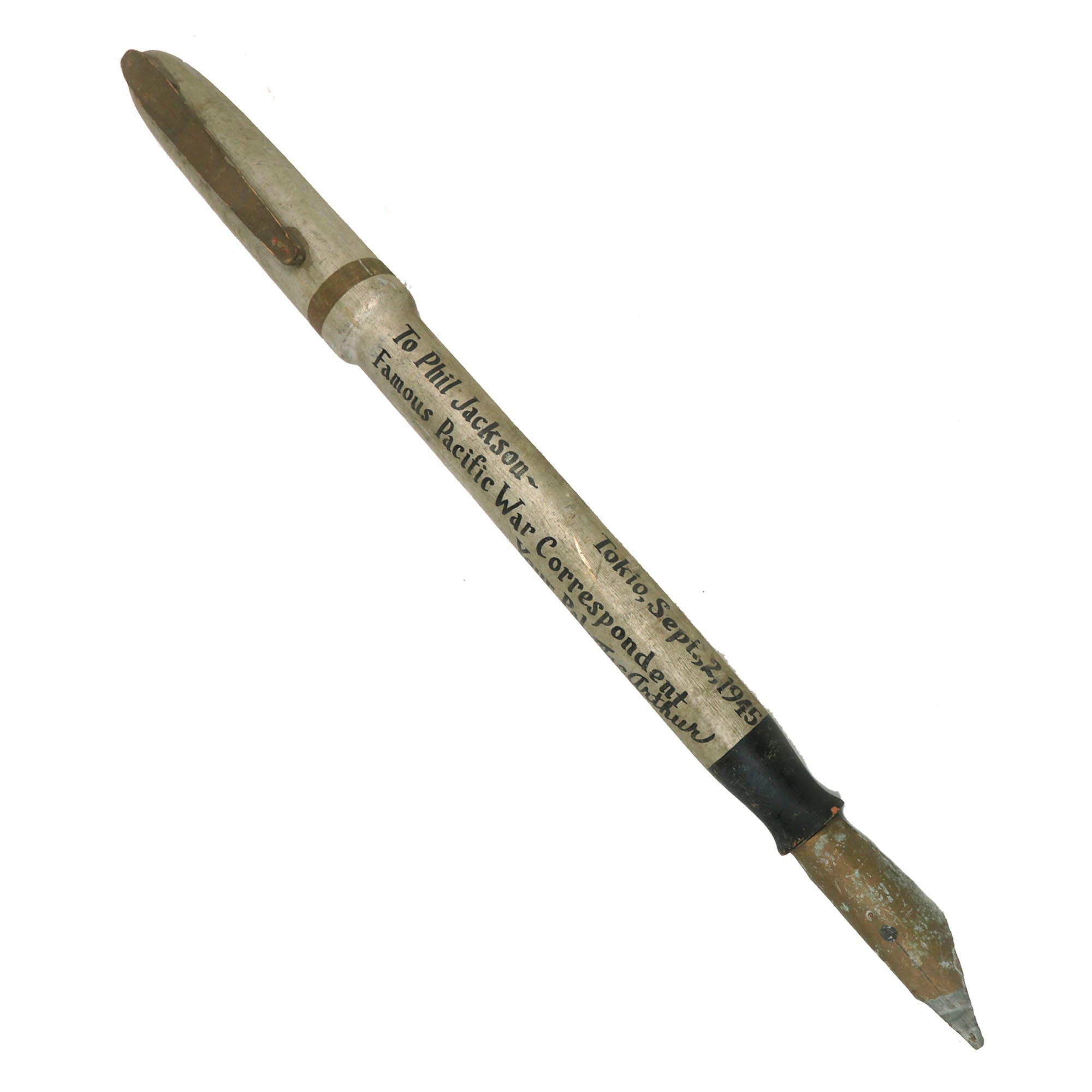 Original Item. One-of-a-Kind. This is one of the most interesting pieces of General militaria we have ever offered, an enormous wooden fountain pen replica, about 65” long, signed and presented by Douglas MacArthur to Famous Pacific War Correspondent Philip Ludwell Jackson of the Oregon State Journal. We have found several newspaper articles confirming that Jackson was not only on the USS Missouri with MacArthur when he signed the surrender documents on September 2nd, 1945, but that he was also a guest of MacArthur’s in Manila, Okinawa, and Guam with the Pacific Fleet. It was likely during this time that MacArthur had the pen made and presented to Jackson.