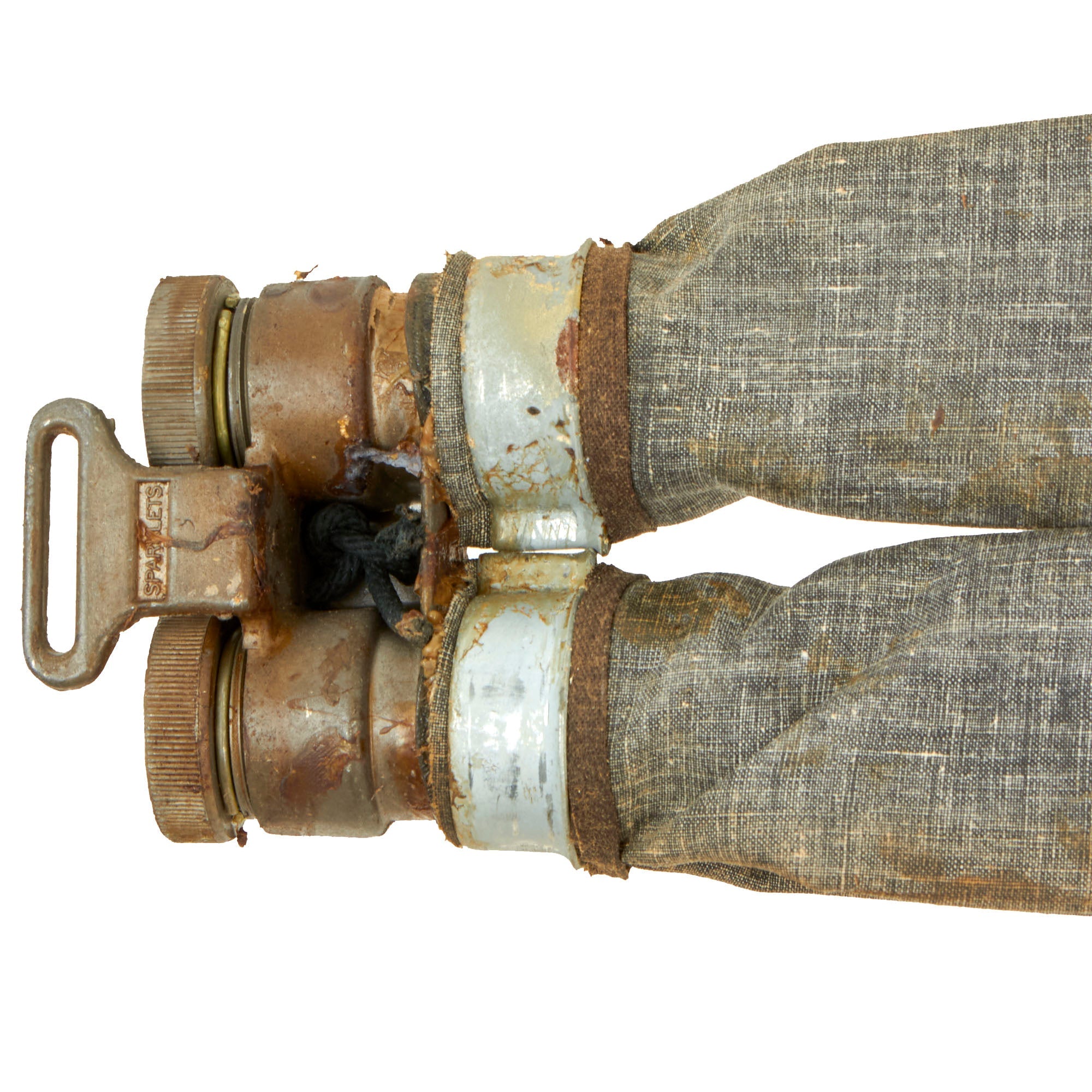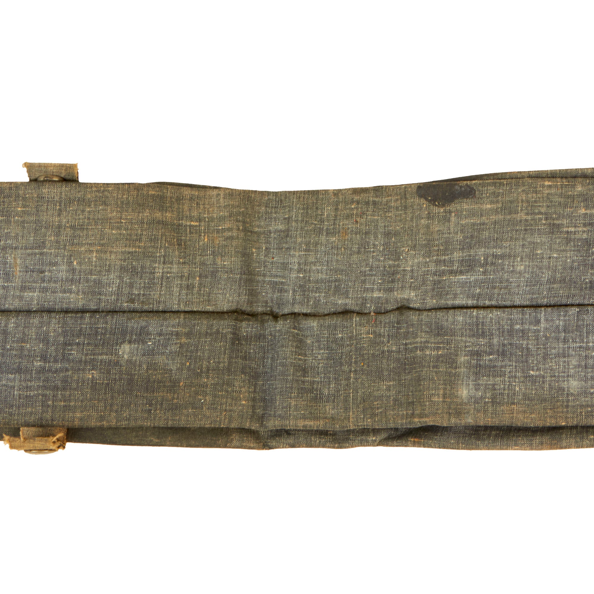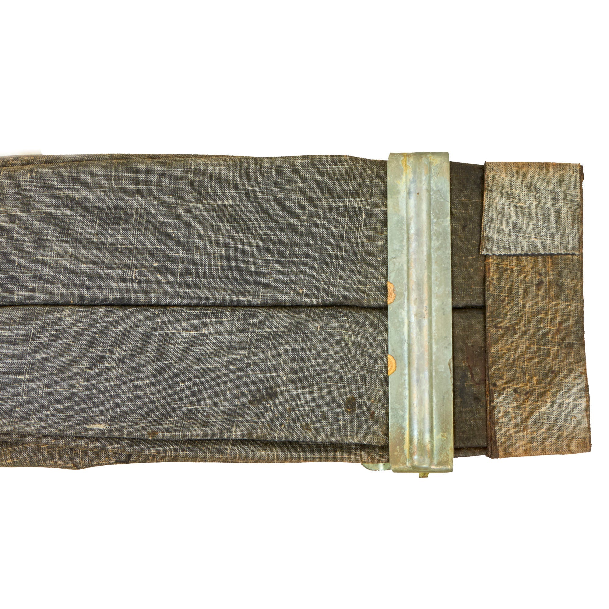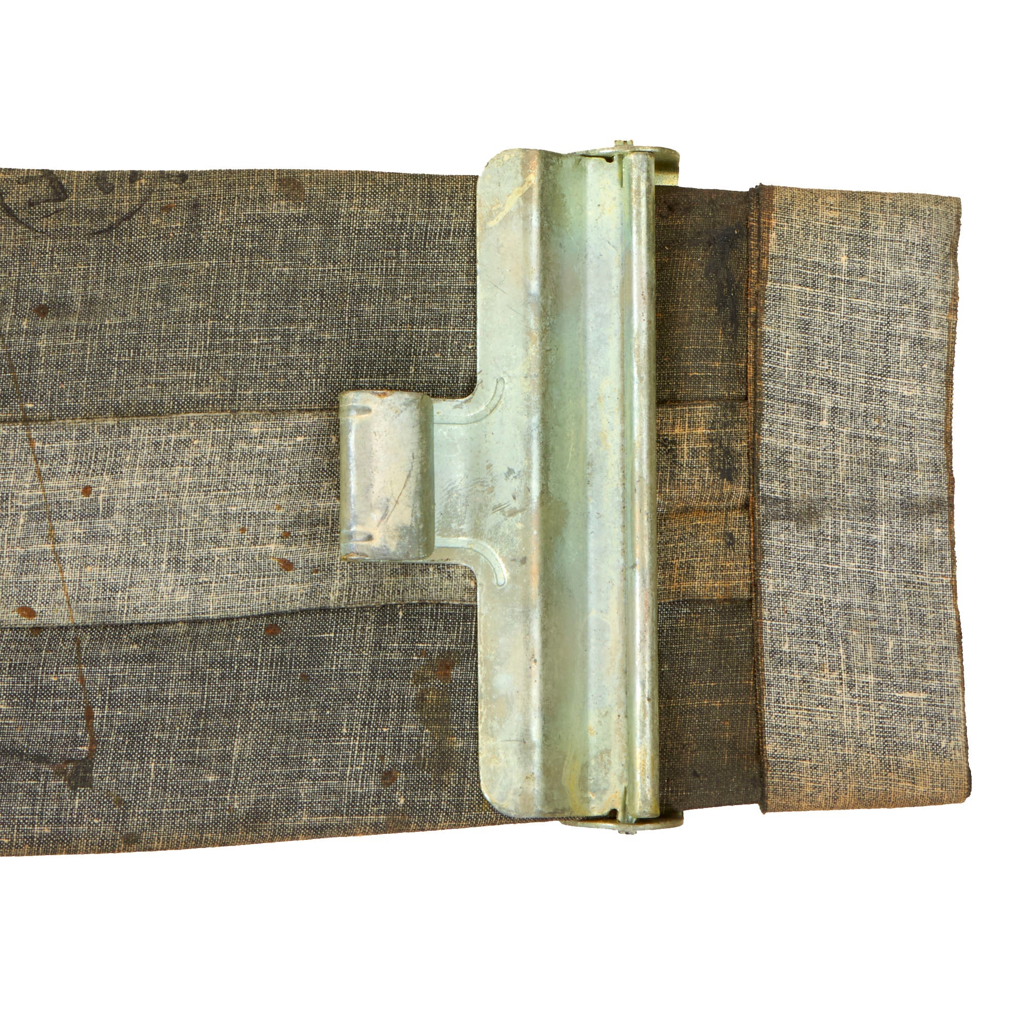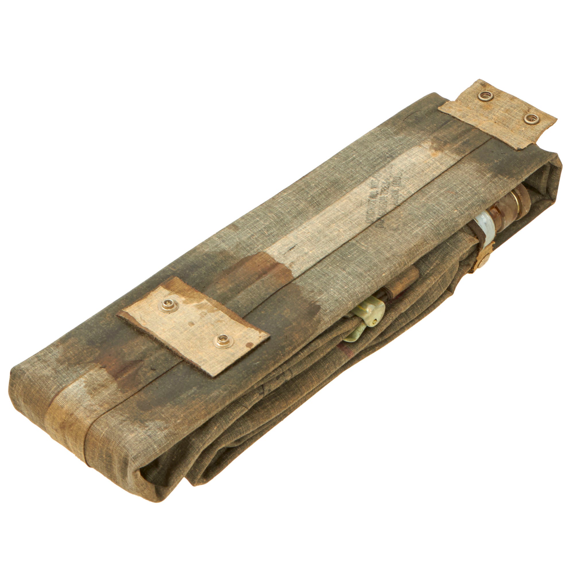Original Item: Only One Available. The M1926 inflatable flotation belt was used as a life preserver by assault troops during amphibious actions and beach landings. The belt was inflated by squeezing two switches located inside the belt, which activated two CO2 bottles. If the CO2 bottles failed, the belt could still be inflated by blowing into the rubber tubes, which have valves on the ends. This example comes in its original box, which measures 18 x 5 x 2½”.