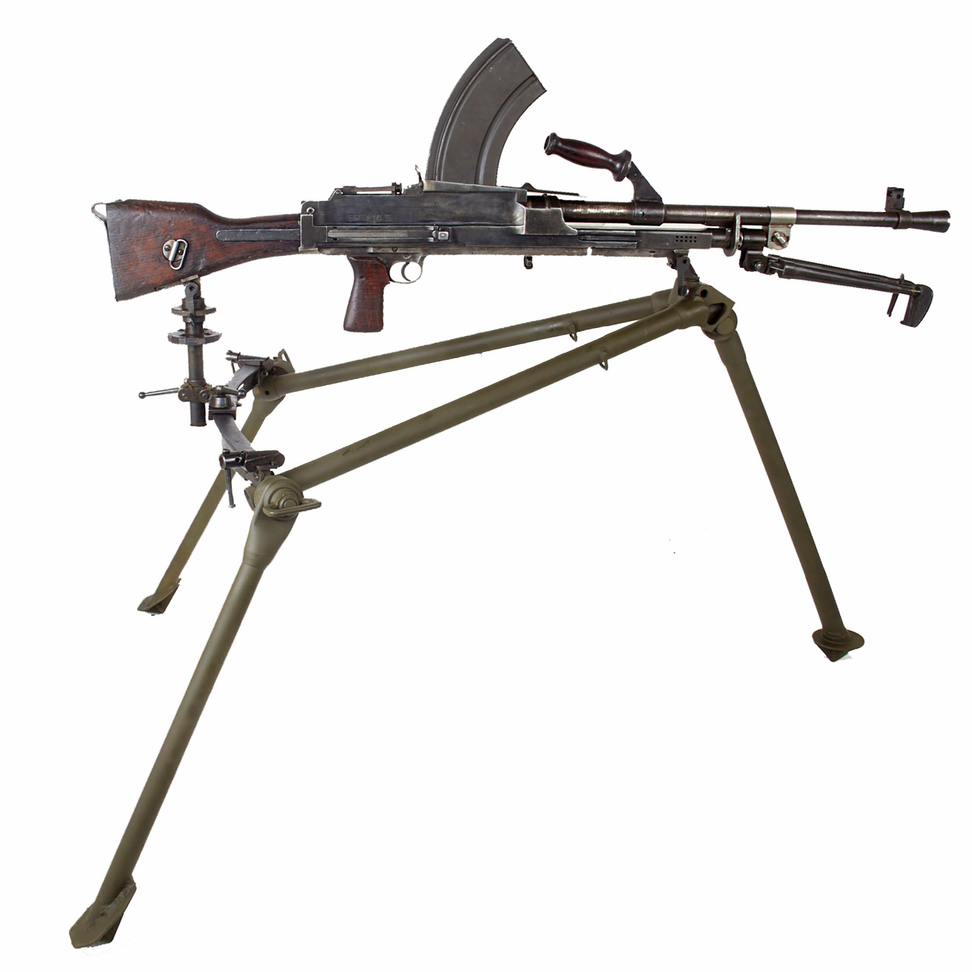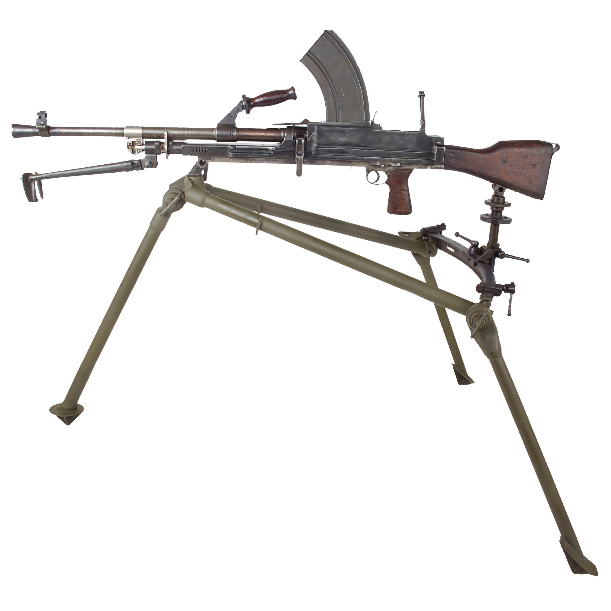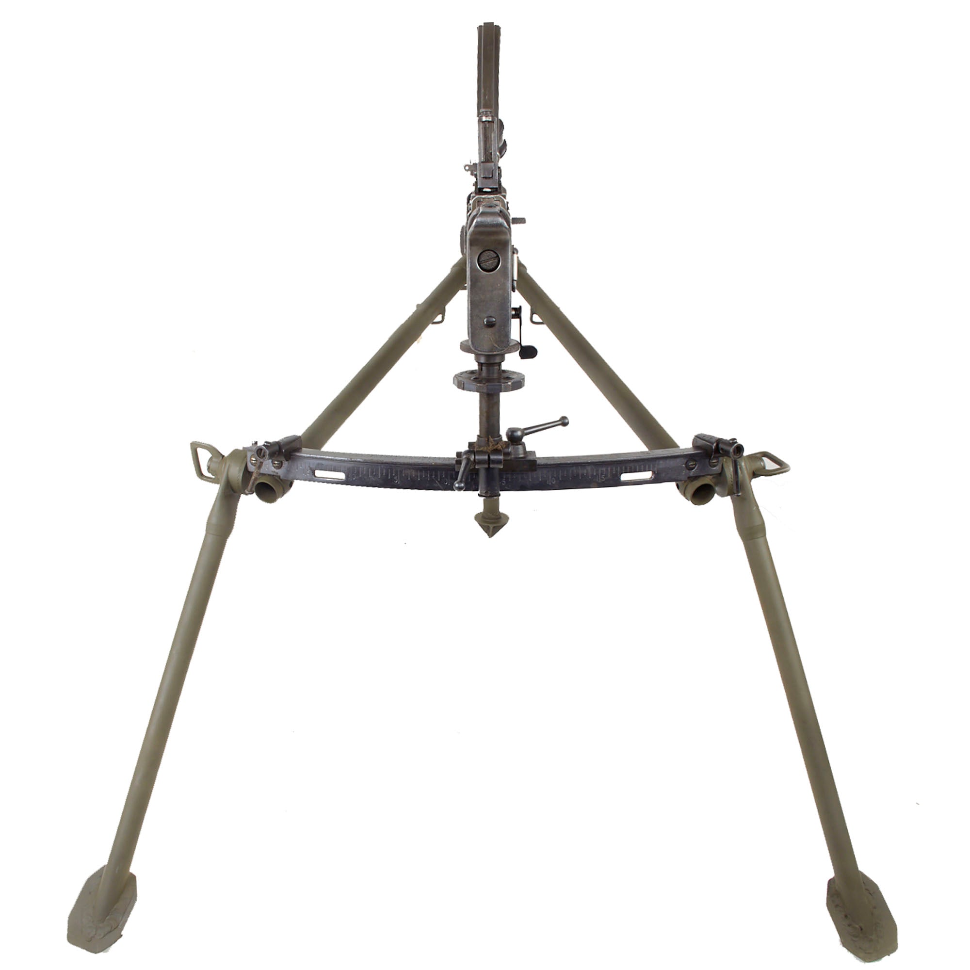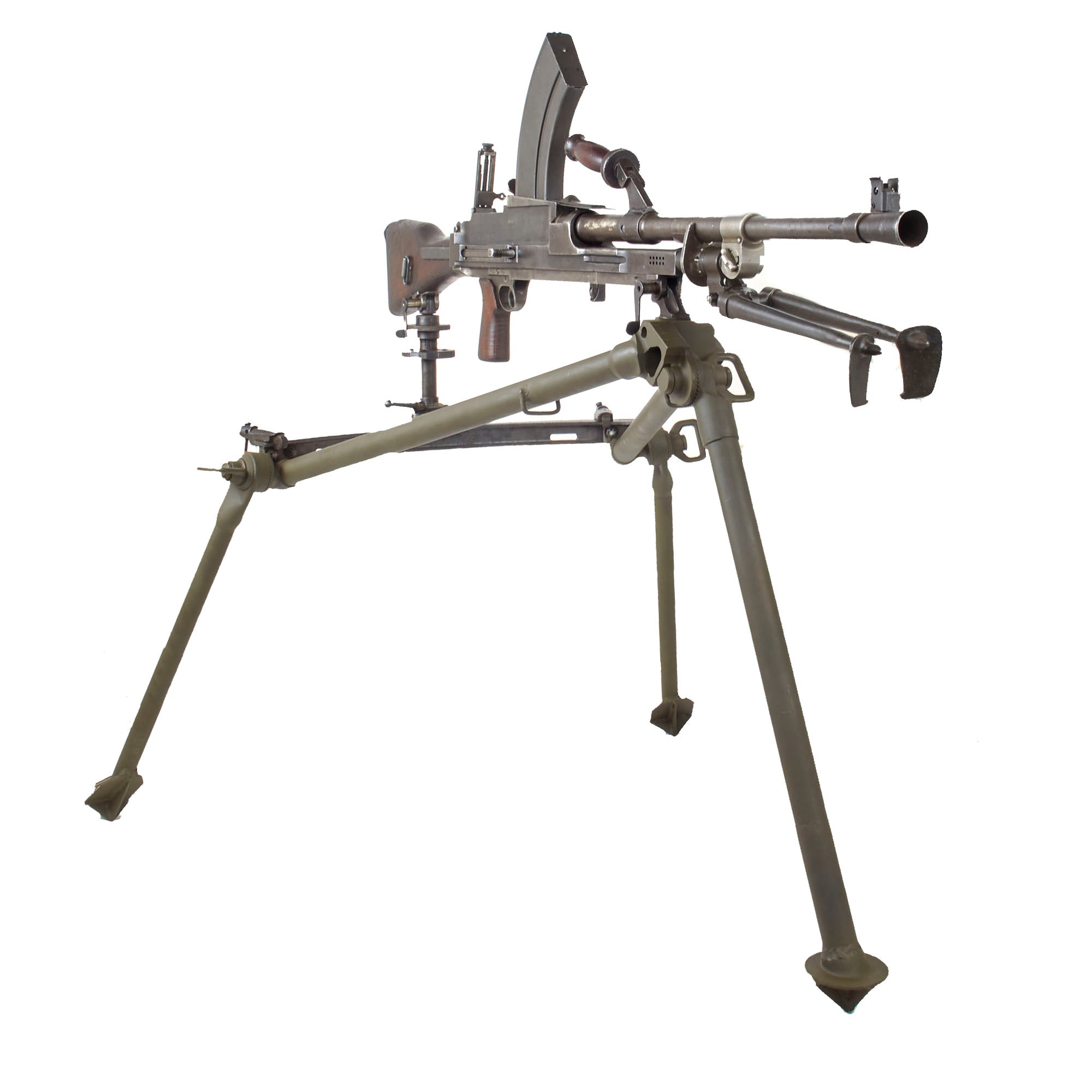 Original Item: Only One Available. This is a great deactivated display example of the iconic Bren MkII Light Machine gun, as used by British forces during WWII, complete with an original wartime issue Bren Tripod mount. It was built from all original parts on an original BATF compliant non-firing display receiver, making it a 100% legal Display Machine gun. This receiver was created by using portions of the original torch cut receiver, including the barrel bushing, combined with some new made steel portions. It has properly had a 25% section of the total length completely replaced entirely with solid steel bar stock. Meaning a 1/4 length section of the display receiver is solid steel, making this totally legal to own without a license of any kind. Every part on this display gun is original WWII manufacture other than 25% of the receiver replaced by solid steel (as required by BATF). Additionally many of the deactivated internal components were welded in place inside the receiver to increase the display potential.