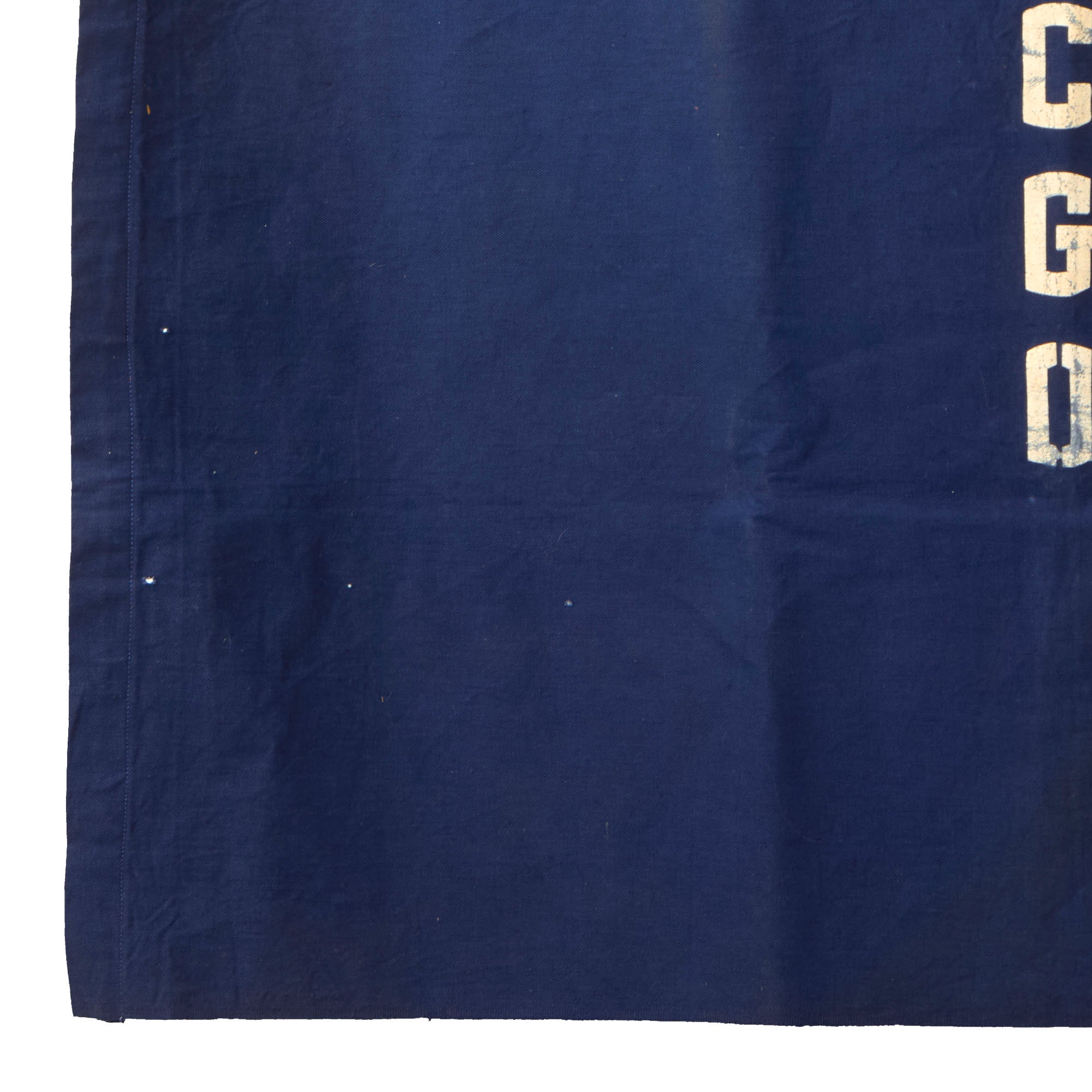 The meeting was certainly held after WWII, possibly in the late 1940s or 1950s. The banner measures 35 x 66” and has been folded a lot, but doesn’t have any grommets by which to hang it. There is also some staining and dirt on the banner.