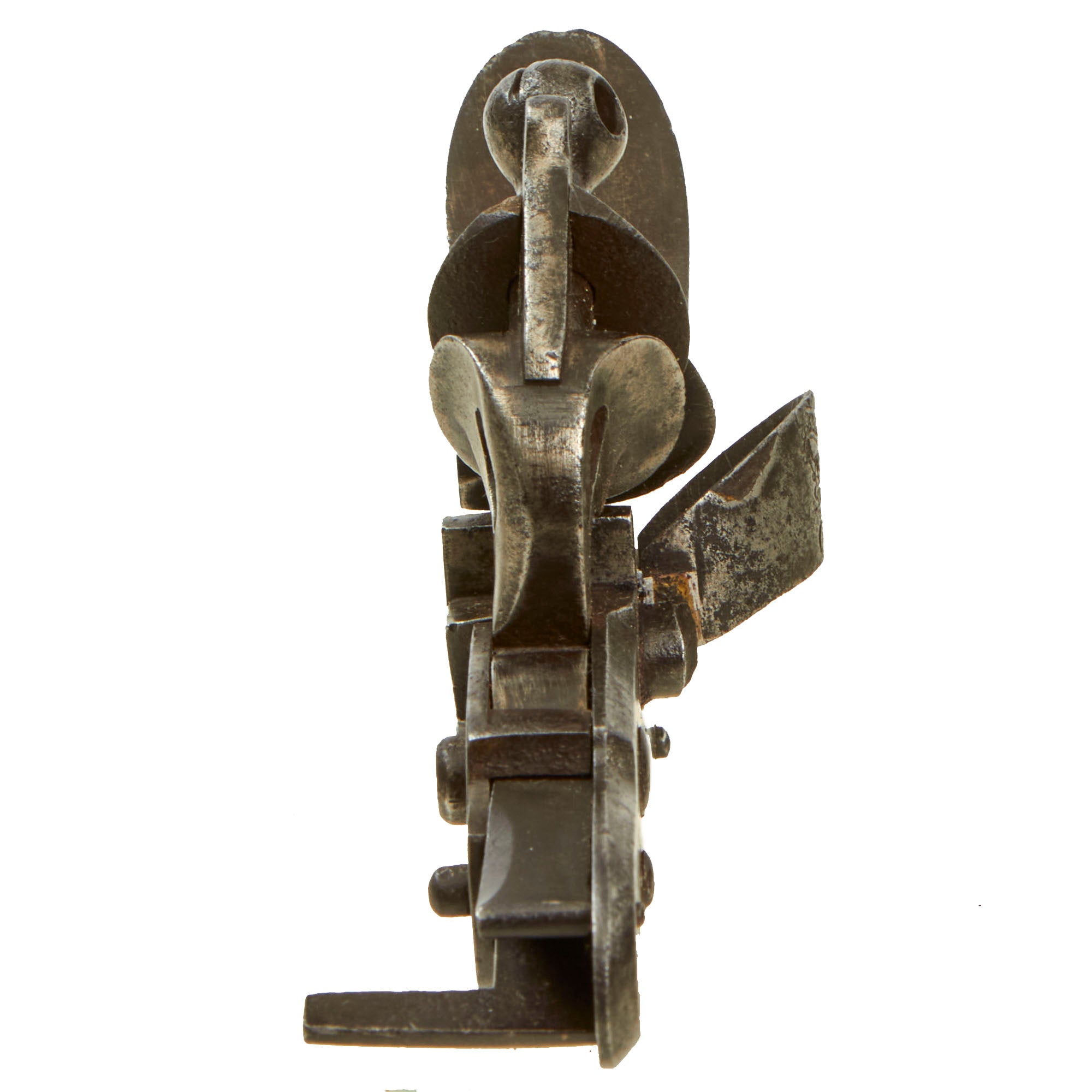 This is an exceptionally scarce lock made by one of the most legendary of all British Gun Makers, Henry Nock. We have only seen a couple of other examples, one affixed to a pistol and one to a carbine, so don’t miss out on this rare opportunity to find one detached like this. A great and likely experimental bit of British firearm history relating to one of the biggest names in the industry. Comes ready for further research and display.