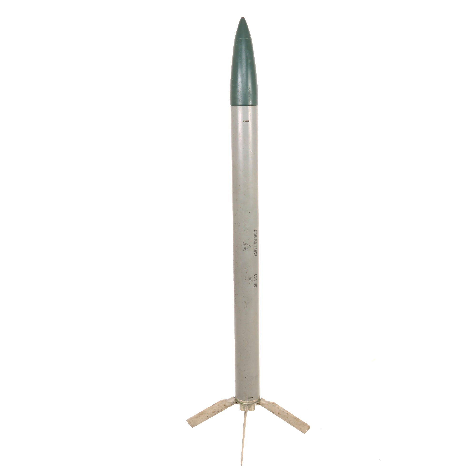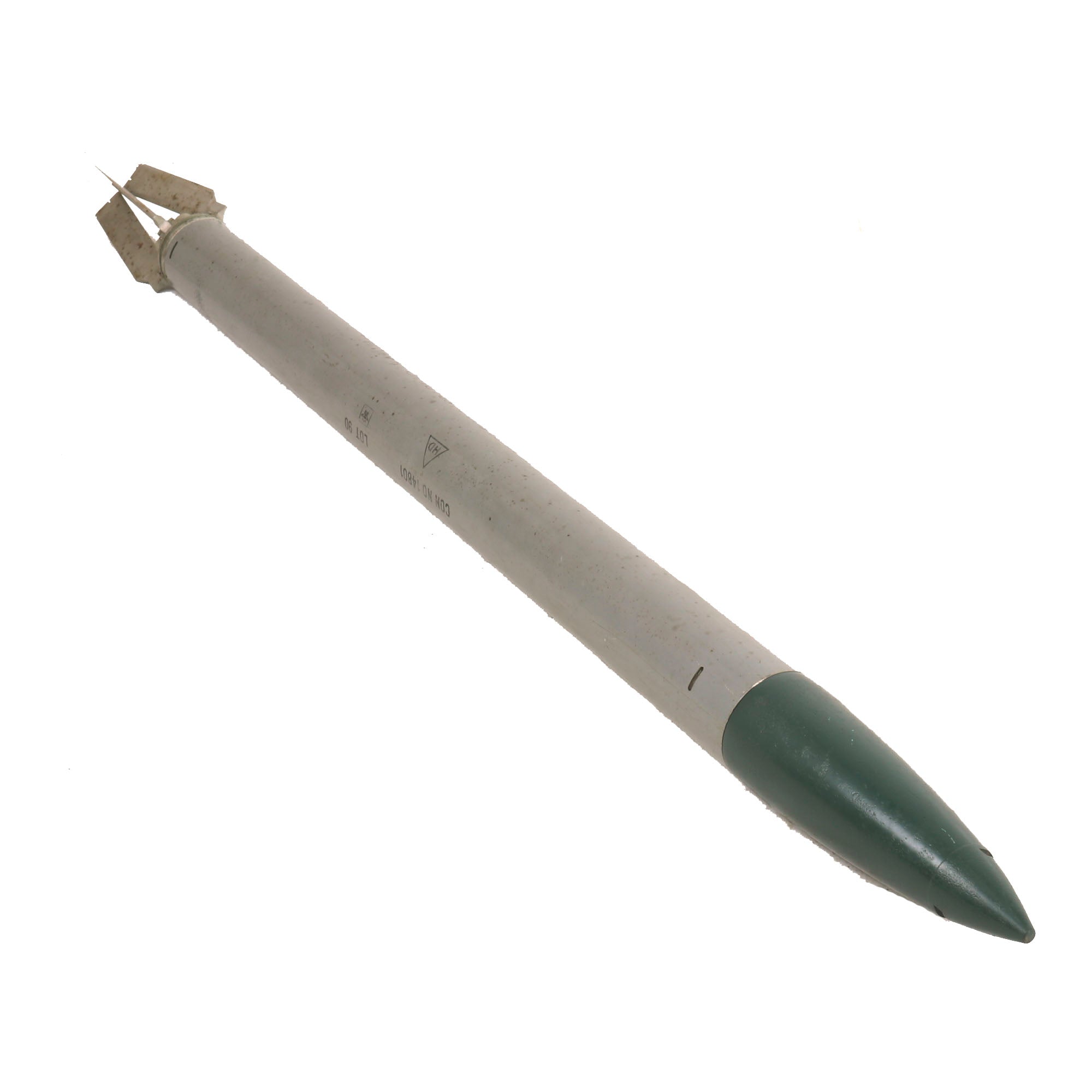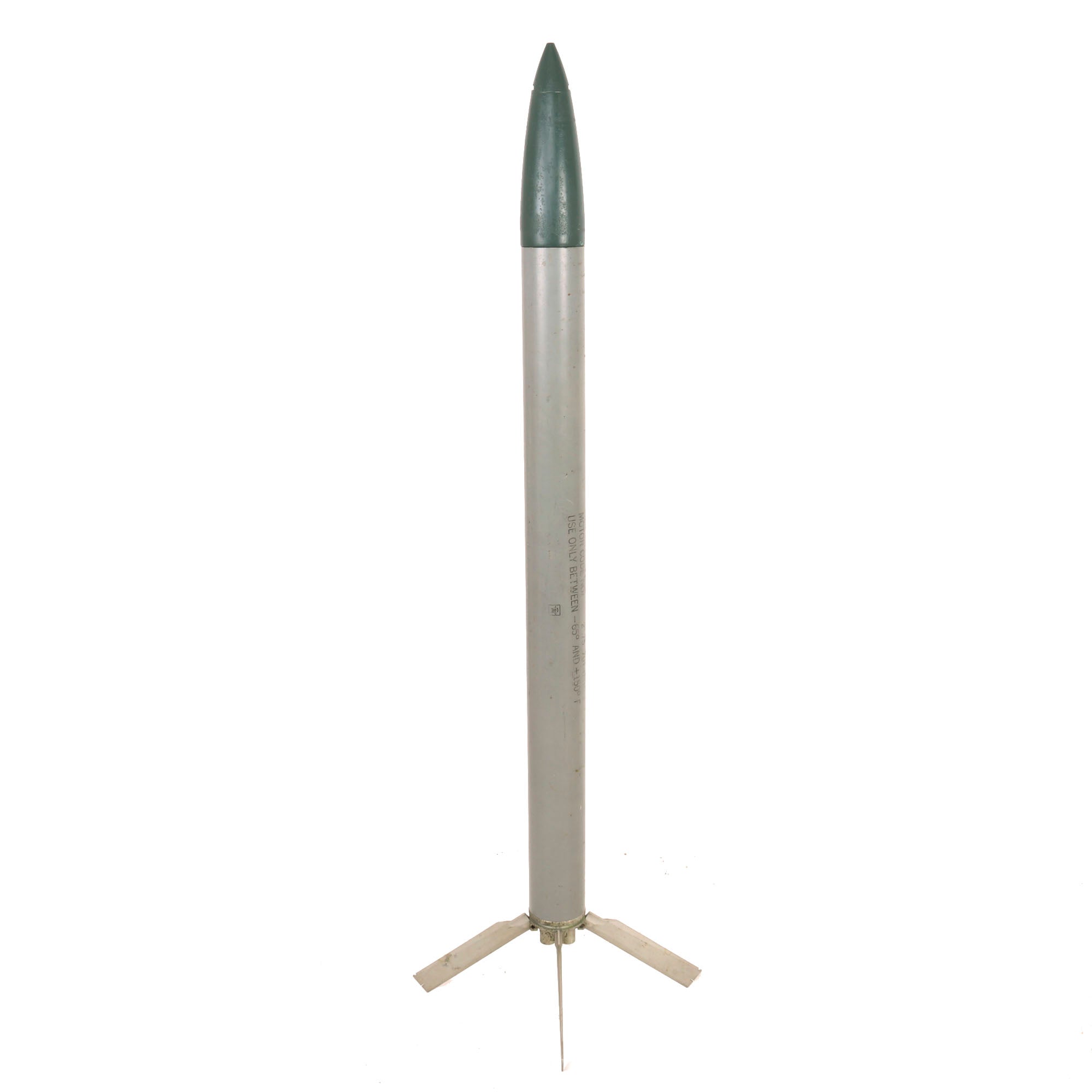 Original Item: Only One Available. Original Vietnam Era Hydra 70 Rocket with Warhead. Rocket and engine have been demilitarized for training purposes, and clearly stenciled INERT by the United States Military. These were fired from rocket pods attached to Huey UH-1B, and AH-1 Cobra Gunships during the Vietnam War in a surface-to-ground role. This particular Rocket is composed of an M-423 Fuze Assembly, a 2.75” High-Explosive FFAR warhead, and a Mark 66 Rocket Motor Assembly. Fuse is marked. The MK66 Motor Assembly is still equipped with it’s original spring loaded stabilization fins. Weighs about 20 lbs and measures 48" in overall length with a 2.75" diameter.