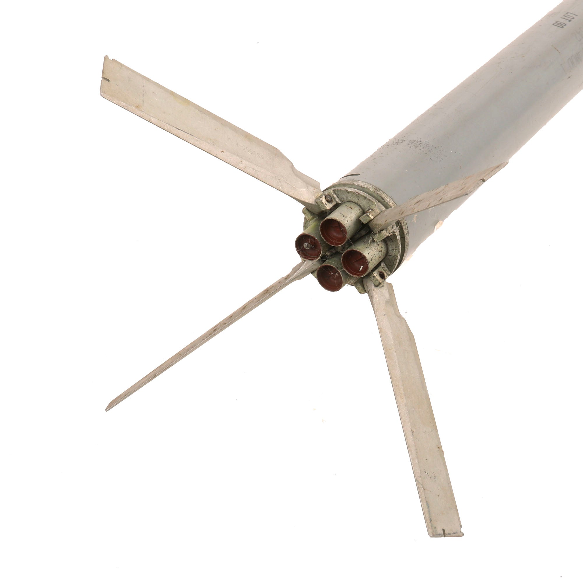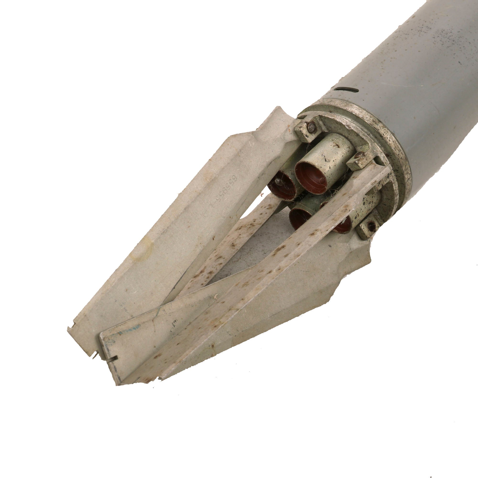 This is a mostly complete and wonderful example of a heavily used type of rocket used during the Vietnam War. With the wings fully deployed, it measures roughly 48” long. The condition and paint is wonderful and is welcomed into any ordnance/Vietnam collections!