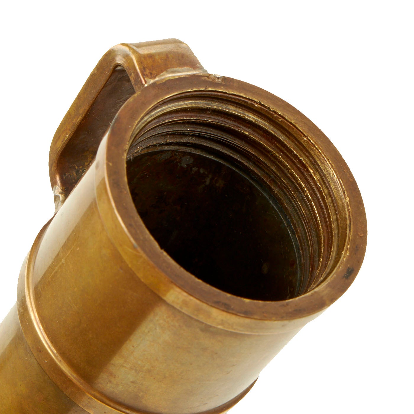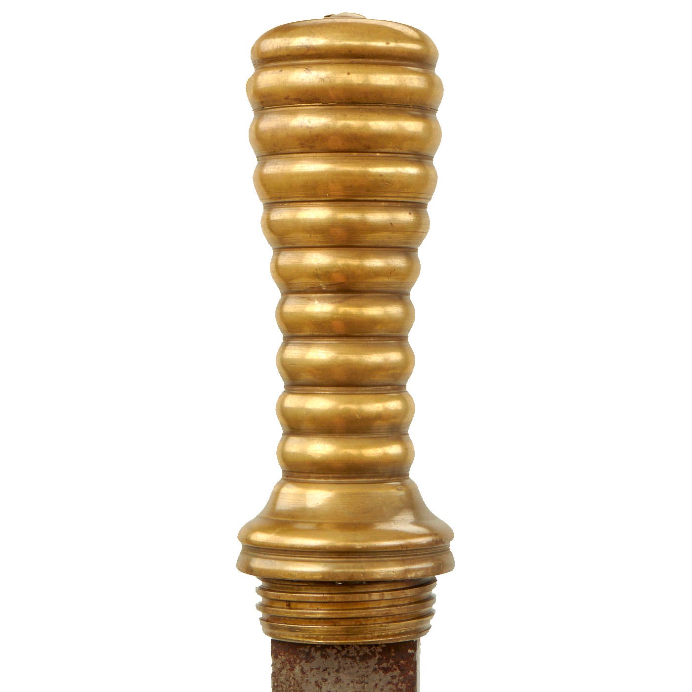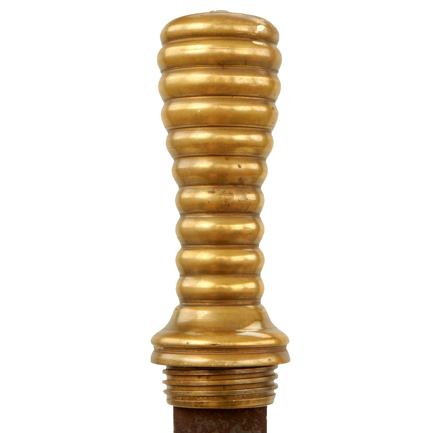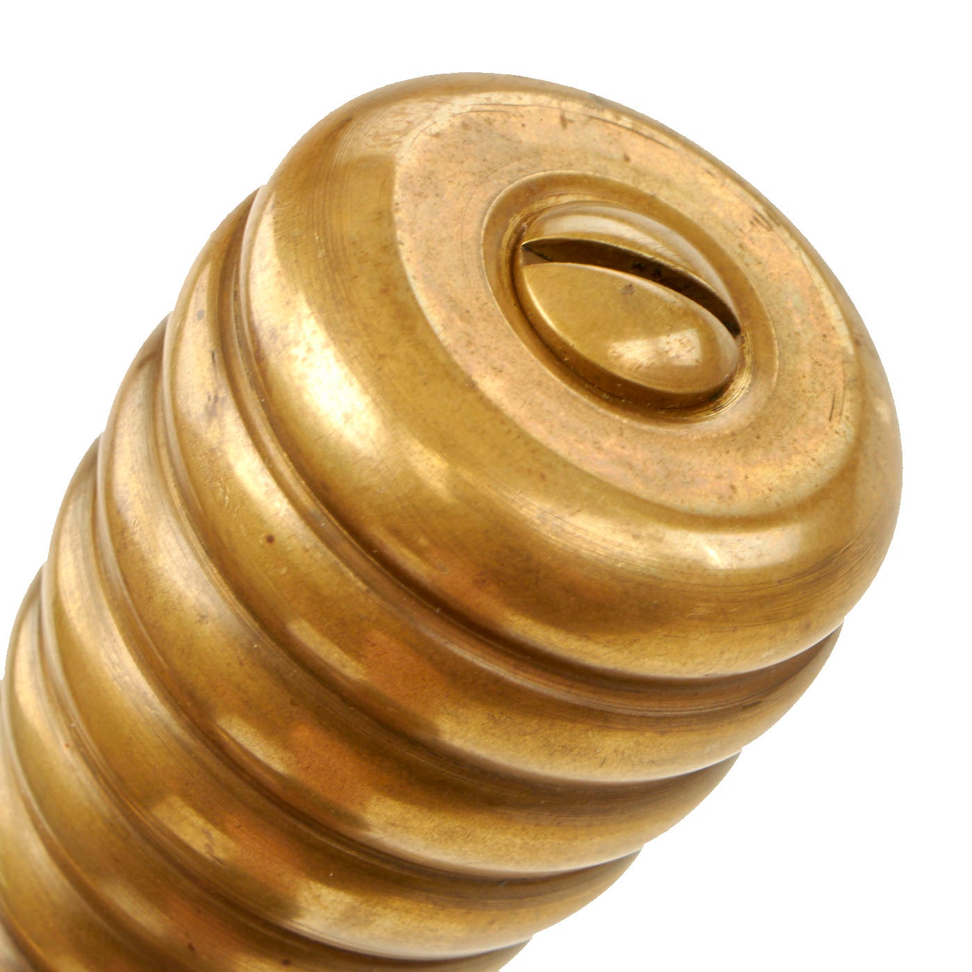 Original Item: One of a Kind. This is a rare example of an early 20th Century French Navy Diver's Knife, complete with the original brass scabbard. We have consulted many historical photographs, and the style of the handle and the type of securing nut on the end of the pommel definitely match the French style. They are similar to those used by Germany, however the shape of the handle and scabbard are different from the more angular German design. Originals are almost never seen on the market, as most were lost long ago during a dive or melted down for the brass. This example is completely correct and genuine, with a lovely aged patina on the exterior.