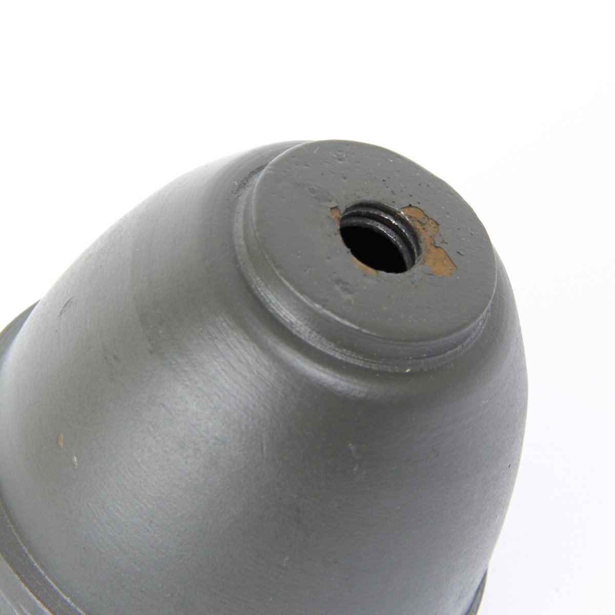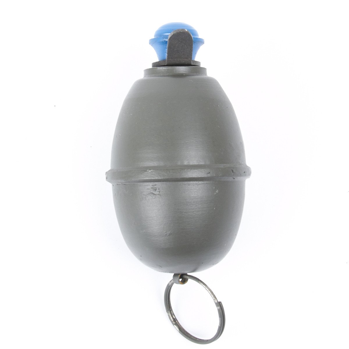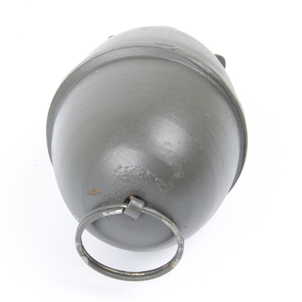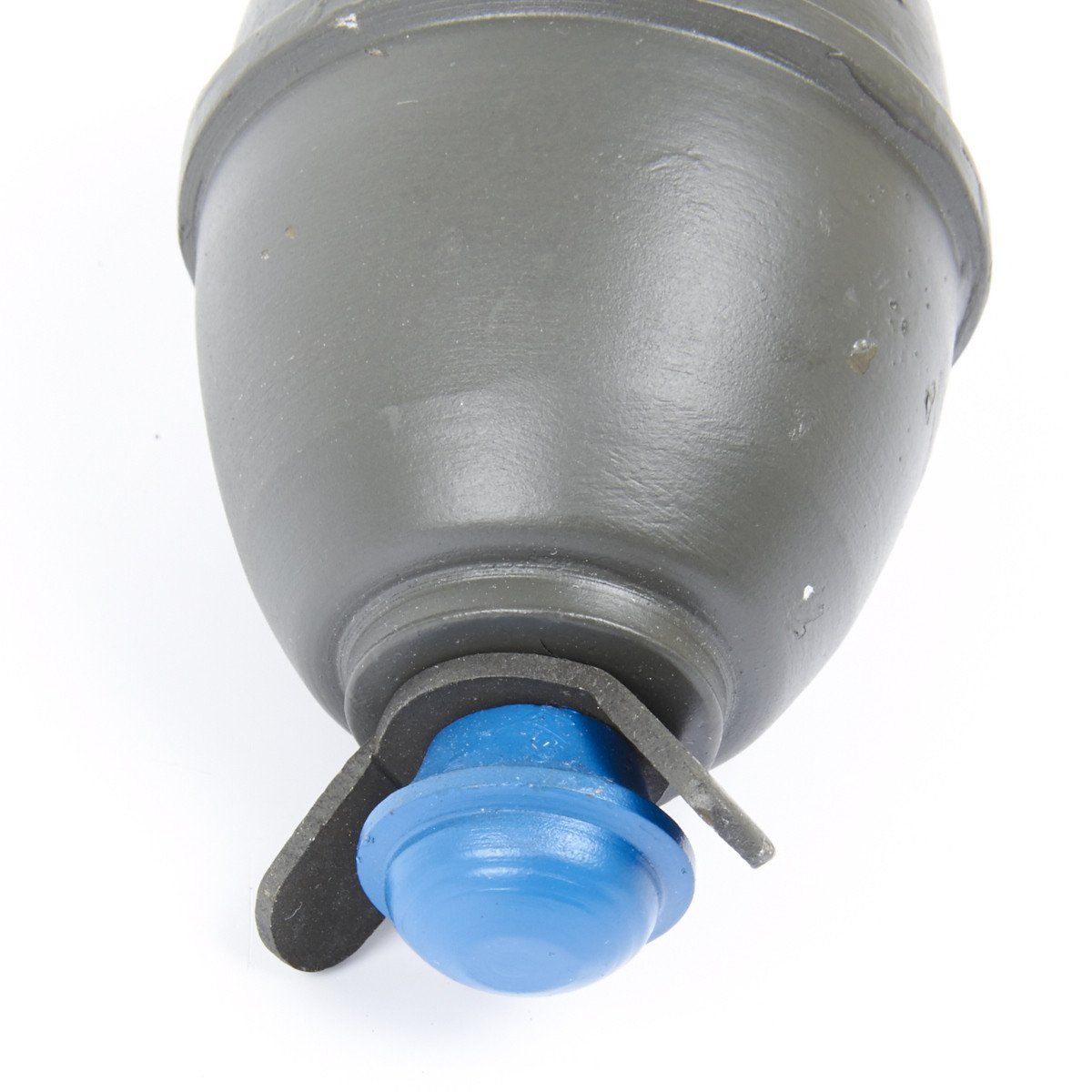Our steel reproduction is totally inert and was copied from an original in the IMA collection. Features include- steel construction with painted Wehrmacht grey/green making it extremely durable, with carry ring, detonator wings, and screw off blue fuse top.