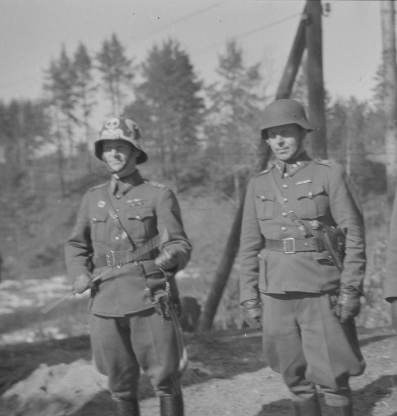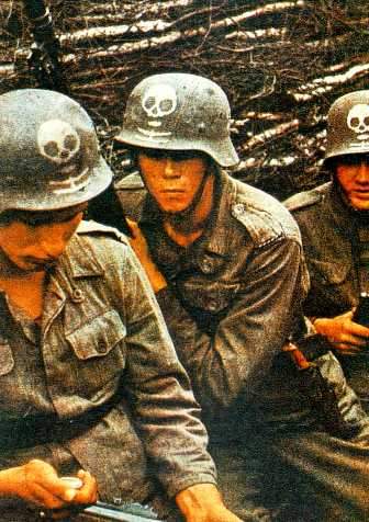 The use of the skull by the Finns on the M40 helmet can also be seen in a period photograph of the Finnish 4th Division, Kev Os. 4 (Light Unit Number 4) whose primary role was armed reconnaissance to protect the main infantry body. Kev Os.4 (4th Kevyt Osasto) rapidly acquired the nickname Belaya Smjert, or "White Death," from their Soviet opponents in the 1939–1940 Winter War between Finland and the USSR following a series of deadly hit and run attacks by the unit's highly mobile ski troops. The members of Kev Os. 4 enthusiastically adopted the nickname, with many painting a skull and bones on their helmet fronts to further terrify their enemies. Despite inflicting terrible losses on the invading Soviets, the Finns had lost the Winter War by March, 1940. The Finns would later join the Axis forces in their June, 1941 invasion of the Soviet Union, hoping to recover territory lost in the previous treaty with Moscow. The skull painted helmets went with...