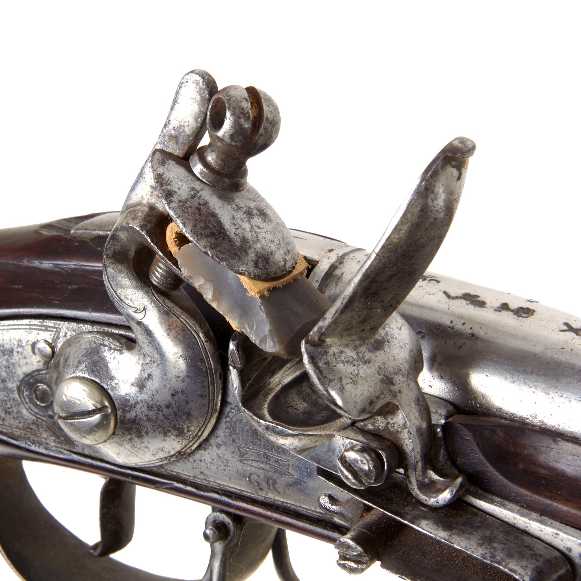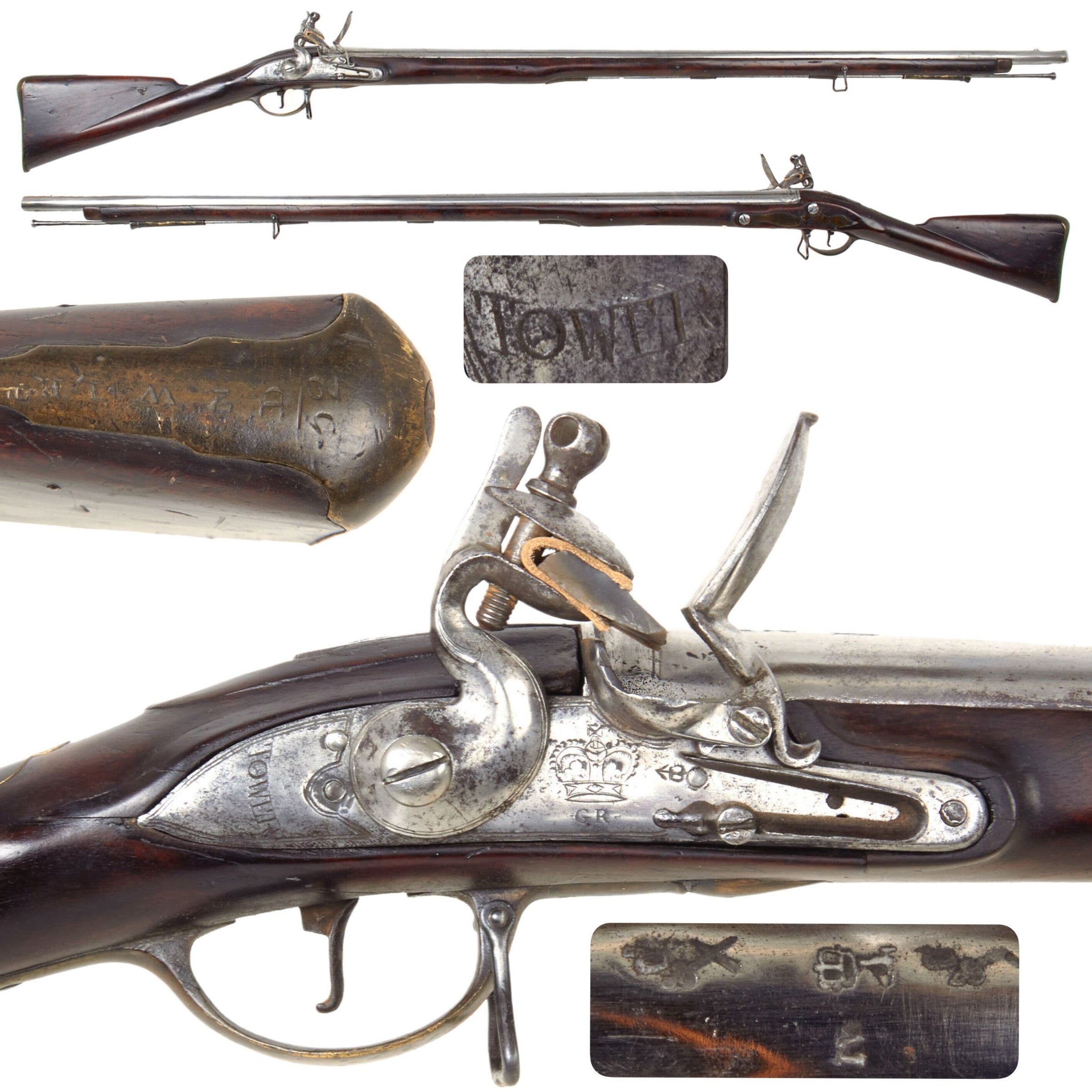 Original Item: One of a Kind. This is a stunning British "Short Land Pattern" Regimentally marked Brown Bess Flintock musket, featuring the 42" barrel first adopted by Dragoons 1740. In 1768 it became the standard infantry musket, and remained so until 1797, when the Third or "India Pattern" took over. This was the standard infantry Musket of the line from 1768 until 1805, when it was supplanted by the "India Pattern" with a shorter 39 inch barrel. This time period involved many famous conflicts, including the American Revolution, and the numerous conflicts of the Napoleonic Wars.