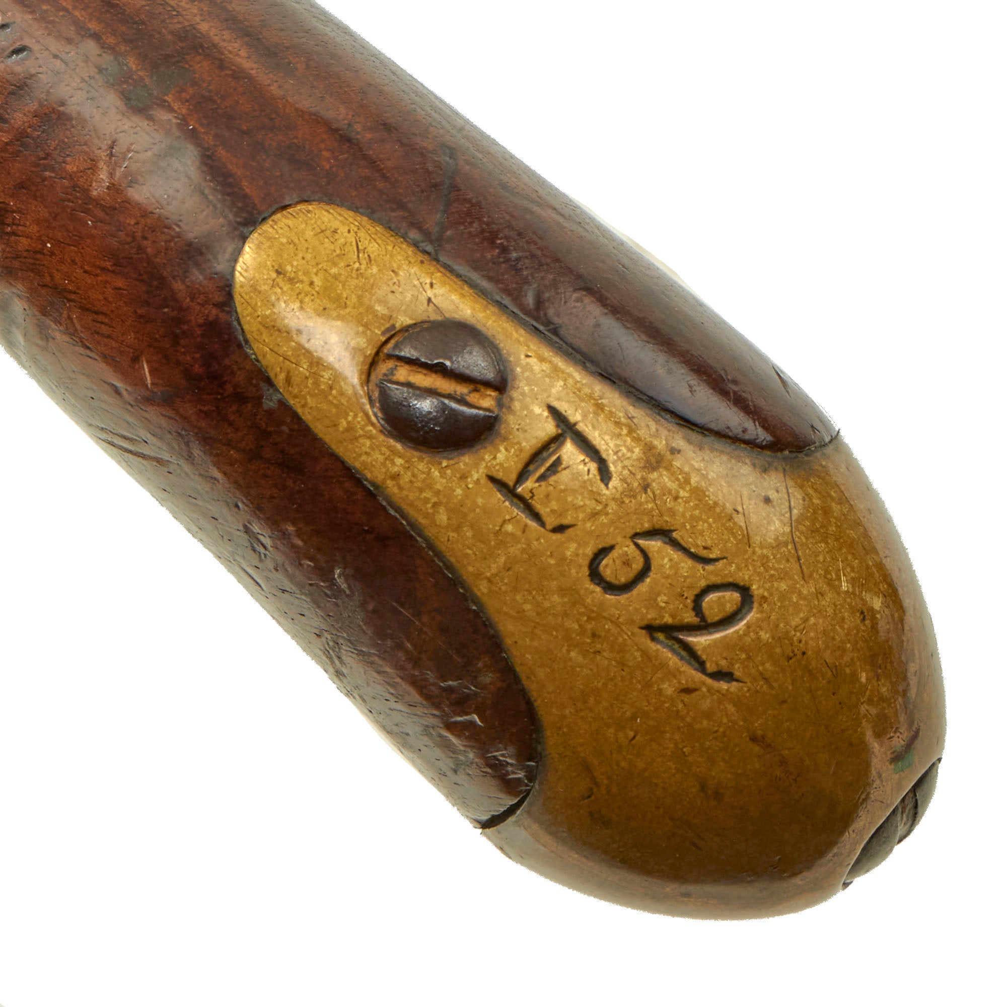 The Dutch Model 1815 Light Cavalry Flintlock Pistol was produced during a pivotal moment in European history, at the close of the Napoleonic Wars. In 1815, following Napoleon’s defeat at Waterloo, the newly unified Kingdom of the Netherlands found itself in need of modernized weaponry for its reorganized army. The region of Liège, then part of the Netherlands and already one of Europe’s foremost centers of gunmaking, supplied a large portion of these arms. Skilled Liège gunsmiths, including Guillaume Berleur, manufactured flintlock pistols for Dutch service under government contracts. These pistols were typically marked with the date “1815” on the barrel tang and often carried additional serial or unit markings, such as “D 52” on the butt cap, indicating regimental assignment.