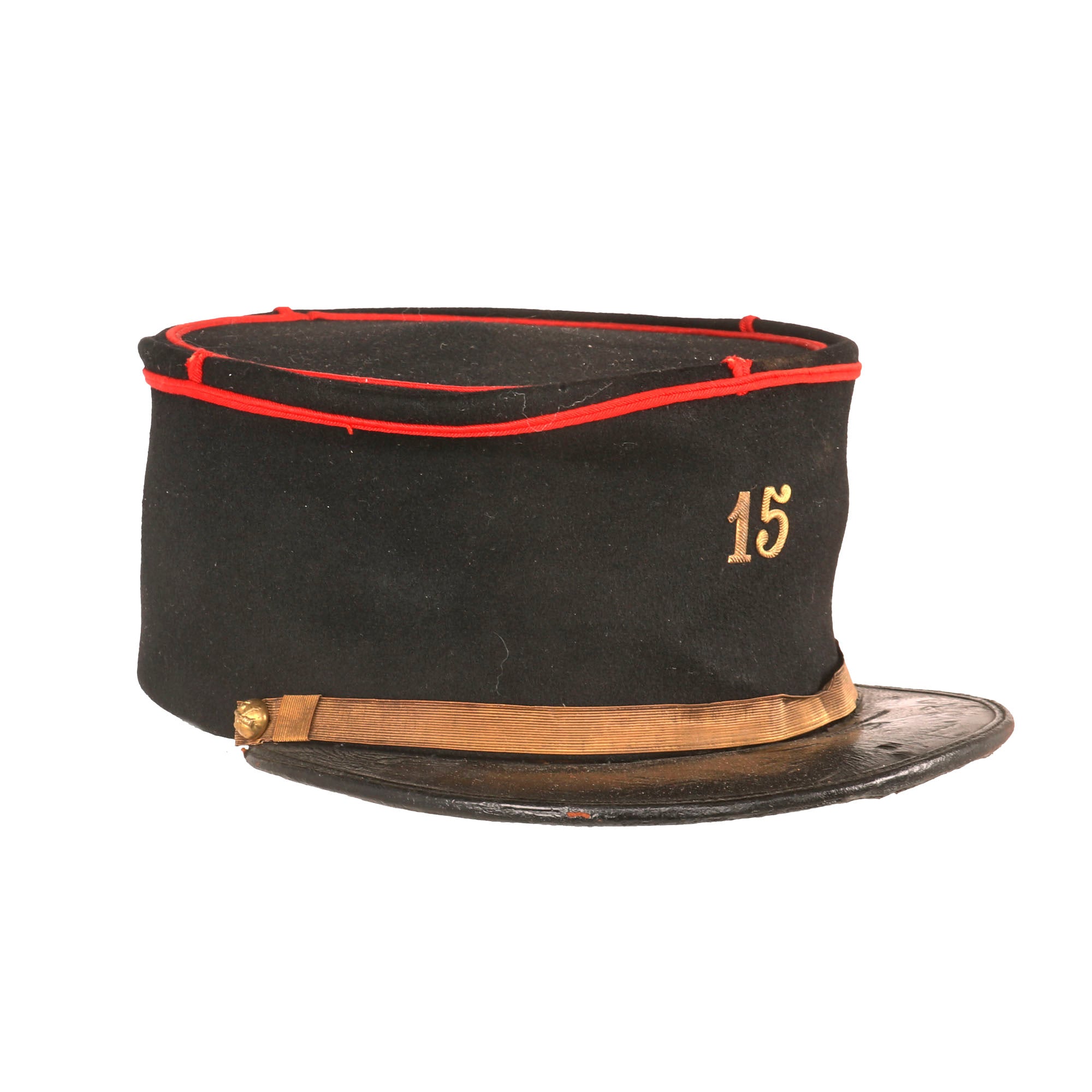 • Original Item: Only One Available. This is a lovely World War One French Artillery Officer’s kepi in excellent condition. This is the lower height style kepi they first started using after phasing out the floppy or "bummer" type kepis. This style was only worn for a short time during WWI into the early 1920's. From the construction of this example, it appears earlier and certainly WWI period. It has numerals on the front denoting the 15th Field Artillery.