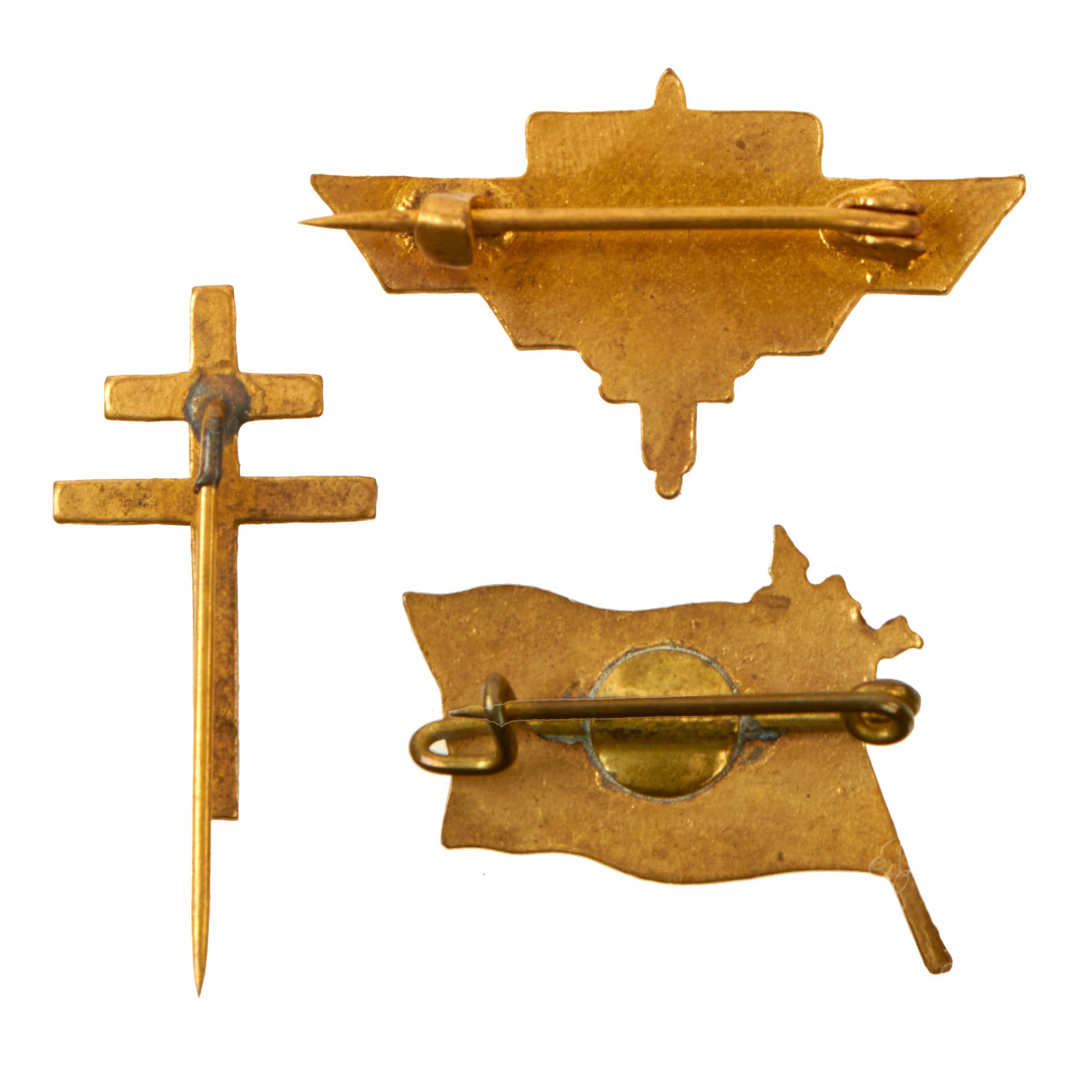 Also included are three small pins, the first being a plain brass Cross of Lorraine, the second being the FFI Insignia on the French flag, and the third being French wings with FRANCE LIBRE at the top.