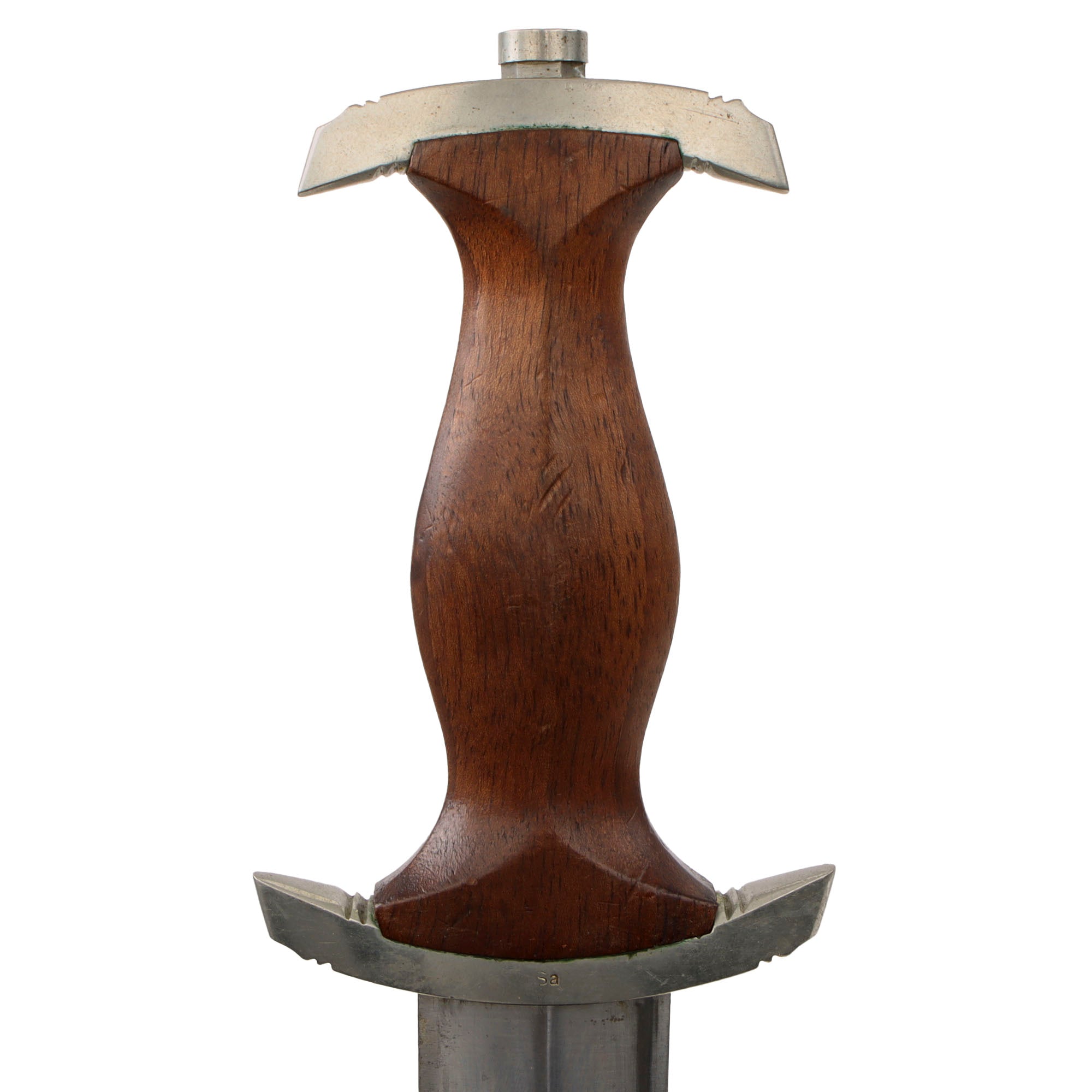The SA or Brown Shirts, were a private political formation which Adolf AH and the NSDAP used to maintain order at organized Party meetings and demonstrations. The group was formed in 1921, and grew to a huge force of nearly 3,000,000 men by the later 1930's. To instill esprit de corps, as well as create employment for the Blade City of Solingen, it was decided each SA man would carry a dagger with his Brown Shirt uniform. Huge quantities needed to be produced to accommodate the demand. The dagger initially was produced of hand-fitted nickel mounts with attractive finished wood grip and brown anodized (a bluing process) finished scabbard.
