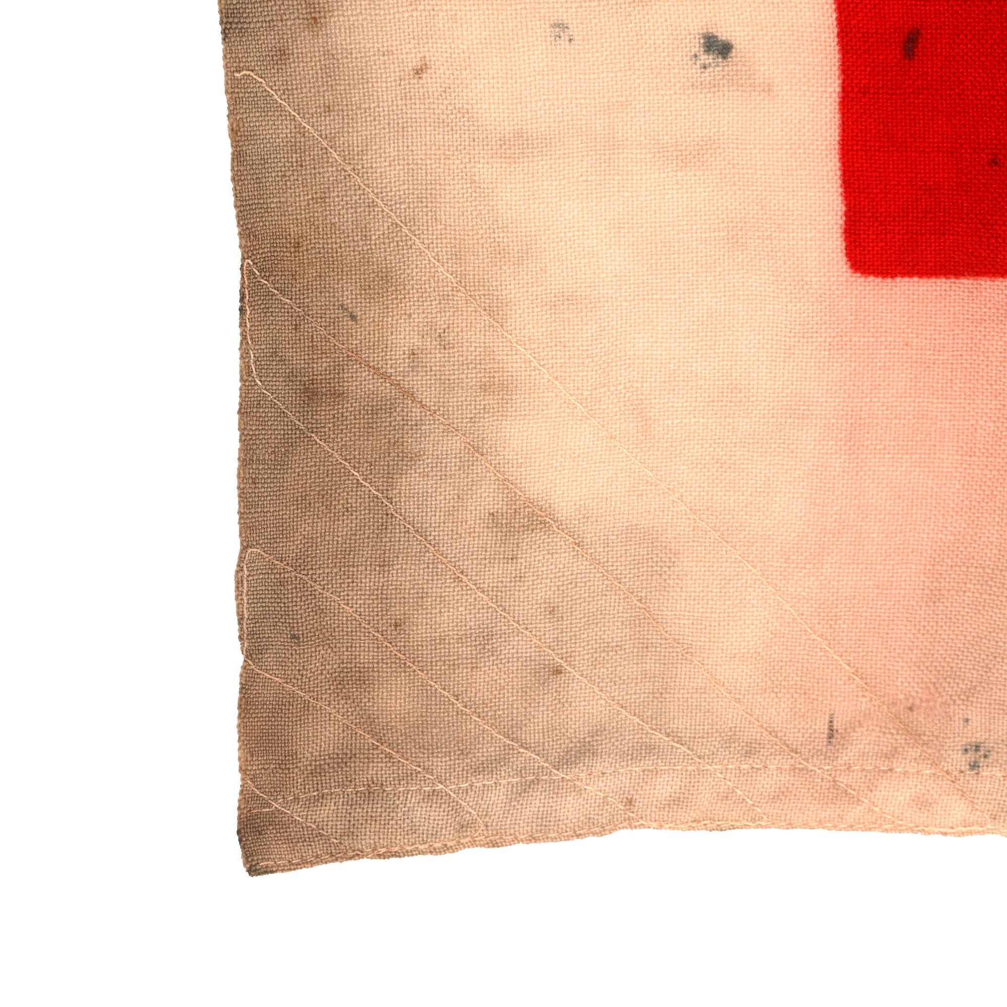 Original Item: Only One Available. This is something that we have only seen a very few of before! This is a very nice German WWII Kriegsmarine Navy Lotsen-Flagge (Harbor Flag), likely marked Lotsen-Flg. 0,5 X 0,6 on the header, but due to the heavy wear, the markings are too faint to read. This would indicate a relatively small size of 0.5m (19.7in.) by 0.6m (23.6in.), and measuring the flag confirms this. When flown on a ship or boat, this flag indicated that the ship had a qualified harbor pilot aboard. These were required when going in and out of the congested and dangerous waterways inside major deep water ports. With the flag other vessels, particularly the water police, would be aware that the vessel was underway under qualified direction. It is also possible that these smaller flags were used to indicate a launch that had the harbor pilot on board, in transit to a larger ship.