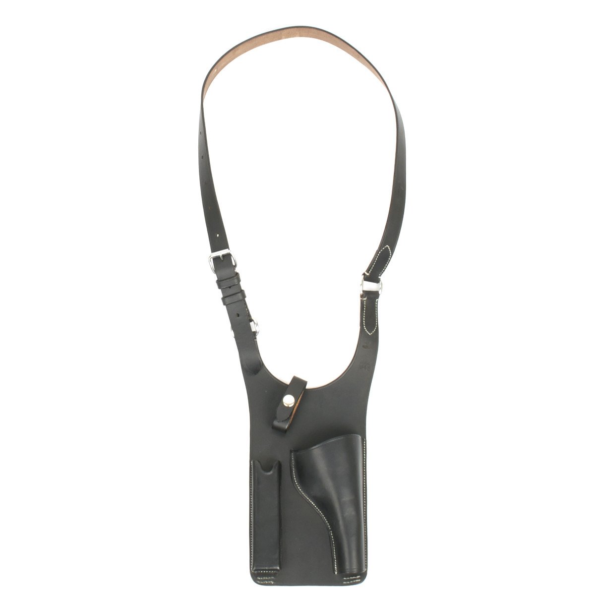 Offered in supple high quality black leather, these bear replicated German WW2 stamps and dates. Each comes complete with spare magazine pocket, neck strap and belt securing loops.