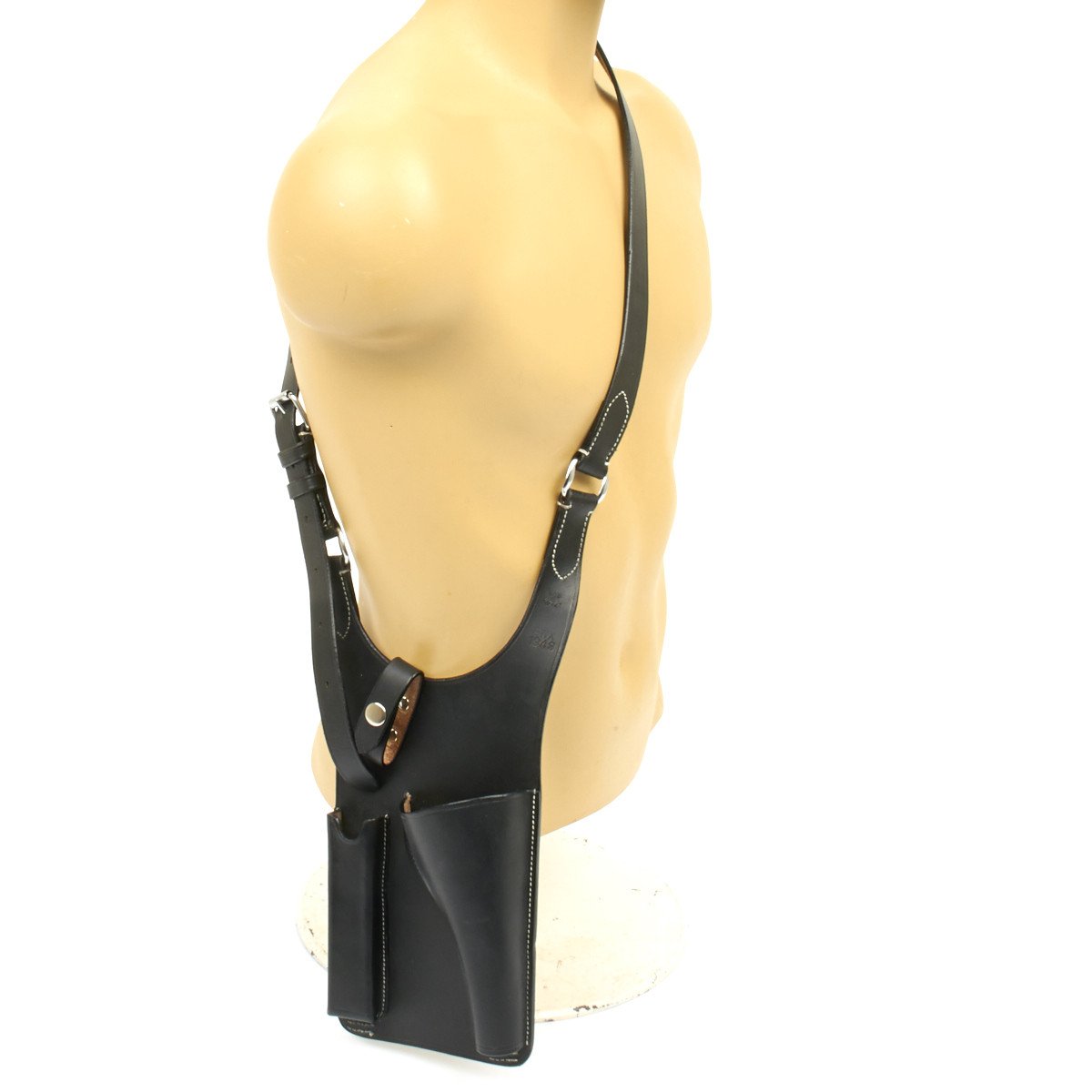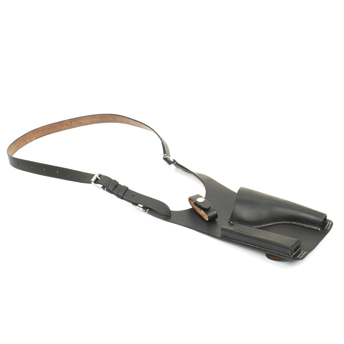 New Made Item: A faithful new made example of the very scarce German WWII Panzer Pistol Shoulder Holster designed for a German tank commander's 9mm Parabellum P-08 Luger pistol.