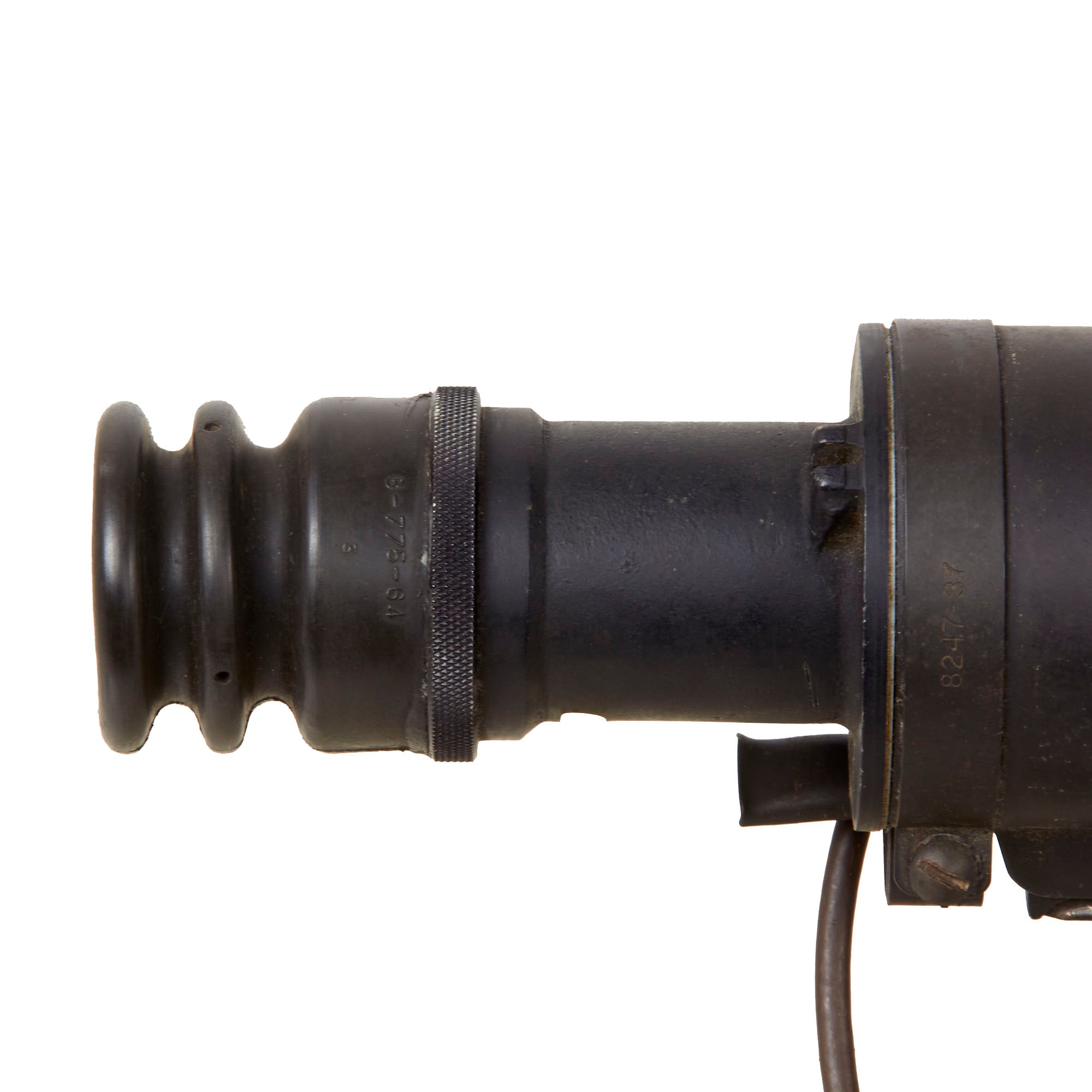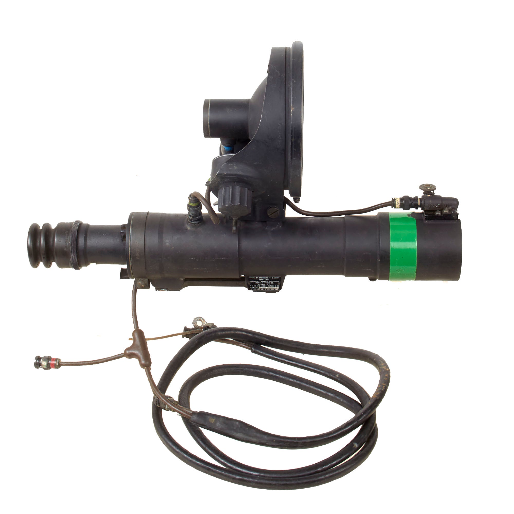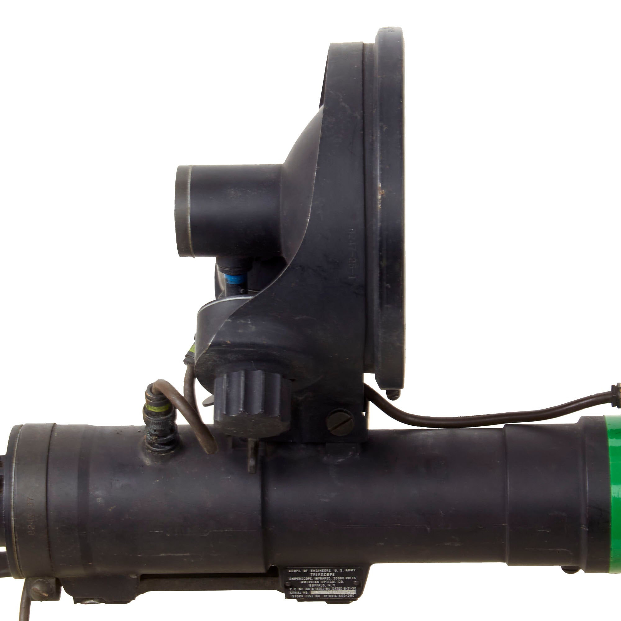 Original Item: Only One Set Available. This is a rare, mostly complete infrared sniper scope for the M3 Carbine. The set comes complete with the sight, wood transit chest, battery, rubberized carry case, spare bulb, and other parts. There are no manuals in the set. We are not sure about the functionality of the set. There are some pieces that may be broken, but the spare bulb is in great shape, and looking through the scope, you can see a faint red light. The small compartment with all the small accessory pieces is empty. This is a set that requires some work.