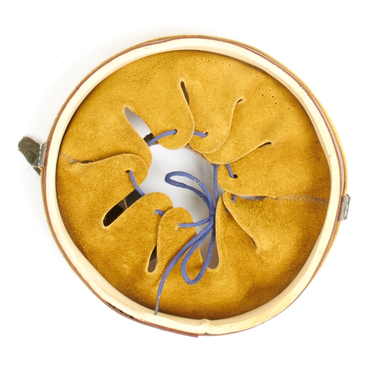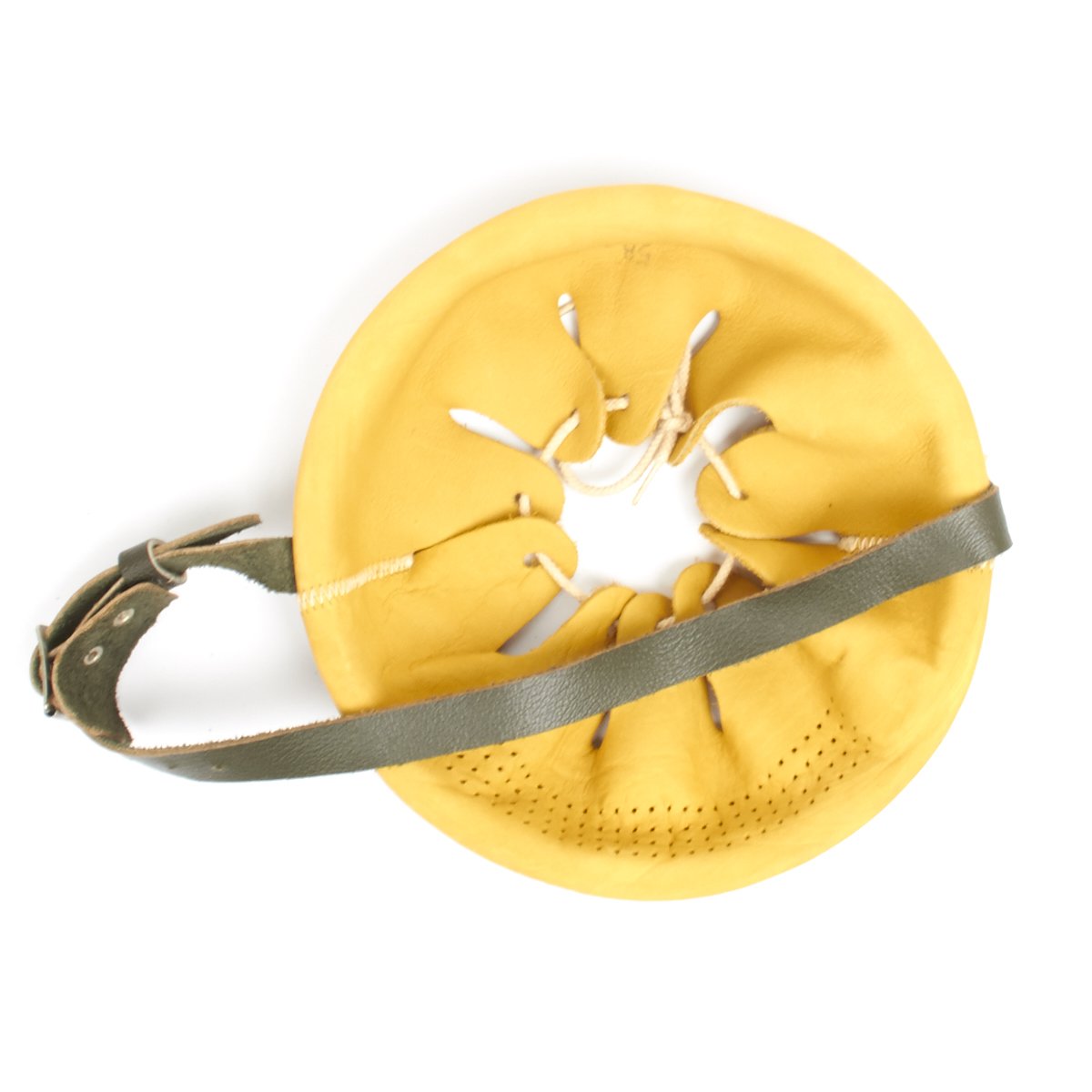 Each liner is offered in unissued condition and varies in color from white, grey and yellow. The chinstraps are grey leather with a steel buckle. The method of attaching the liner to the shell was different than typical German WW2, as no split pins/washers were used. Instead, the Finns decided to directly rivet the liners to the shell. We do not offer rivets for sale.