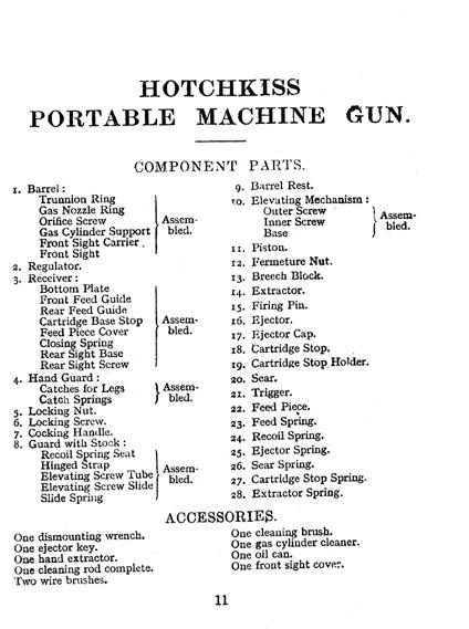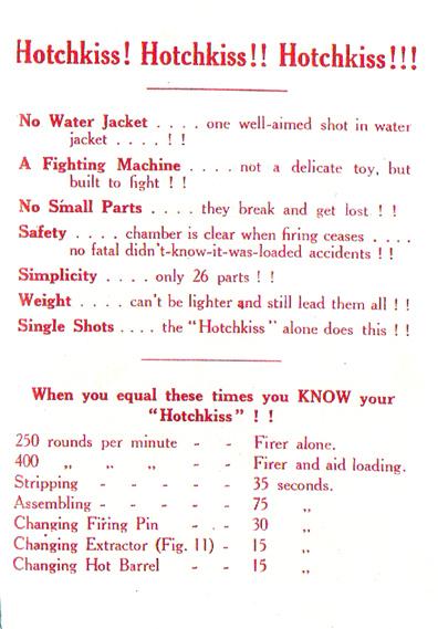 Newly Printed Item: Perfect Reprint of WW1 era British Military Issue soft cover Handbook covering the Hotchkiss Portable Machine Gun, often referred to as the "Cavalry" Model. Measuring 5 1/2" x 4" with 50 pages including many photographs and line drawings showing exploded views, assembly and service instructions, together with original "In the Field" photographs. Ideal for every WWI enthusiast.