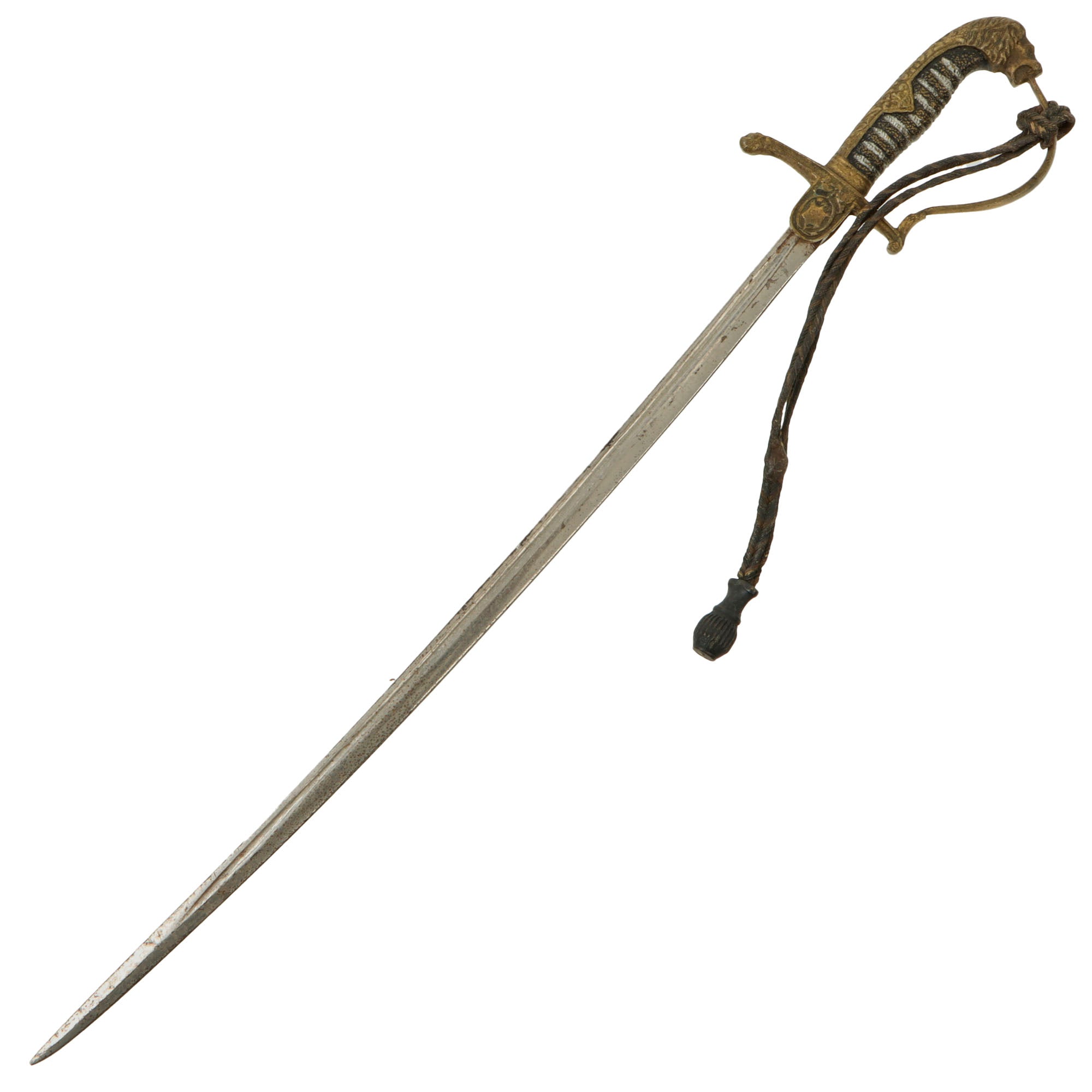 - One German Eagle Head Sword with bullion troddel knot. Measures 9" in length