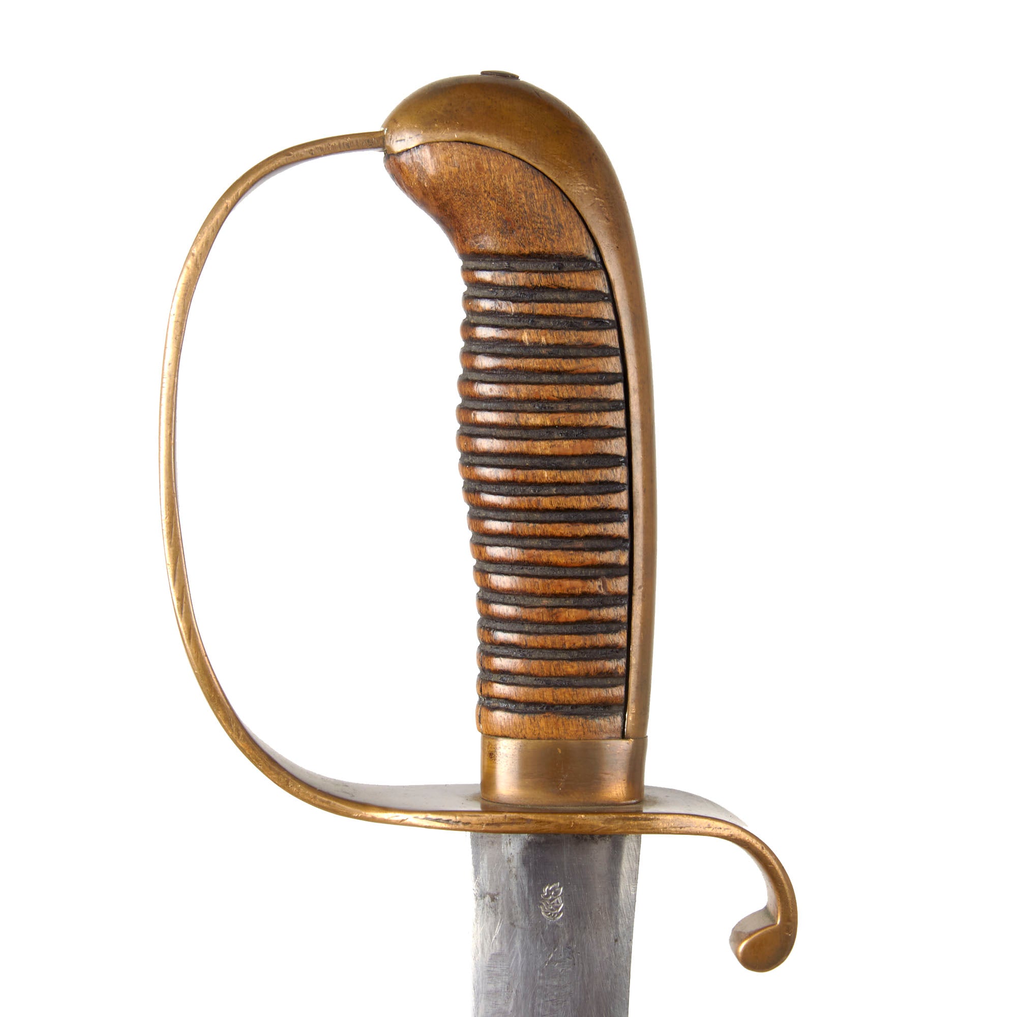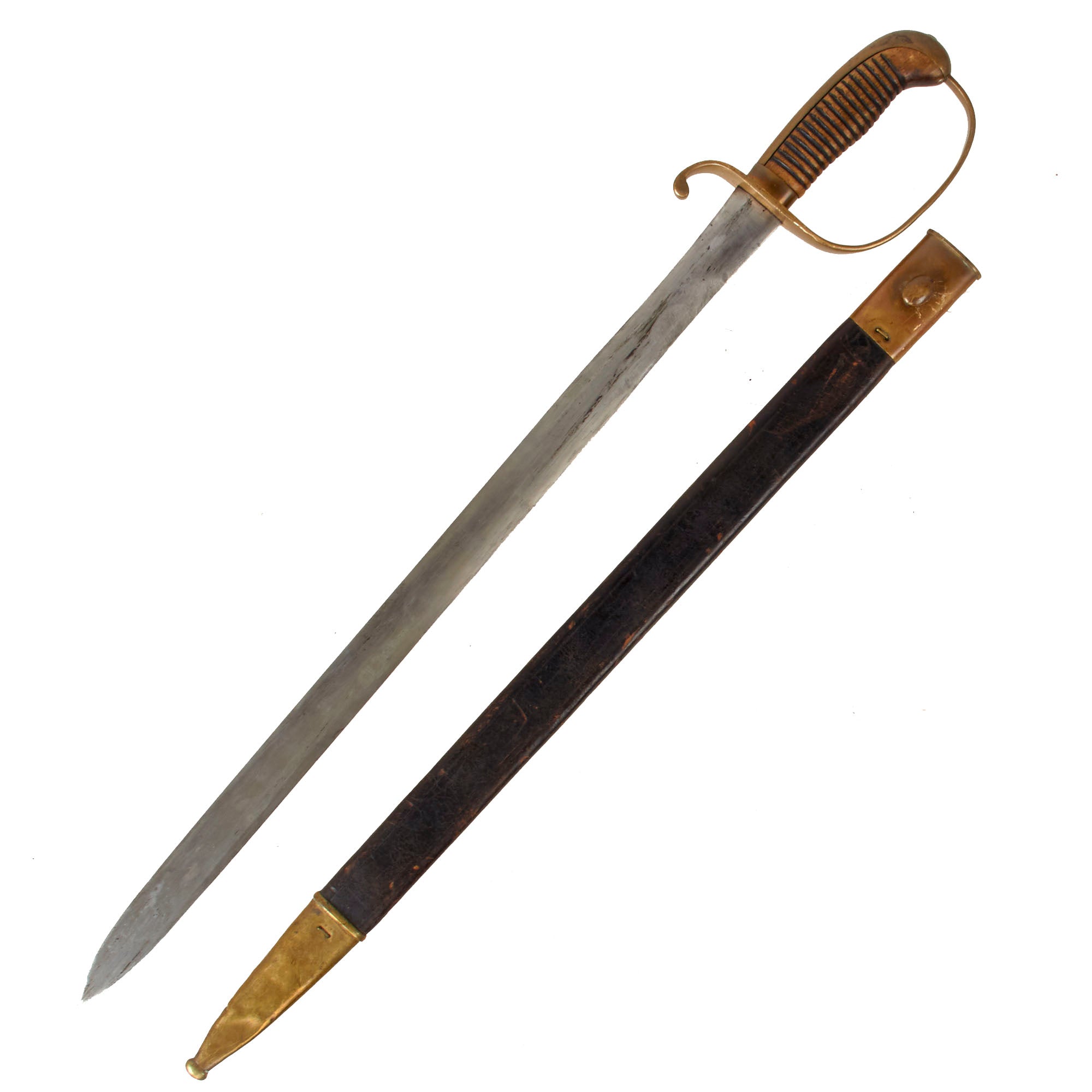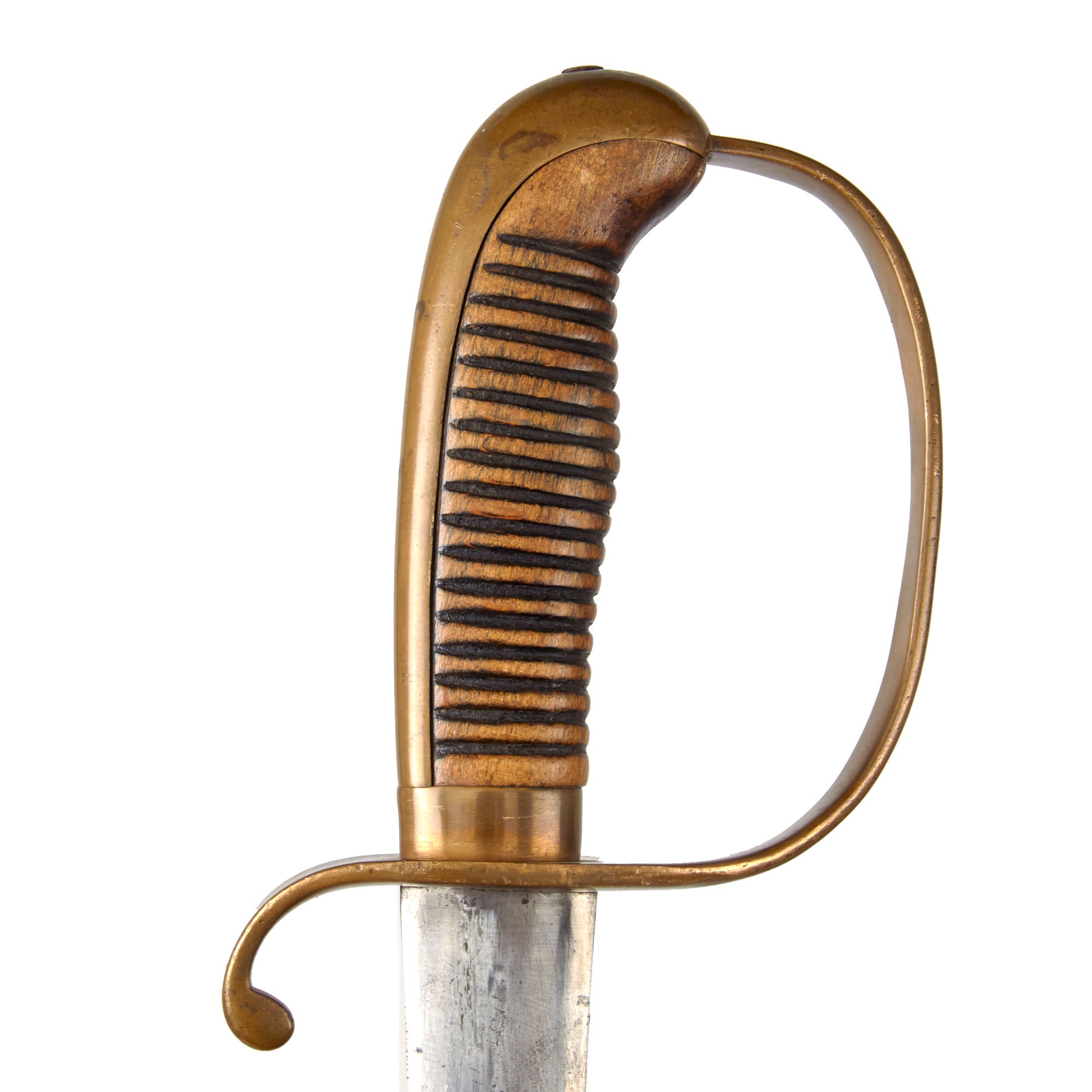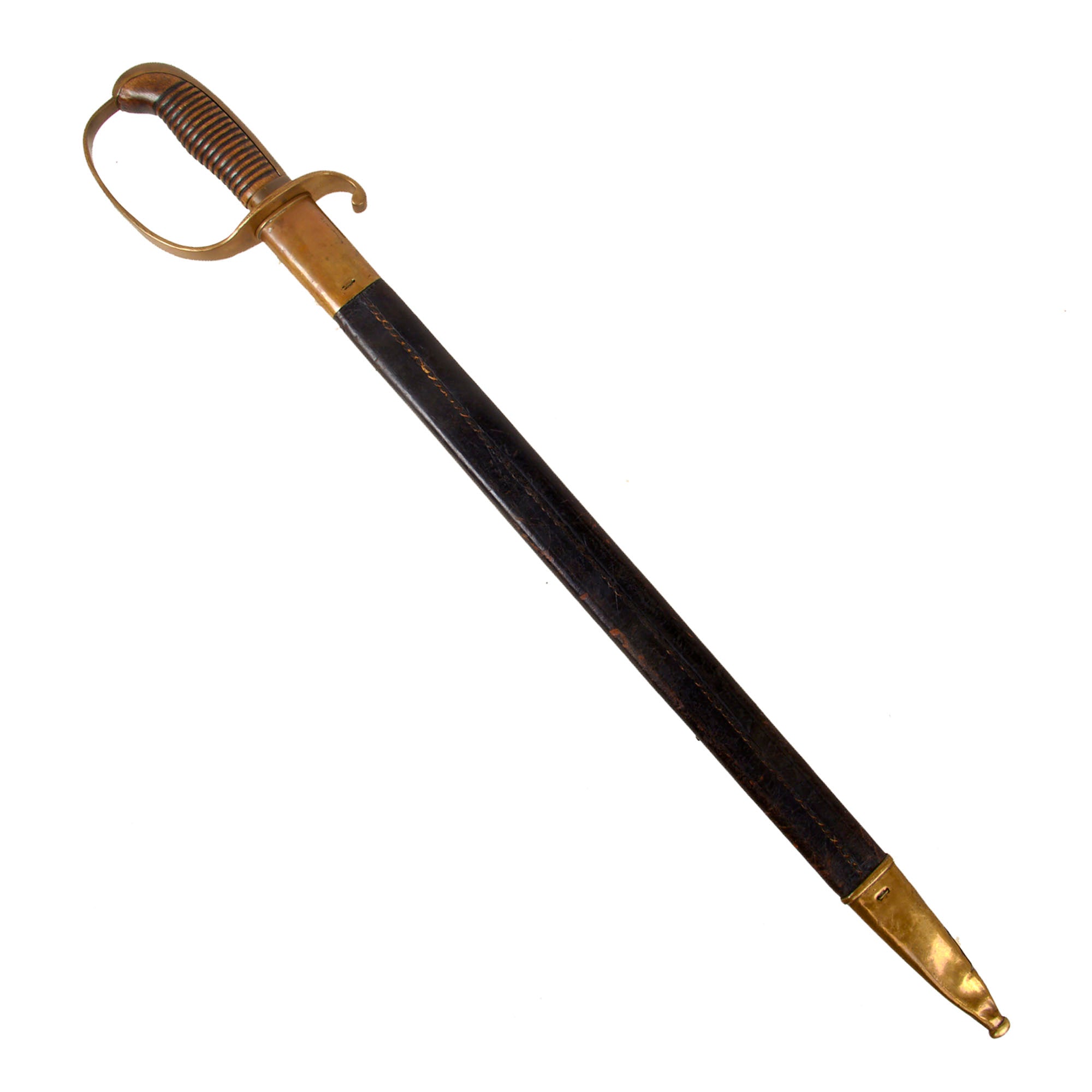 The original brass-mounted leather scabbard is in great shape without much deterioration of the leather. The stitching is still well-retained.