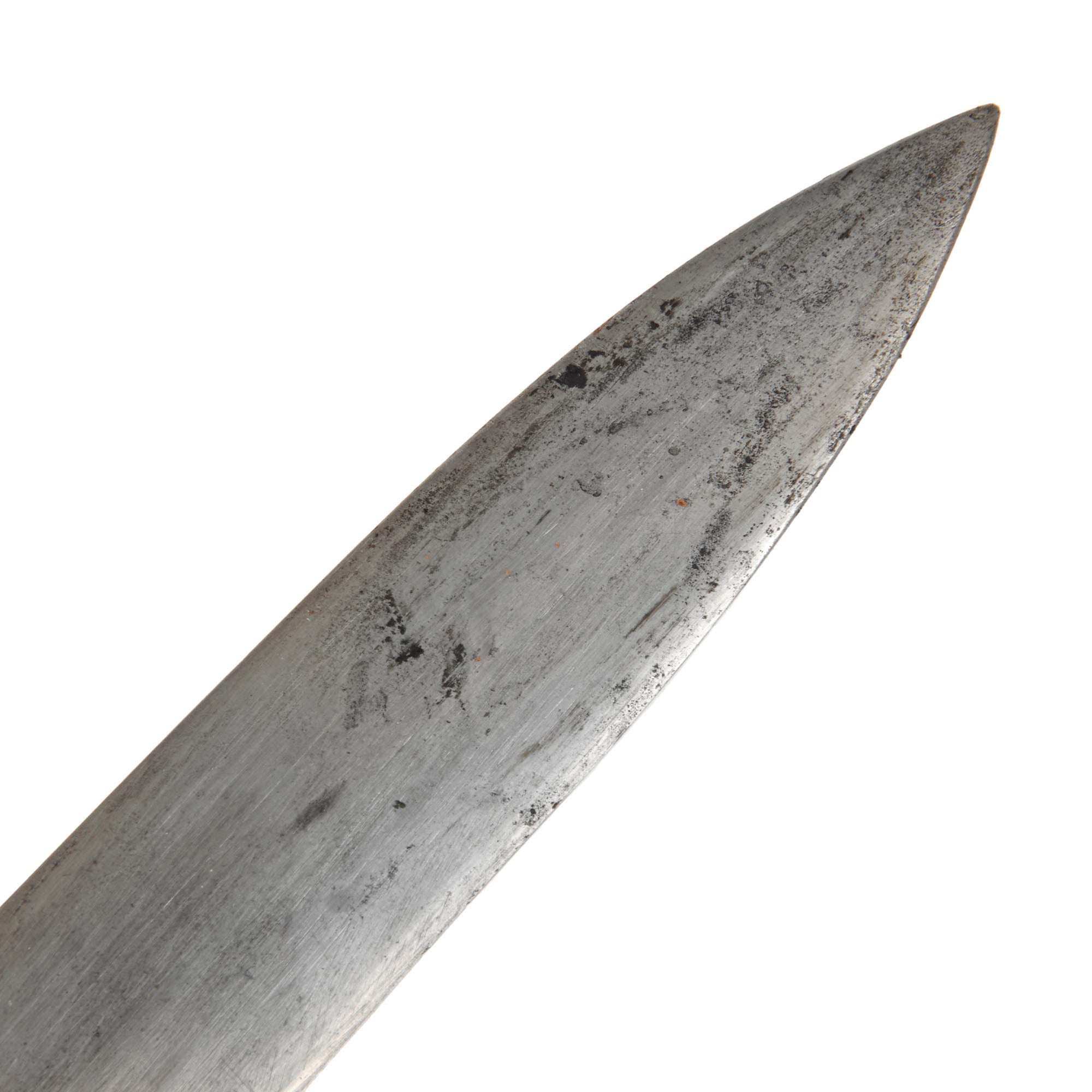 The reverse ricasso is etched with the trademark "Knights-Helmet" (Ritter-helm) logo of legendary maker Weyersberg Kirschbaum & Cie of Solingen. This company is a famous manufacturer of military swords and cutlery in Solingen, Germany - a city famous since the middle ages for its metal-working and craftsmanship in sword making. Per J. Anthony Carter's fine work GERMAN SWORD AND KNIFE MAKERS, the traditional manufacturing of swords at WKC dates back to the year 1774 when the Weyersberg first registered the ''Kings head'' as their trademark. Later in 1883 the company merged with the Kirschbaums and the company WKC was formed as it exists today.