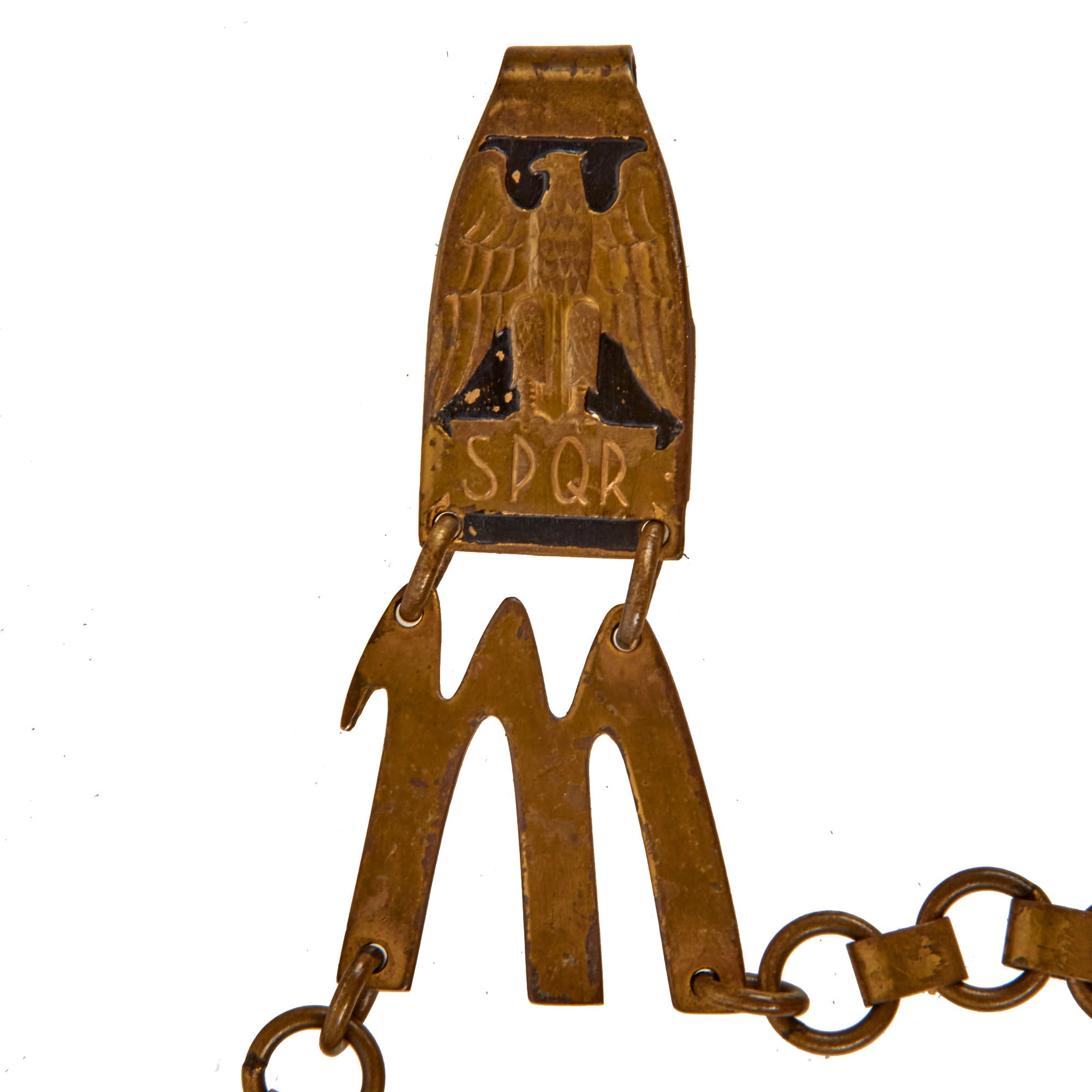 Original Item: Only One Available. The Milizia Volontaria per la Sicurezza NSDAPonale (MVSN, "Voluntary Militia for National Security"), commonly called the Blackshirts, was originally the paramilitary wing of the National Fascist Party and, after 1923, an all-volunteer militia of the Kingdom of Italy under Fascist rule. Its members were distinguished by their black uniforms (modeled on those of the Arditi, Italy's elite troops of World War I) and their loyalty to Benito Mussolini, the Duce (leader) of Fascism, to whom they swore an oath. The founders of the paramilitary groups were nationalist intellectuals, former army officers and young landowners opposing peasants' and country laborers' unions. Their methods became harsher as Mussolini's power grew, and they used violence and intimidation against Mussolini's opponents. In 1943, following the fall of the Fascist regime, the MVSN was integrated into the Royal Italian Army and disbanded.