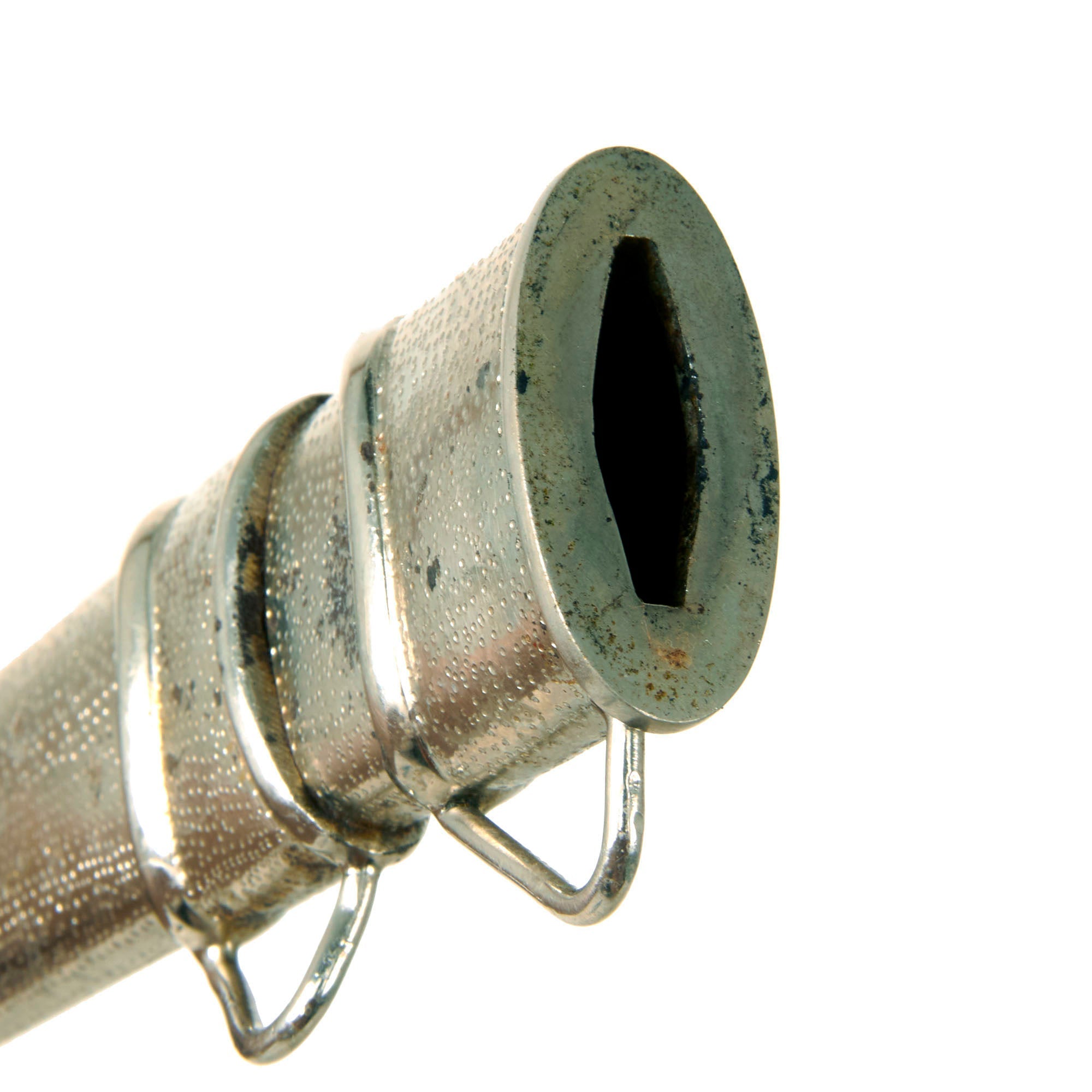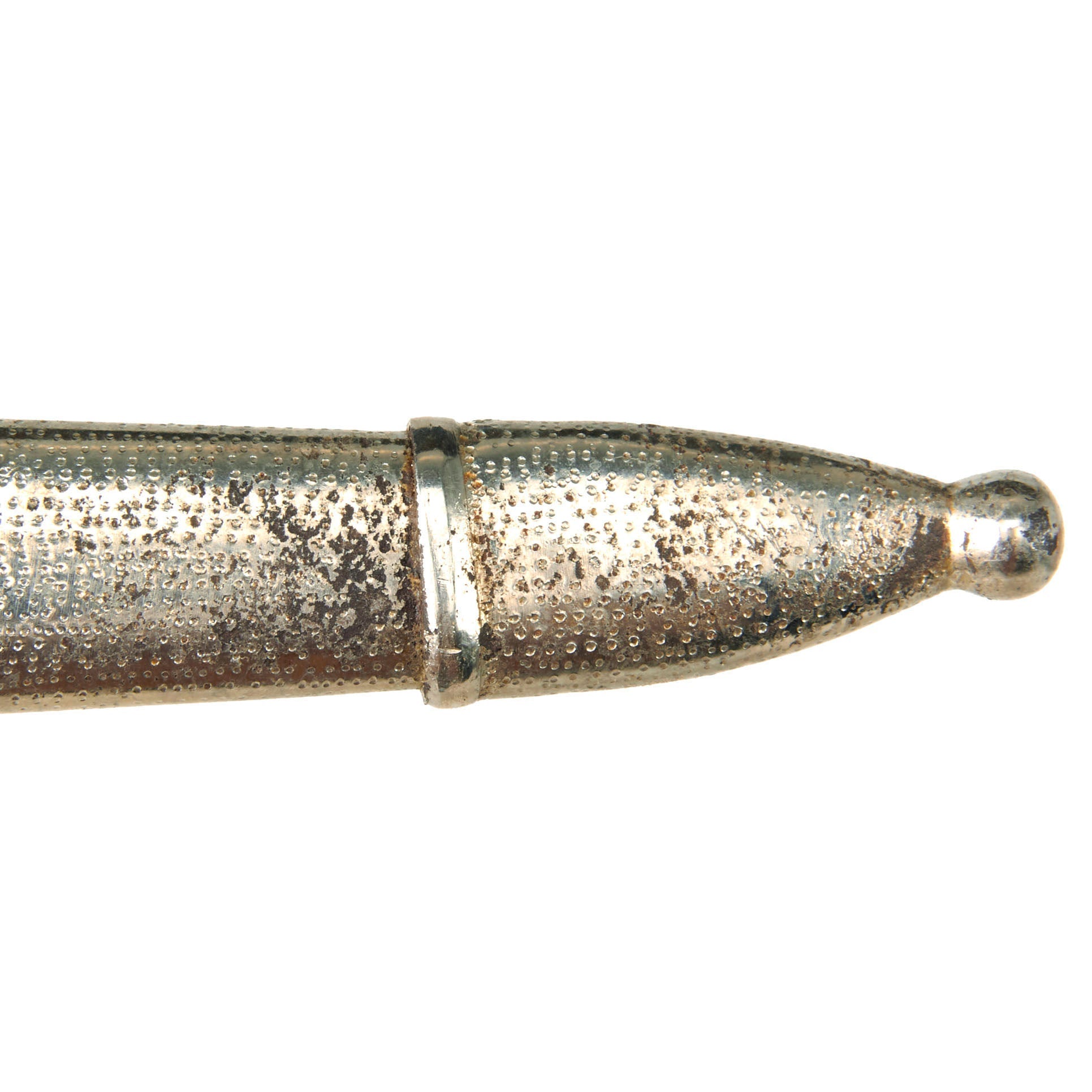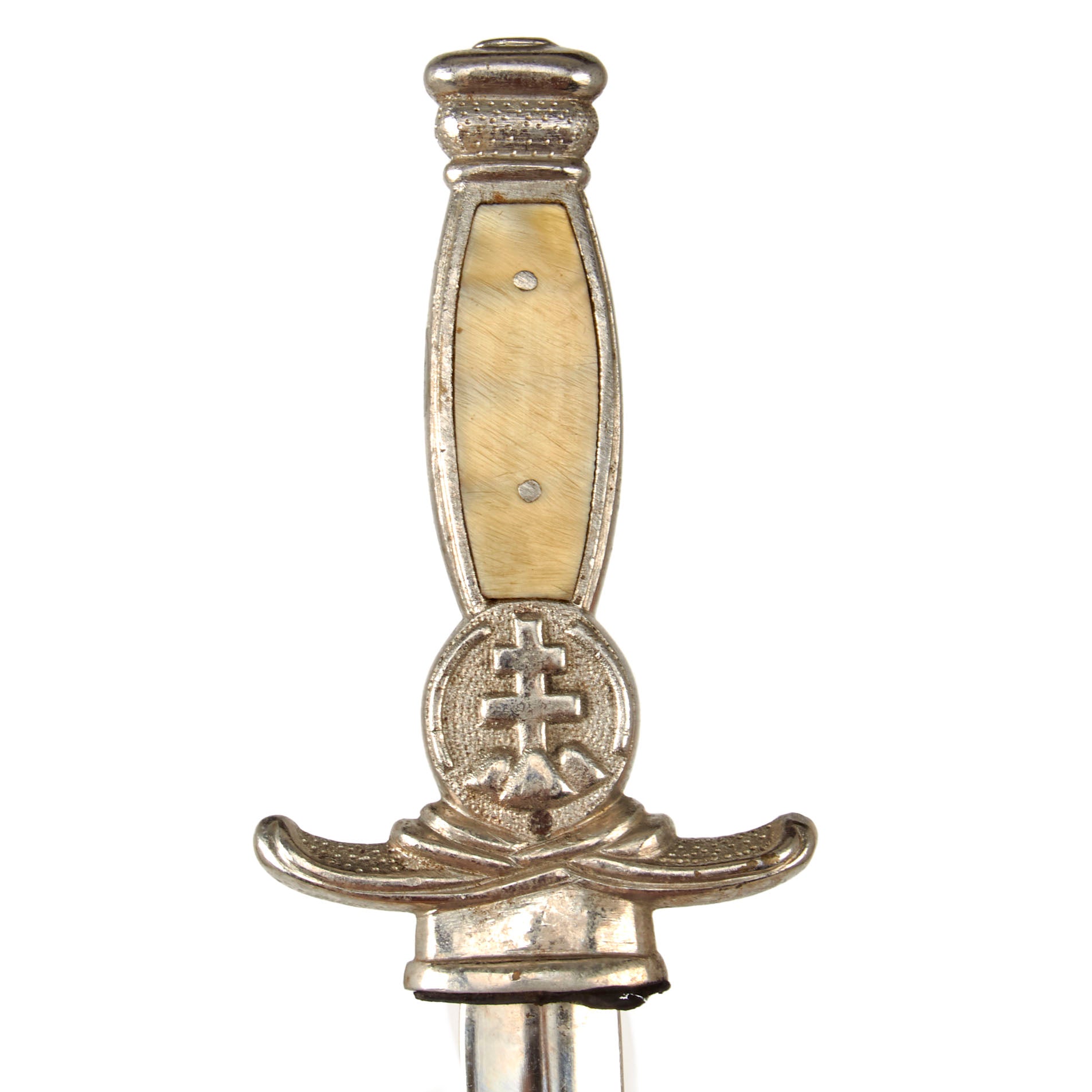 Original Item: Only One Available. This is a rare Second World War Slovak Army Officer Dagger. The wonderful grip is constructed of heavy, silver plated fittings, non magnetic, with simulated mother of pearl fittings in the center. The blade is made of plated steel, unmarked, in excellent bright condition. The leather blade buffer is still retained, rare to see! The scabbard is constructed of heavy silver plated metal, magnetic, straight and also in near mint condition. Overall offered in excellent condition.
