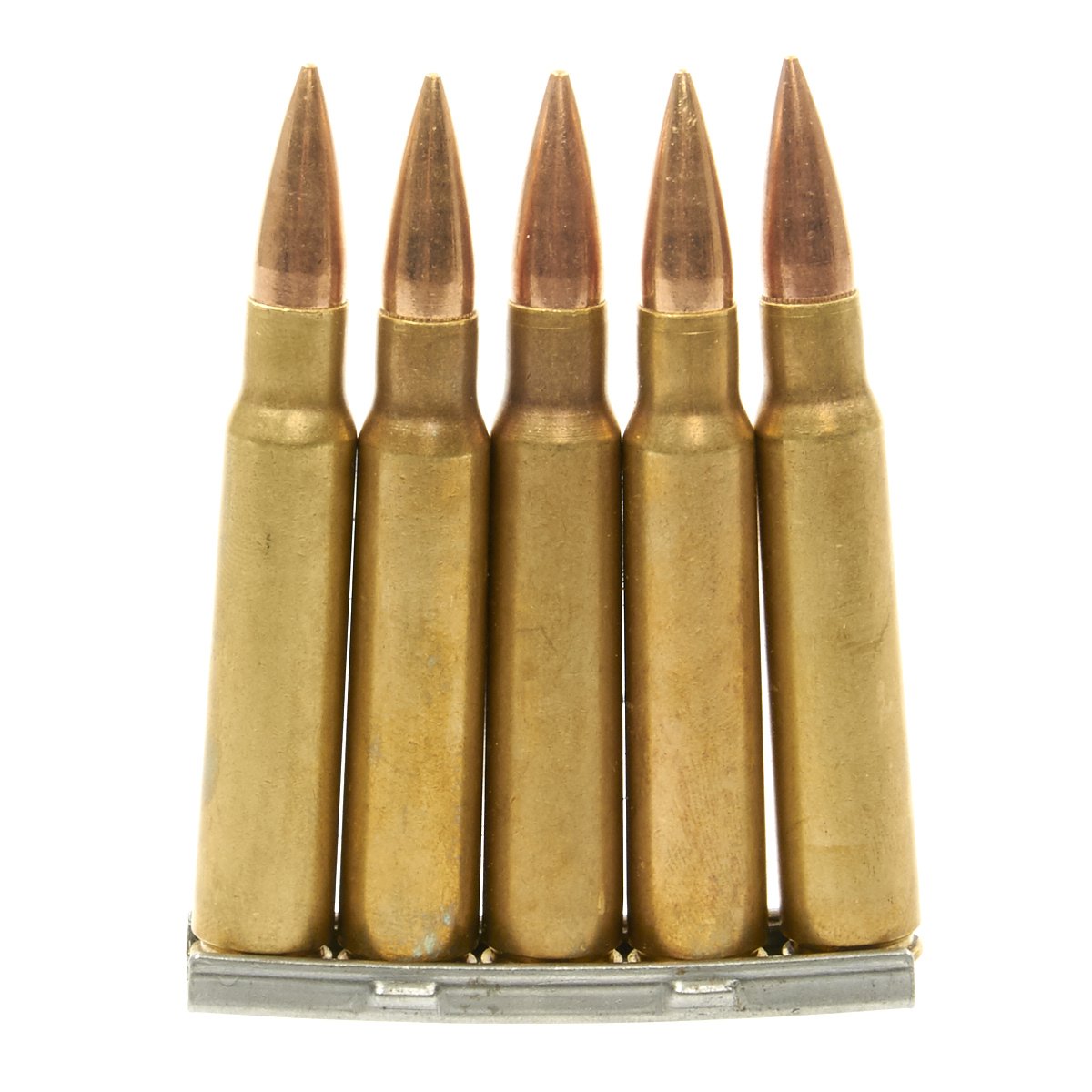 Intended for display purposes, these rounds of fired 8mm Mauser rifle ammunition have spent primers and no propellant, and are assembled with gilding-metal (copper-like) colored bullets for a WWII look. They were made for display purposes and were not dimensioned for functioning through the action. Ideal for safe display with your k98k Mauser rifle collection.