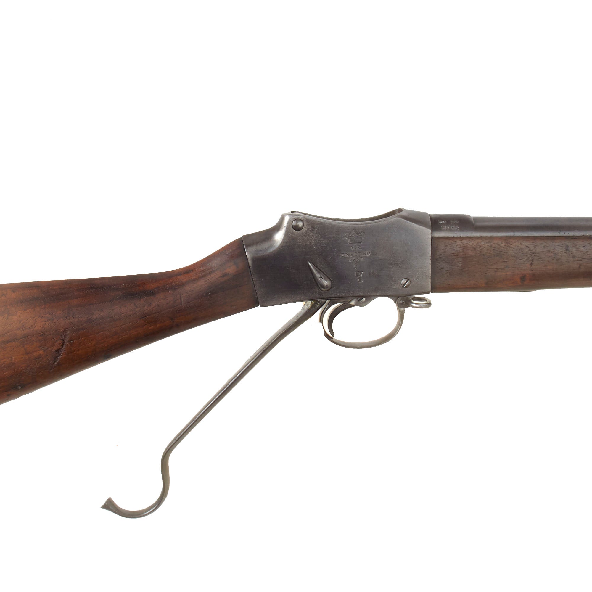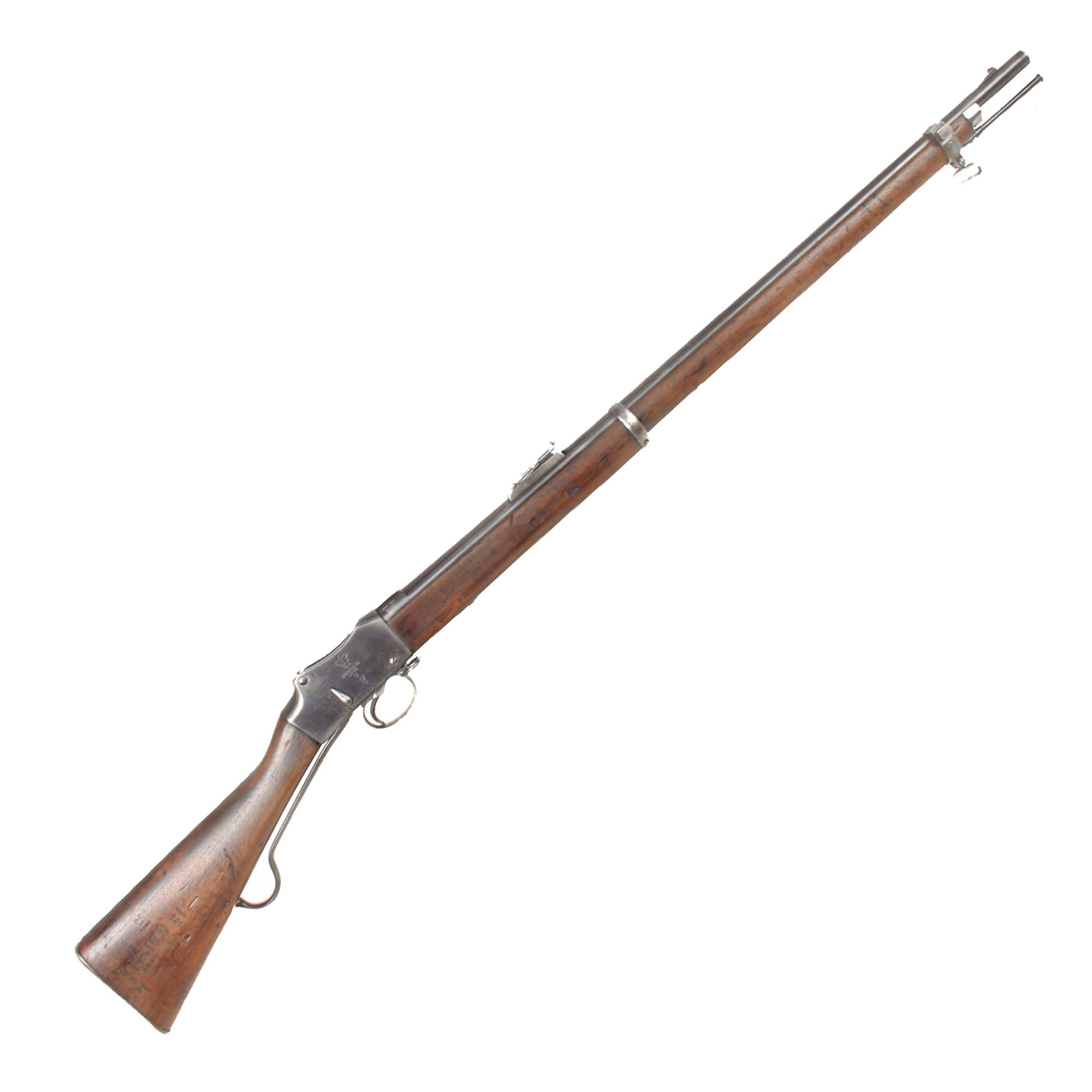 Original Item: Part of our exclusive discovery of antique firearms in the royal palace of Nepal. The great success of the P-1871 Martini Henry Short Lever Rifle had only been marred by the occasional difficulty experienced with the ejection of the spent cartridge from powder residue fouling the chamber.