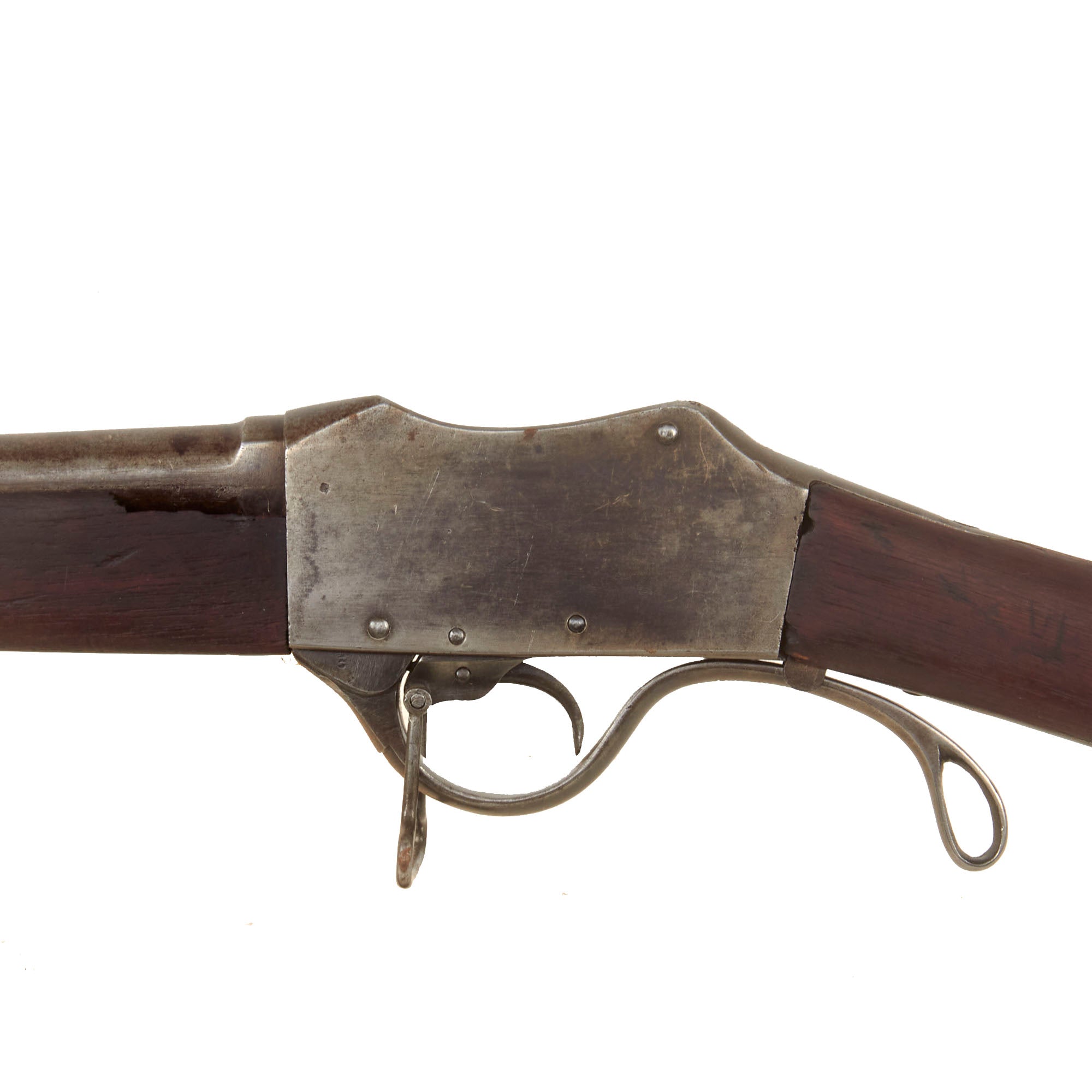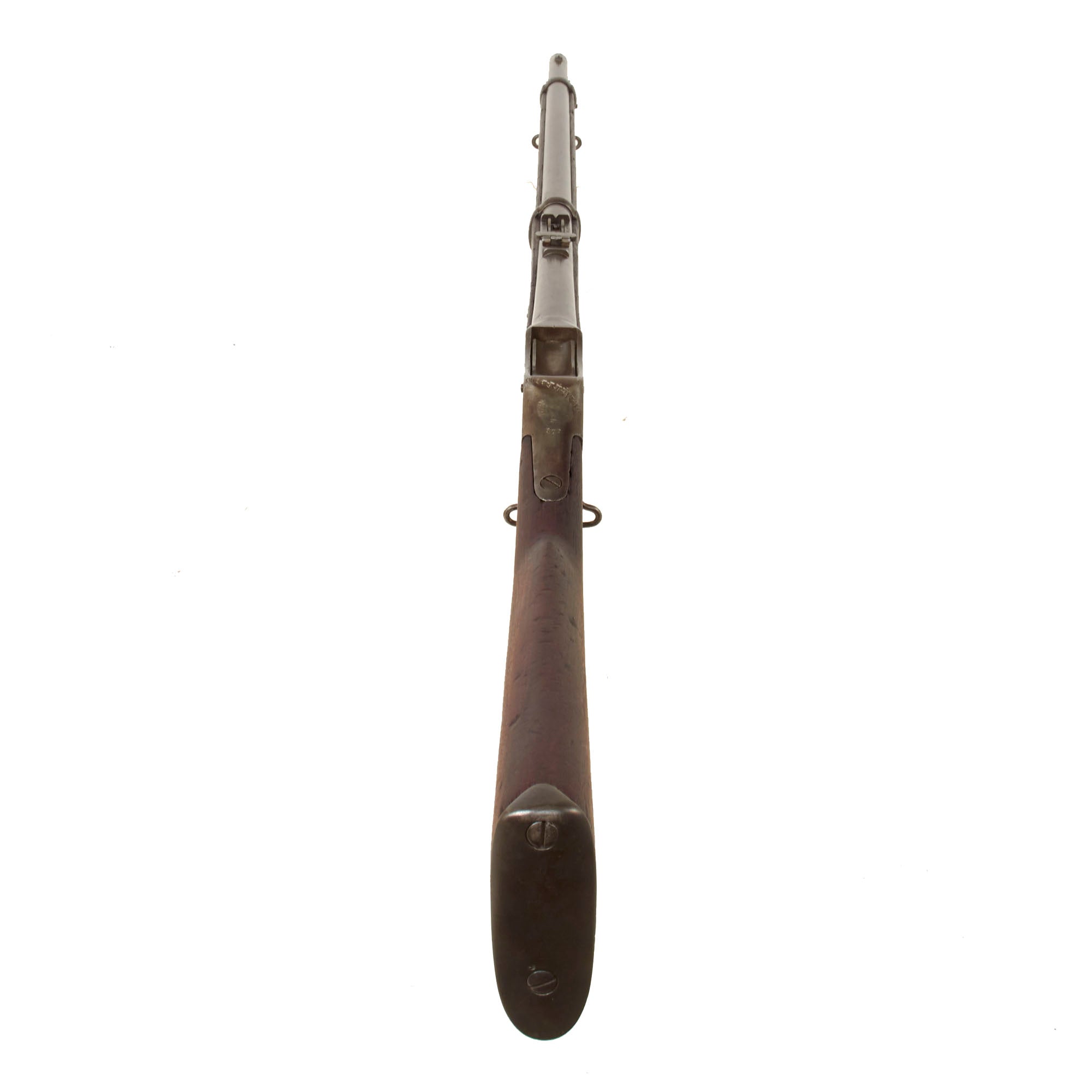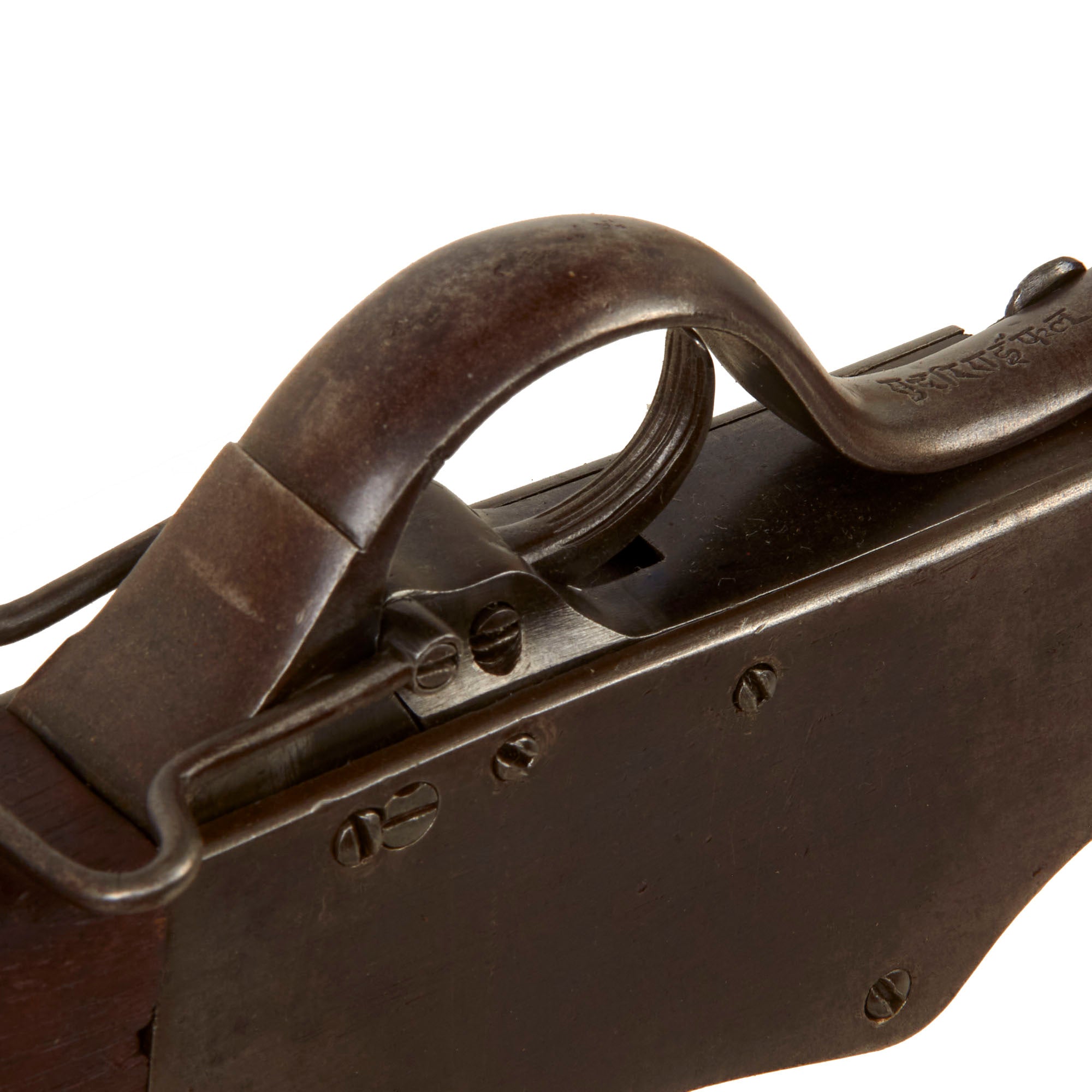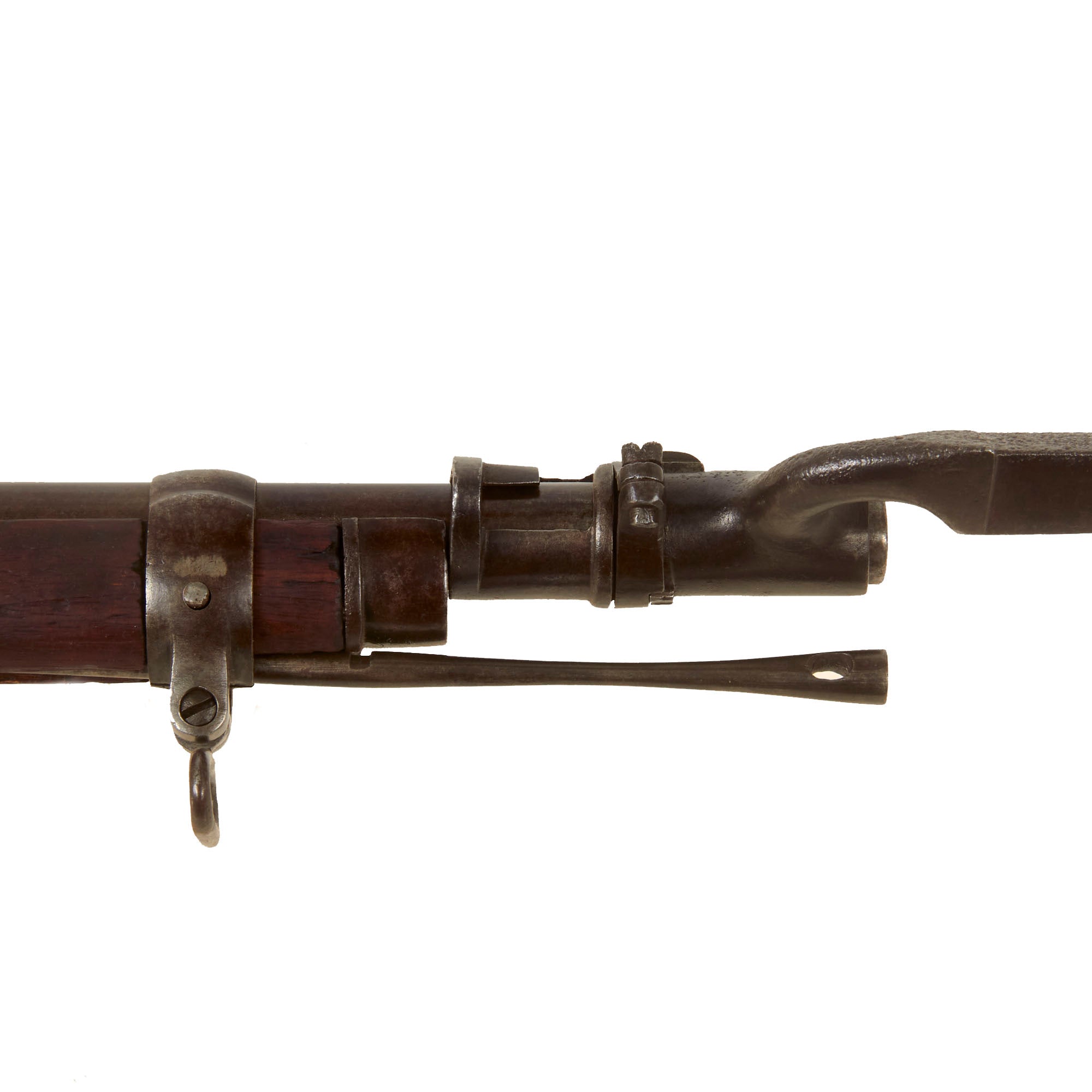 Production however caused massive logistic problems and by 1894 the Ghurkas were dangerously short of viable .450 cal. breechloaders to face evergrowing threats from the east. Finally the British came to the rescue with a delivery of several thousand Martini short lever rifles in late 1894 and even more long lever Martini Rifles in 1908. The over complicated Gahendra Rifle was thereafter basically shelved, the void in up-to-date arms having been met. Always considered the rarest Martini variety of all, the Gahendra Rifle has a characteristic loading lever but in other respects closely resembles the standard Martini externally. A chance to obtain an extremely rare historical antique rifle that was a close relative of one of the most successful rifle systems of all time.