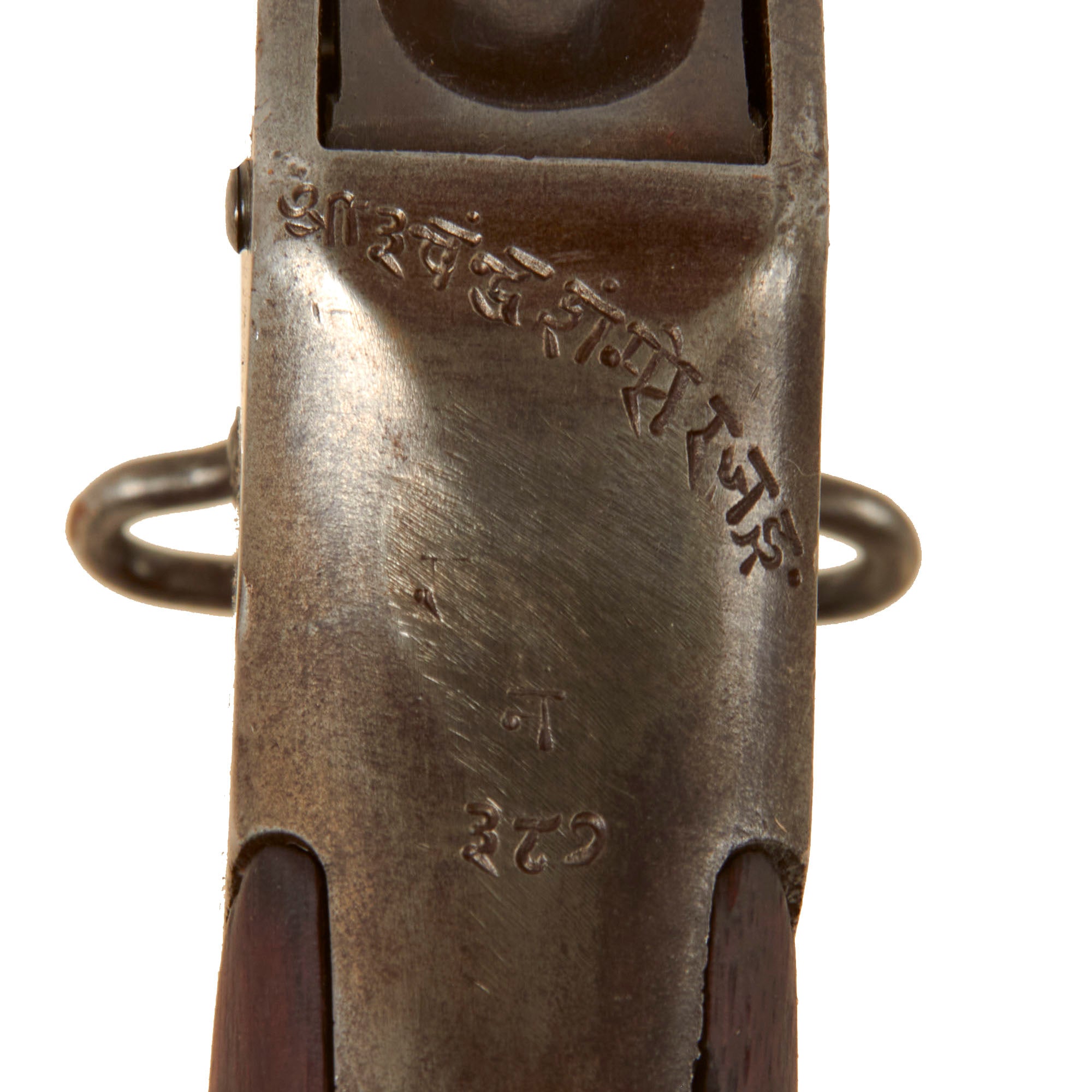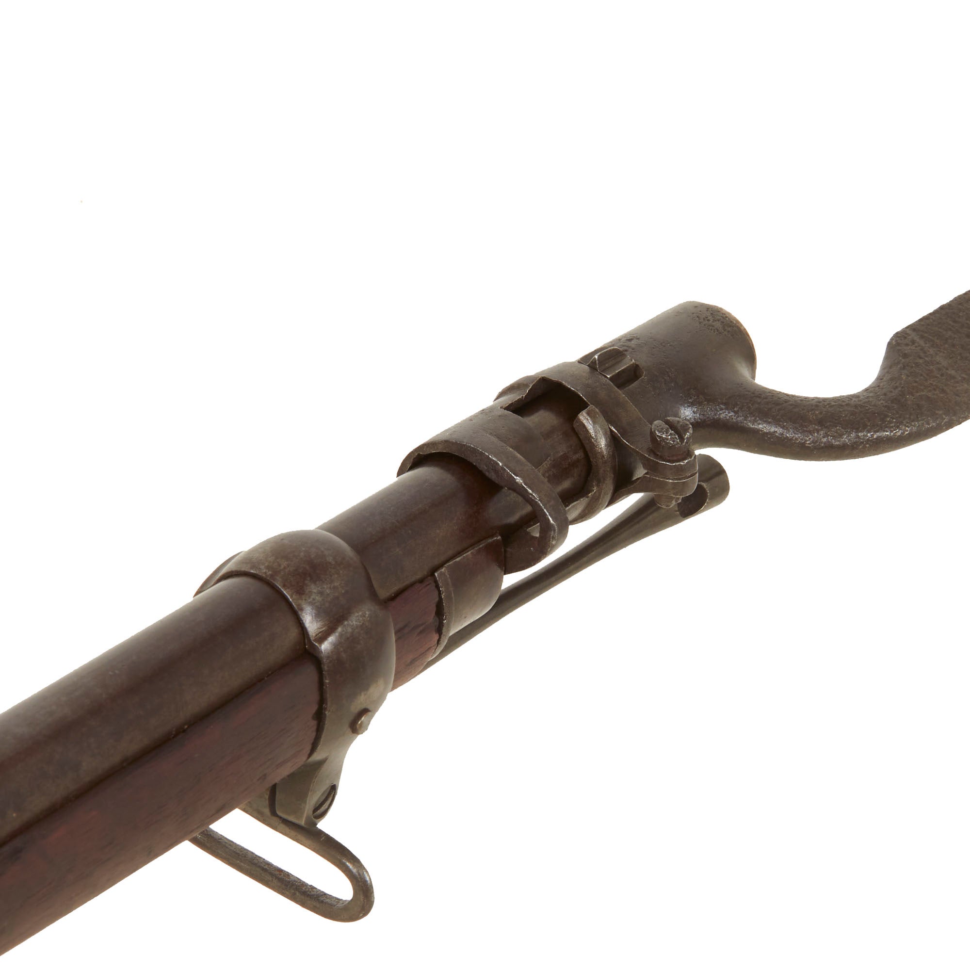 • Original Item: Only One Available. Here we have a very nice example of a First Model Gahendra Martini rifle, purchased at a recent private military auction. This is one of many acquired in 2003 from the Palace of Lagan Silekhana, which functioned as the Royal Armory of Nepal. This example was cleaned and restored, however we do not know if this was a an untouched example, or one we restored years ago. It comes complete with the correct socket bayonet.