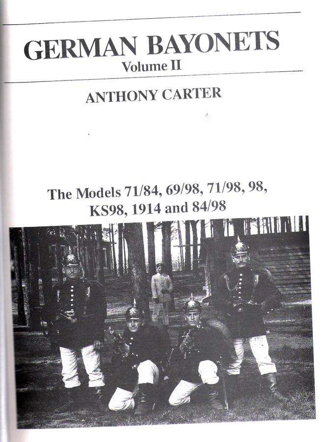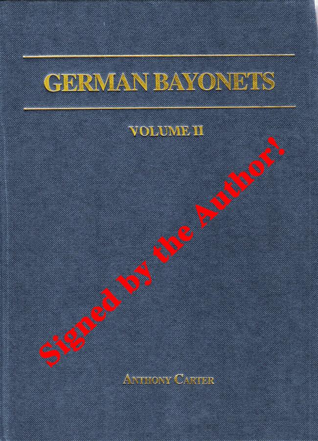 Tharston Press, 1991, 2001, Hard covers, blue cloth binding, 239 pages, 10 x 7_ in. size, many illustrations. Seitengewehr 71/84, Seitengewehr 84/98, Seitengewehr 98, Seitengewehr 1914, Foreign & post-war, &c. Unit markings, specification drawings, export variations & markings.