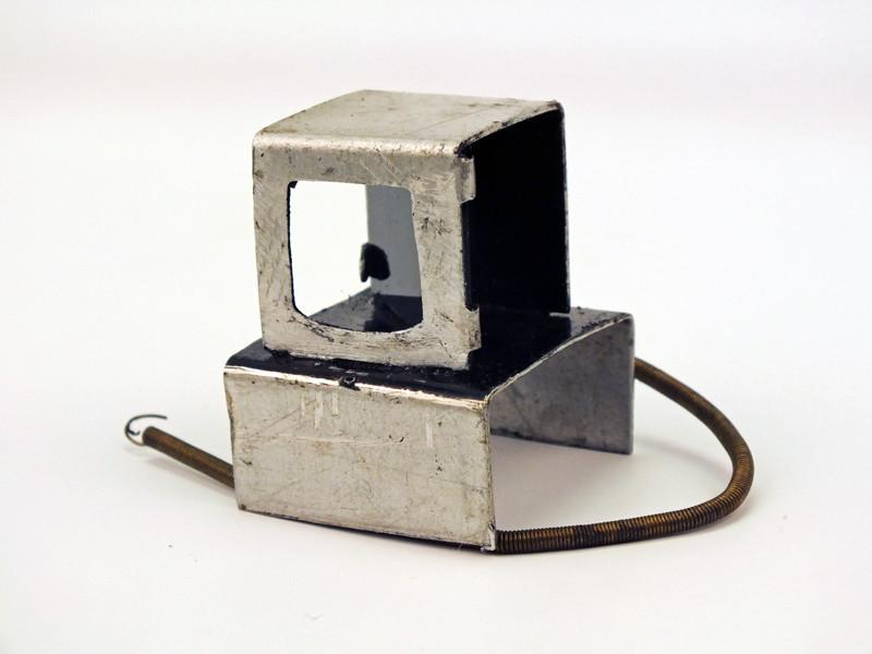 A couple of years ago we found a very few Martini-Henry Auxiliary Sights, which were the first of the marksmanship coaching aids for the Martini. They were complicated, beautiful, and required a lot of machine work. They were replaced by the Aim Corrector Mark I in 1891. This device used a gray-tinted piece of glass positioned at a 45-degree angle to the line of the bore. The trainee could see the sights through the glass, and a coach, positioned at a right angle to the rifle, could see the same sight picture reflected to him. The Mark I Aim Corrector was much less expensive than the Auxiliary Sight set, was easier to use, and produced better results.