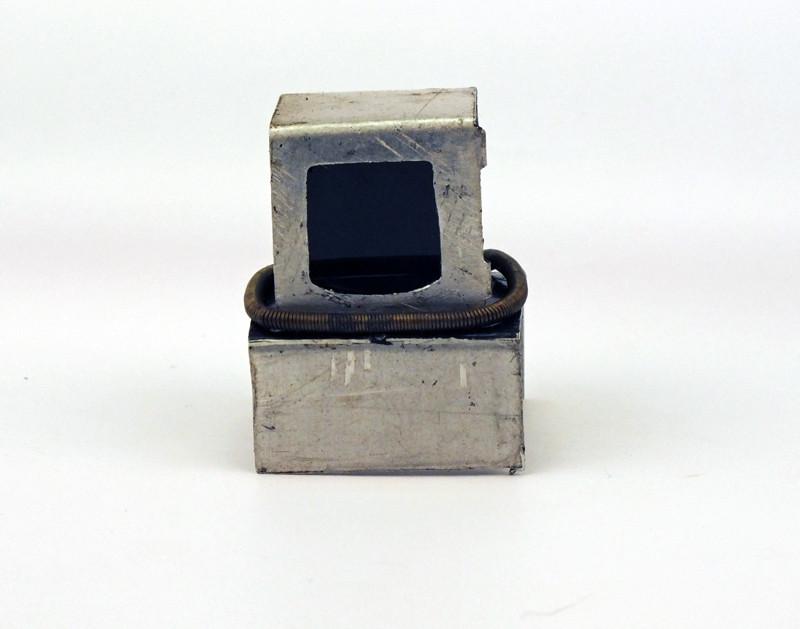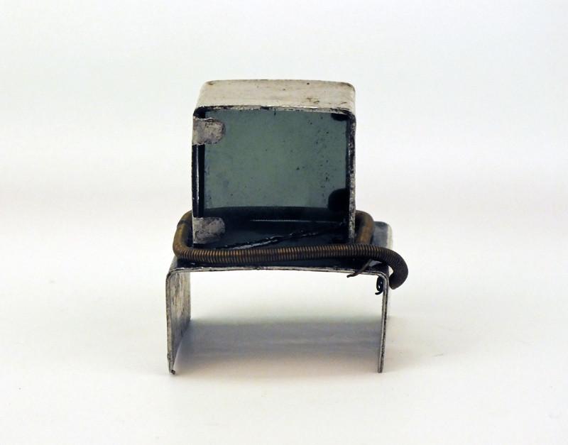 In 1912, the Aim Corrector Mark II was introduced. It uses the same tinted or coated glass as the Mark I, but is brilliantly simple in construction. The glass is held in position by a light aluminum or galvanized steel frame that fits over the receiver of the Martini-Henry. The interior of the lens housing is painted black to eliminate internal reflections. It is held in place by a small brass coil spring that encircles the receiver. The ones we found are somewhat greasy, so they require a little cleaning. We have only a small quantity of these.