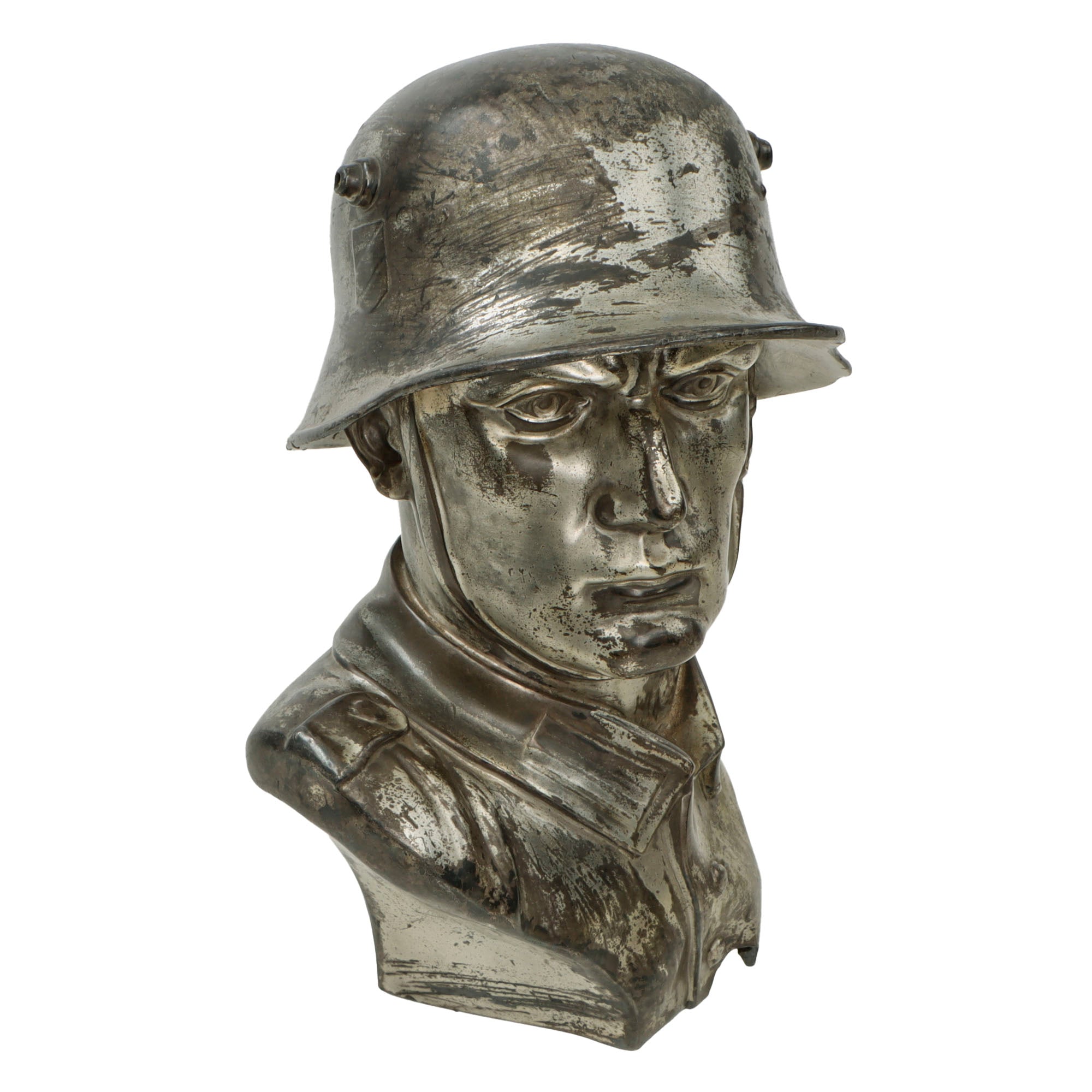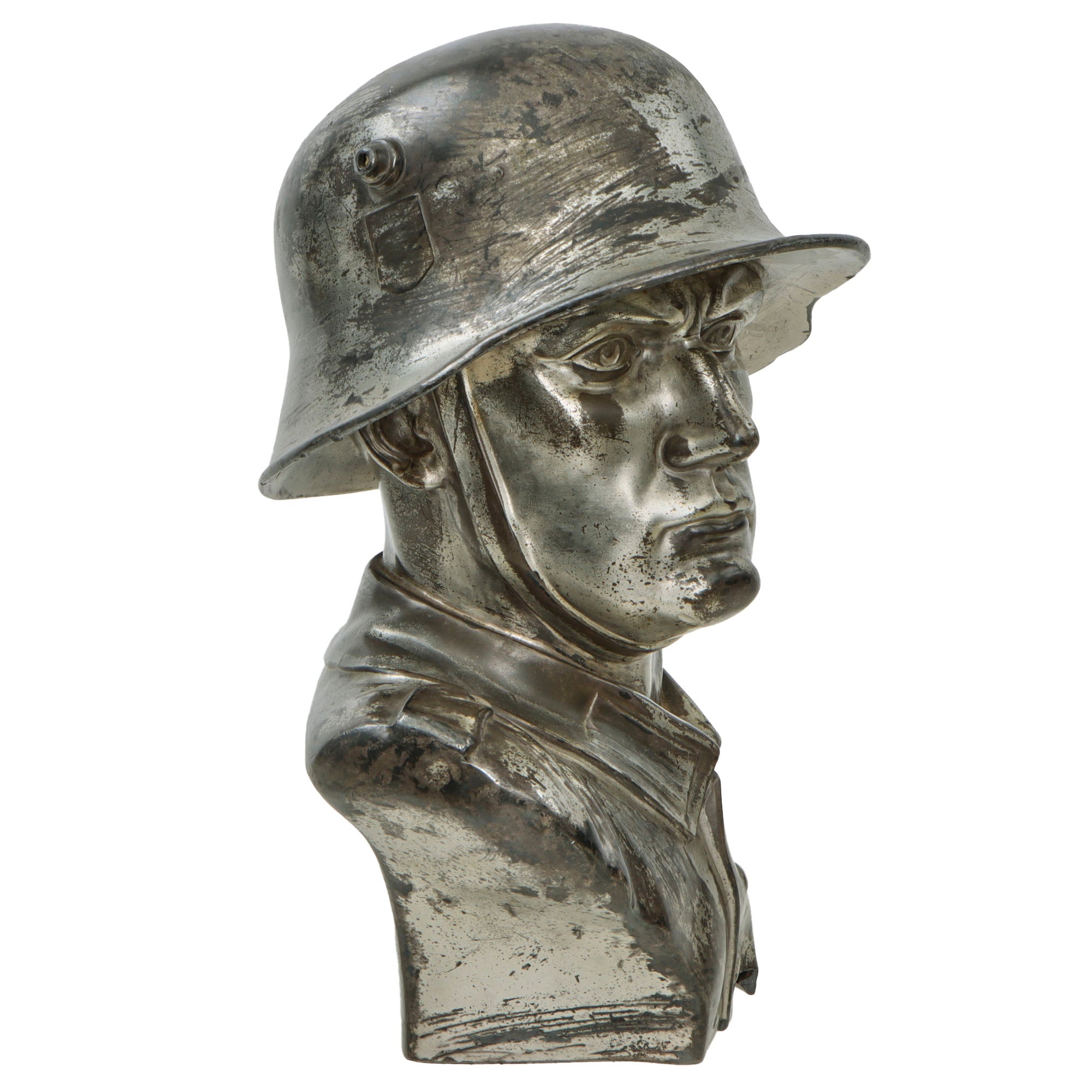 Original German WWII Early Heer Army Soldier Plated Metal Bust Wearing Sanitized Transitional M16 Helmet