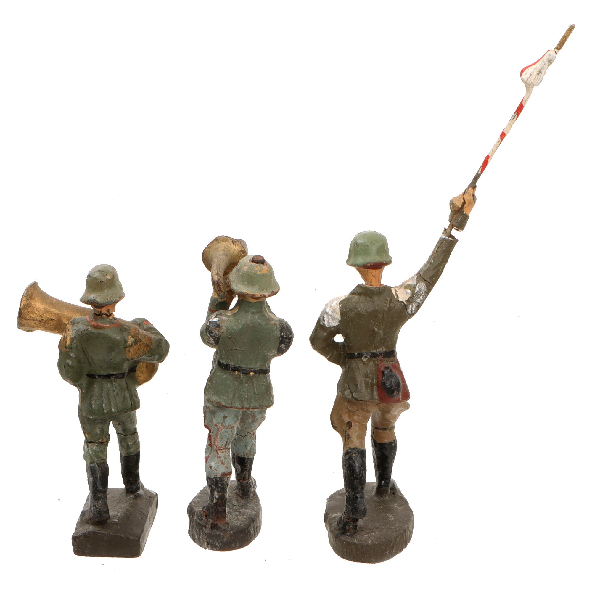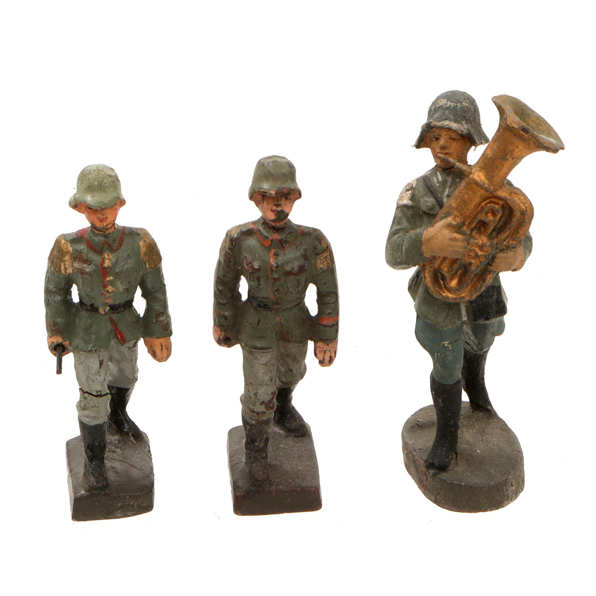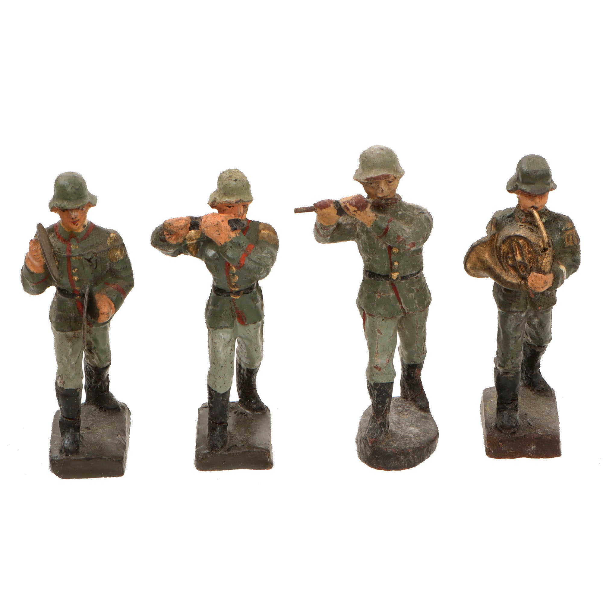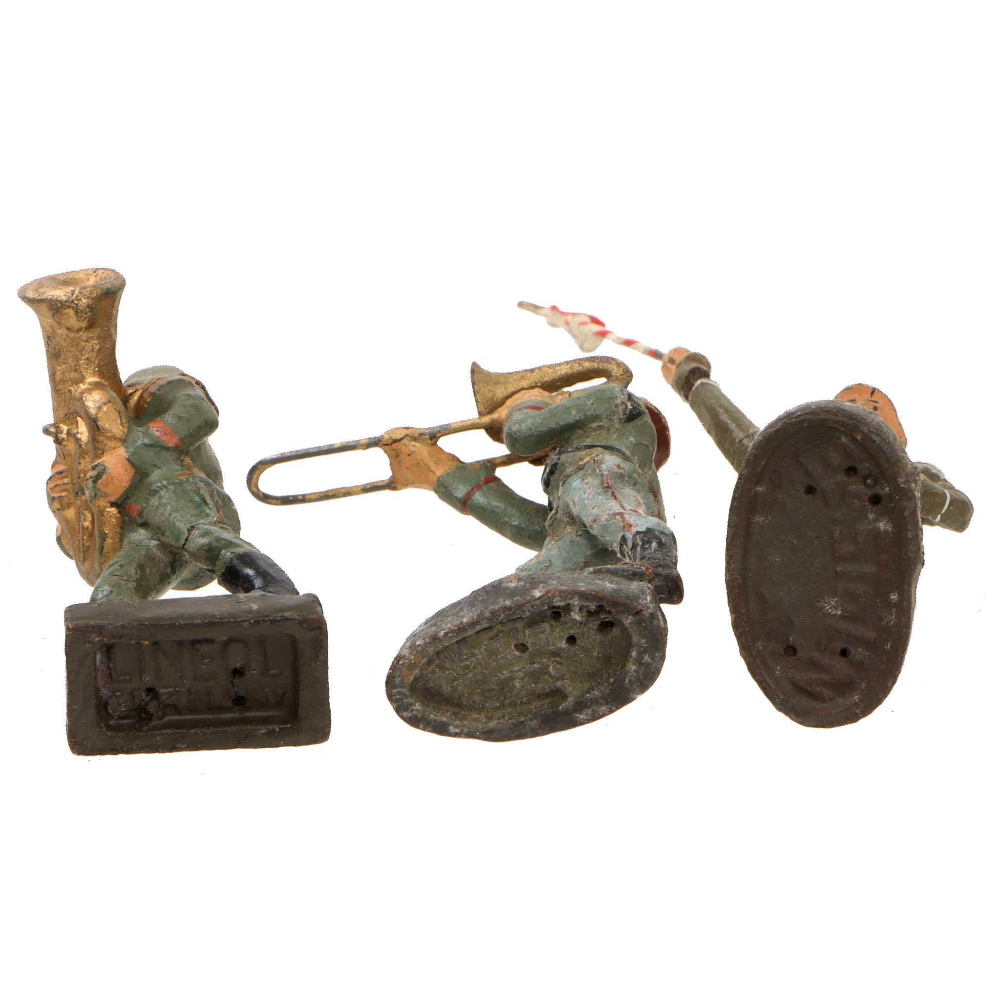 This is a great set of thirteen Lineol & Elastolin marching band toys from the pre-WWII period. Some are in rough shape with paint loss and breakage of certain pieces.