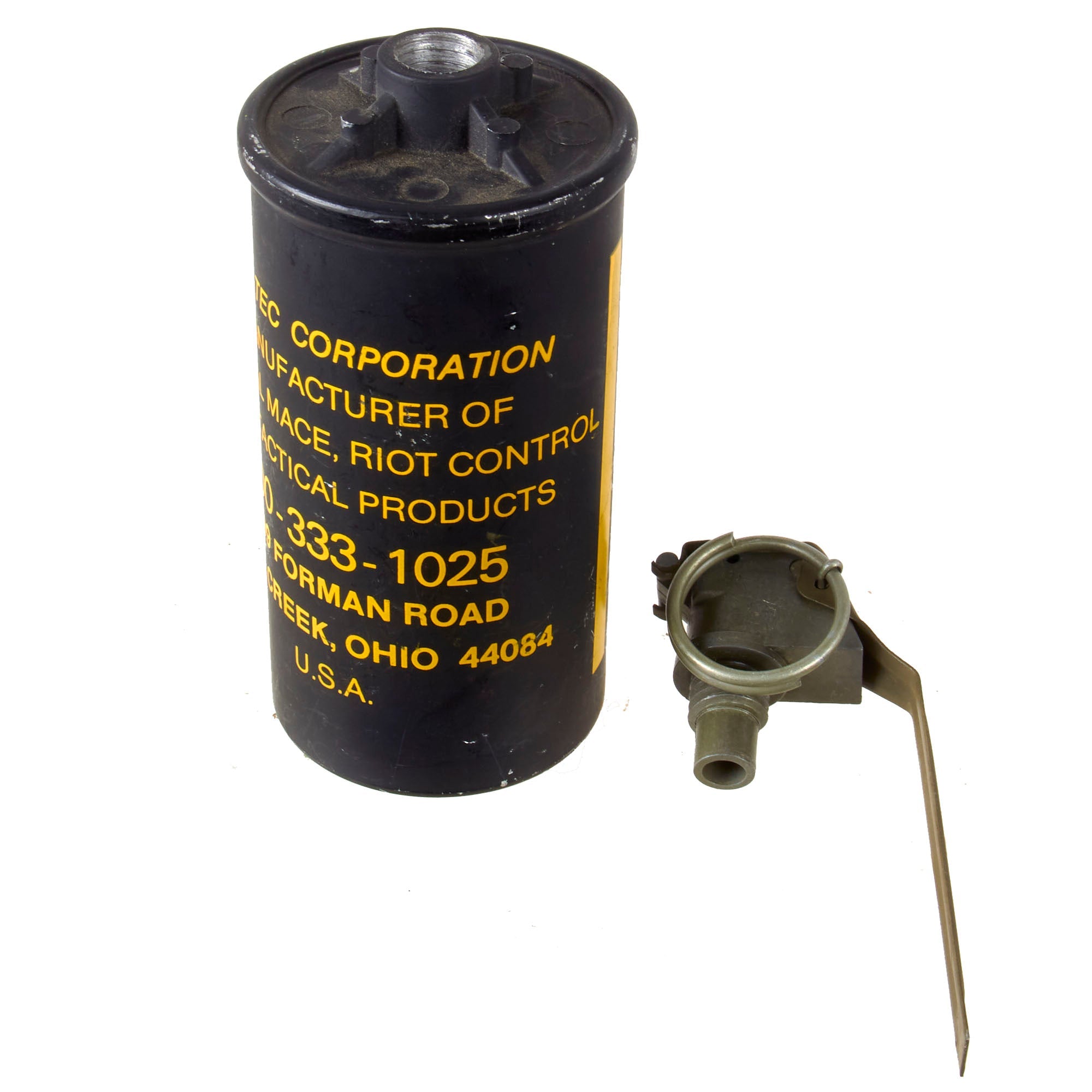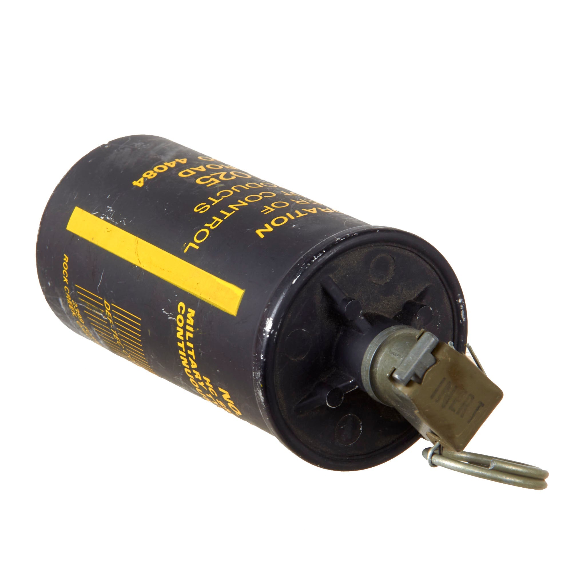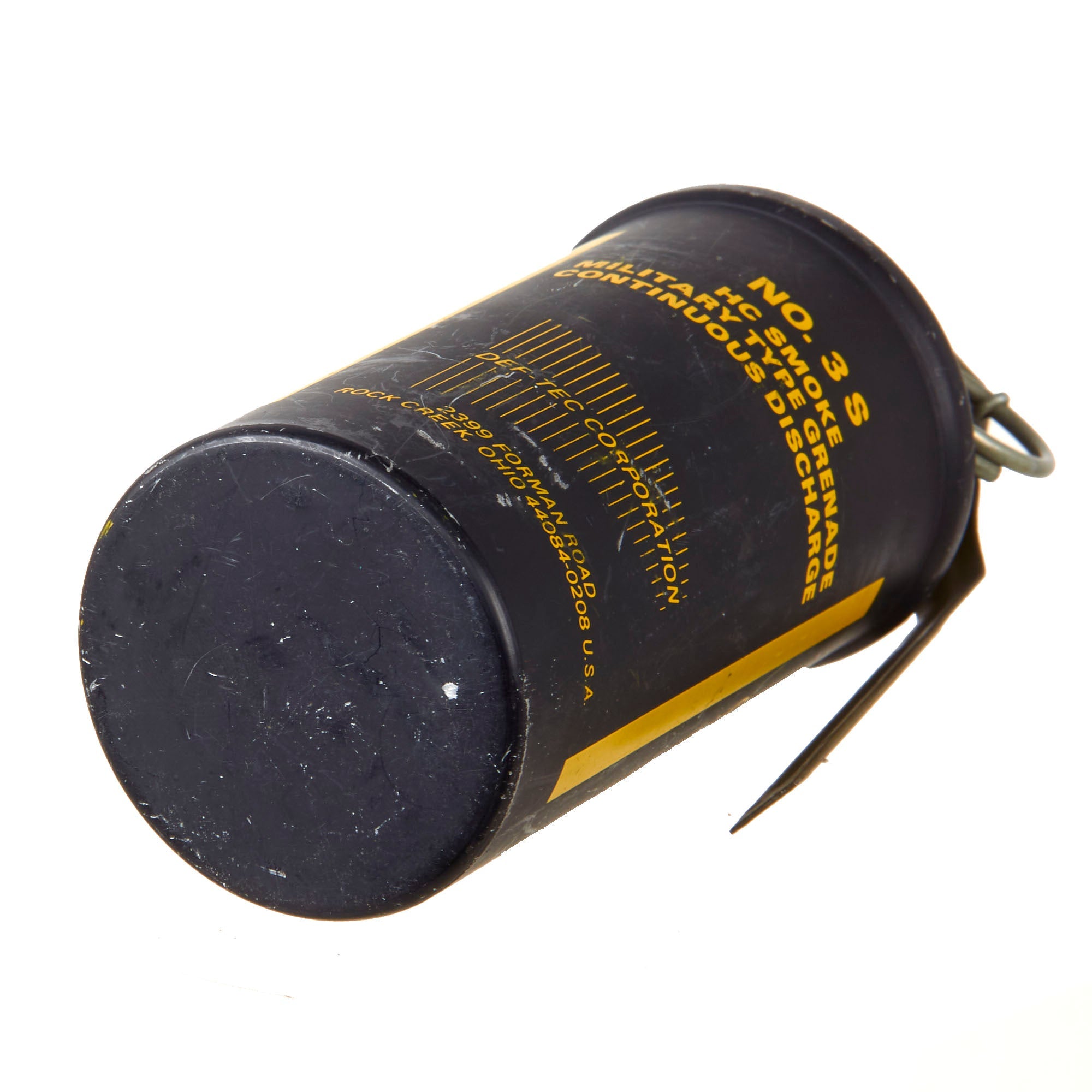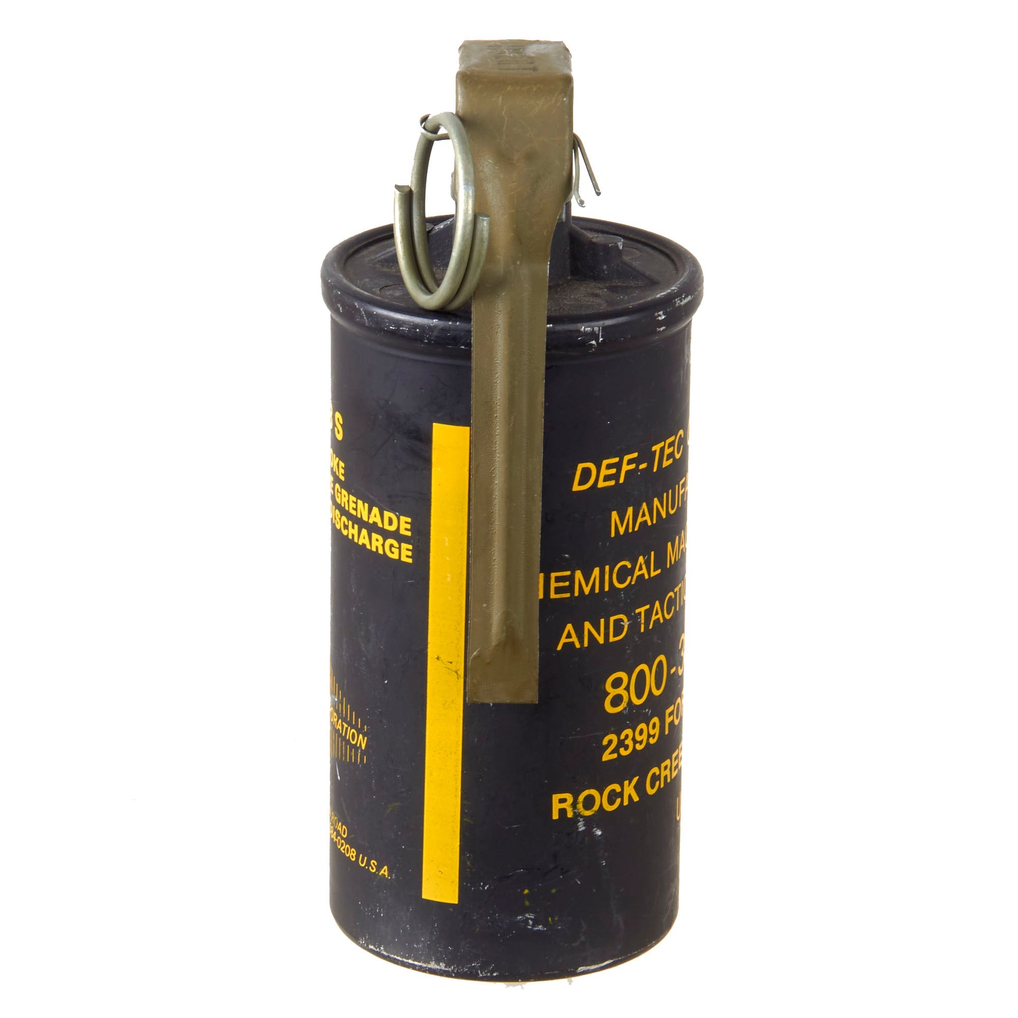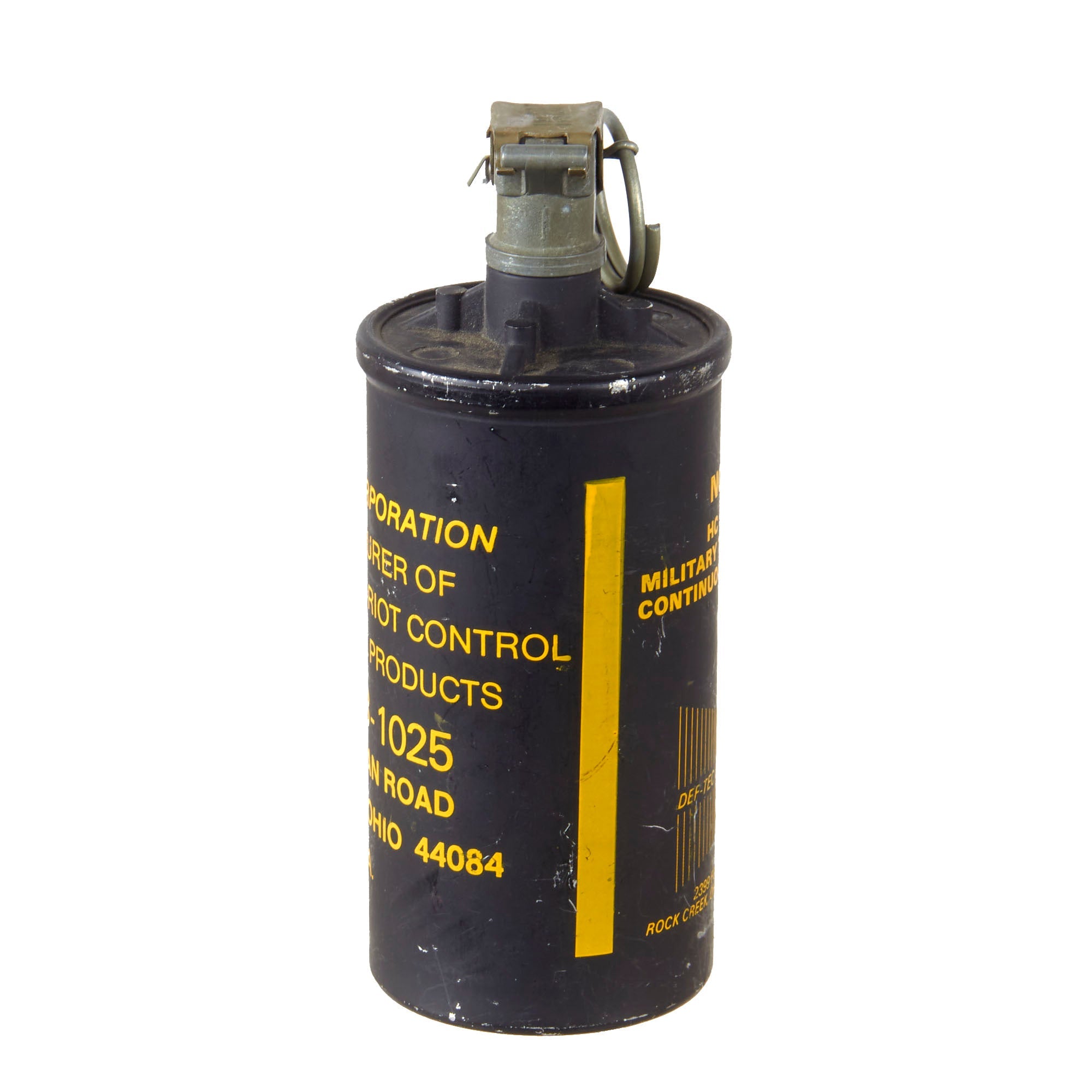 Original Item. Only One Available.This is a great Defense Technology #3 smoke grenade. It is a slow burning, high volume, continuous discharge grenade designed for outdoor use in crowd management situations. Emits grey-white smoke only for approximately 1.5 to 2 minutes. This example is a familiarization / training piece. Not Available for Export.