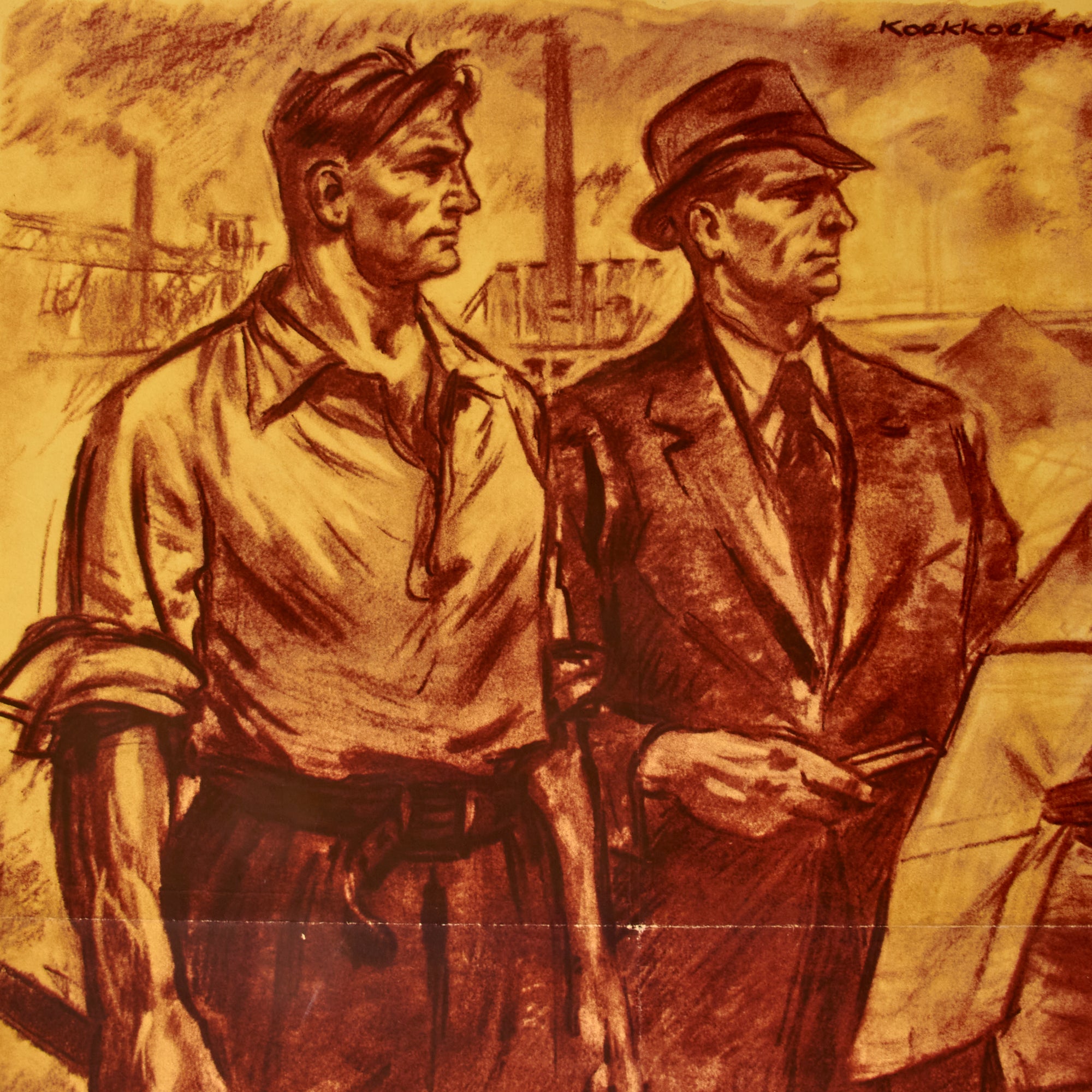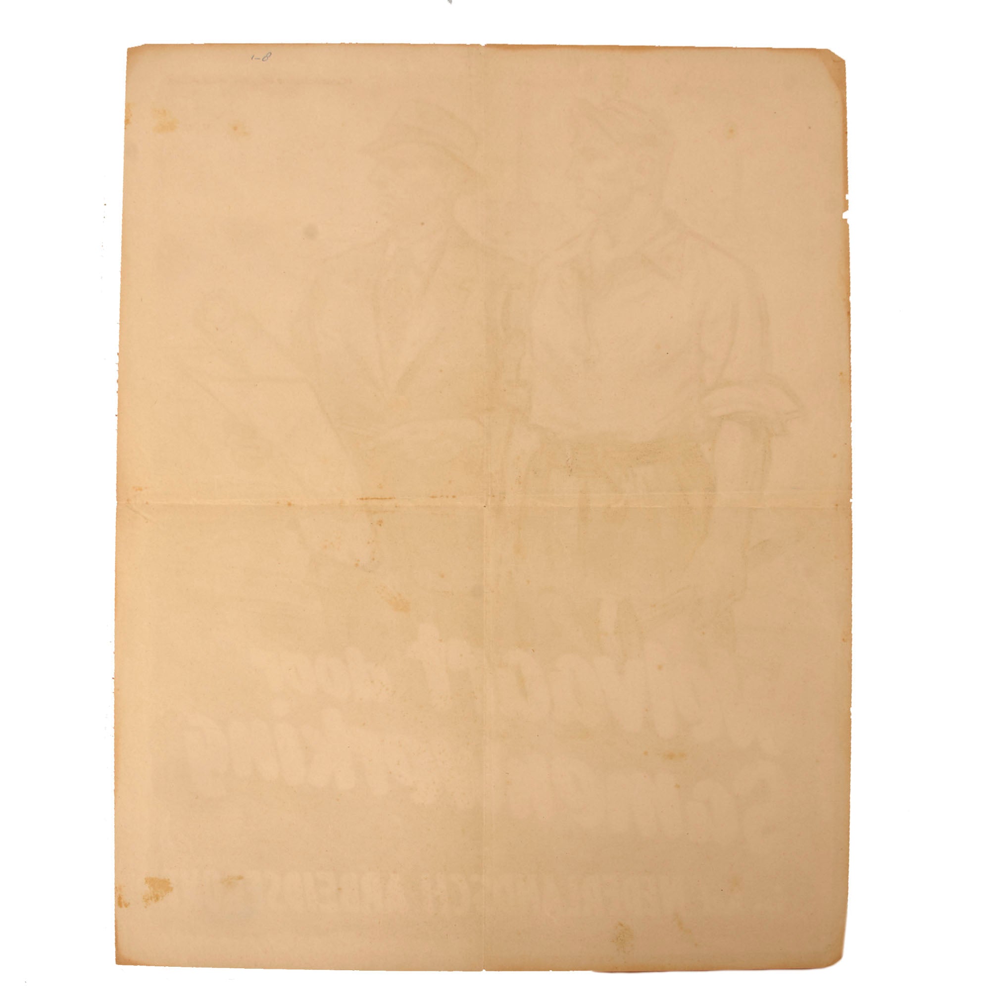 • Original Item. Only One Available. Original Item. Only One Available. This is a rare small size propaganda poster from the German-Occupied Netherlands dating around December 1942. The poster features 2 workers discussing construction and other industrial projects in front of a bright yellow and orange shaded industrial background with smoke rising from factory chimneys, the bold stylised lettering above and below. The poster is meant to convince Dutch men to work in Germany, featuring some of the benefits of doing so, such as being happy when the entire country was in a state of disarray due to the occupation.