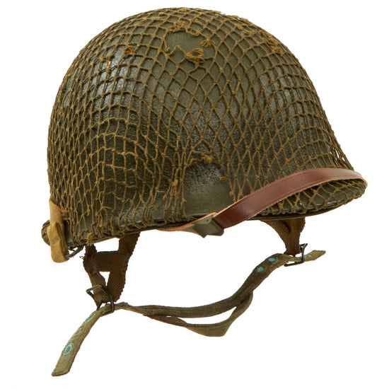 Original U.S. WWII Rear Seam Swivel Bale McCord M1 Helmet with Converted Paratrooper Seaman Paper Company Liner with Korean War Name & Serial Number