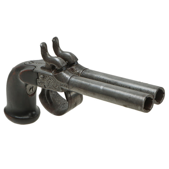Original Victorian Era Belgian Double Barreled Percussion Pistol with Engraved Frame Serial 2584 - Circa 1840