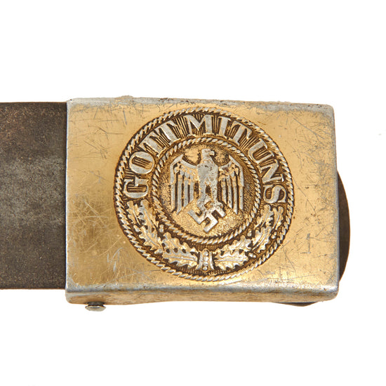 Original German WWII Kriegsmarine Marked 1938 Dated EM/NCO Leather Belt with Aluminum Belt Buckle by Richard Sieper & Söhne