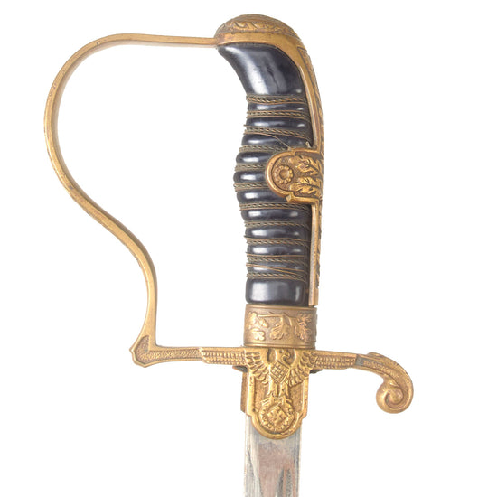 Original German WWII Army Heer Officer's Dove Head Sword with Nickel-Plated Blade and Steel Scabbard